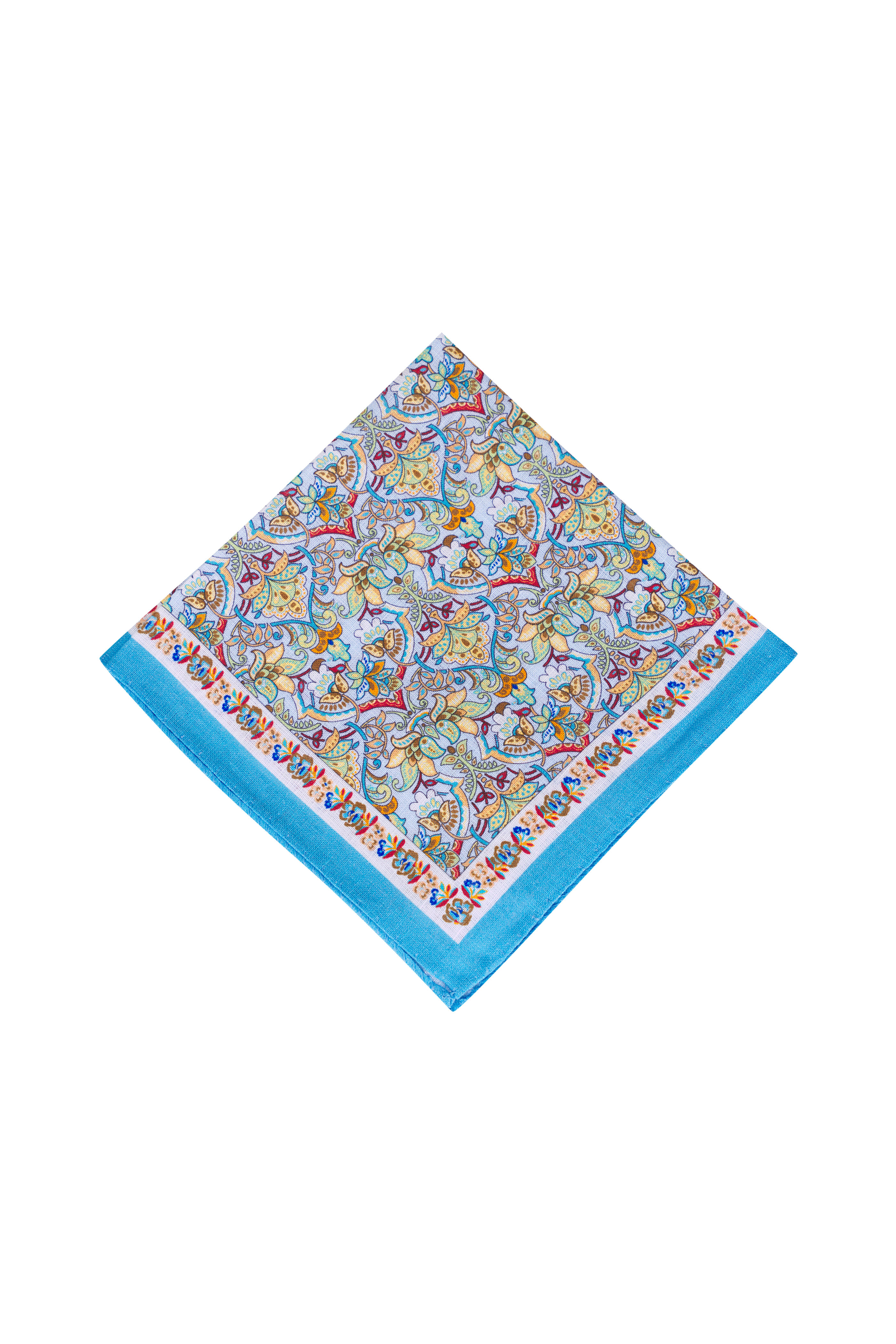 Light Blue Floral Linen Pocket Square