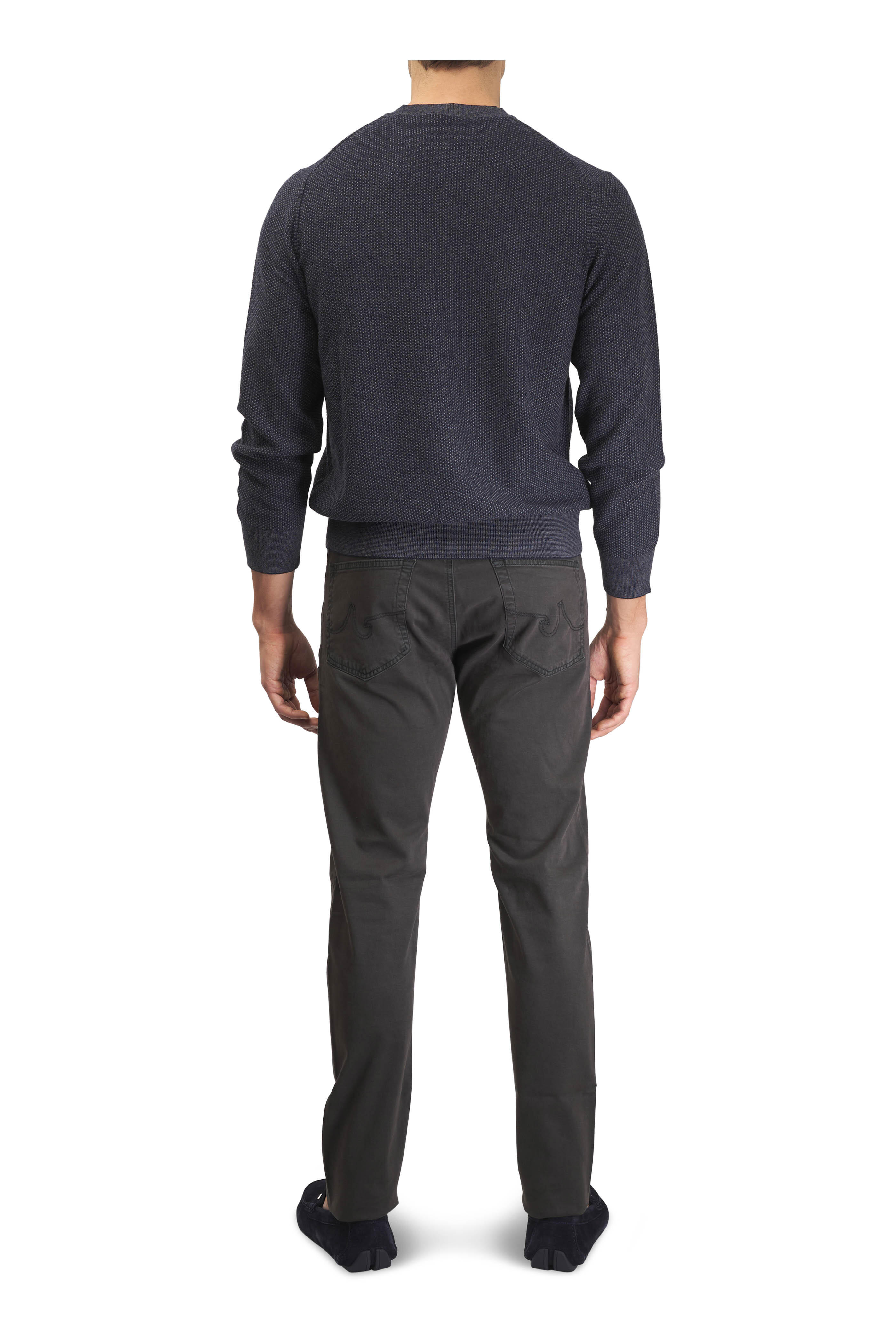 Five pocket styling. Tonal stitching. Imported. Slim, tapered fit. 34" inseam. 97% cotton, 3% elastane. Machine wash.