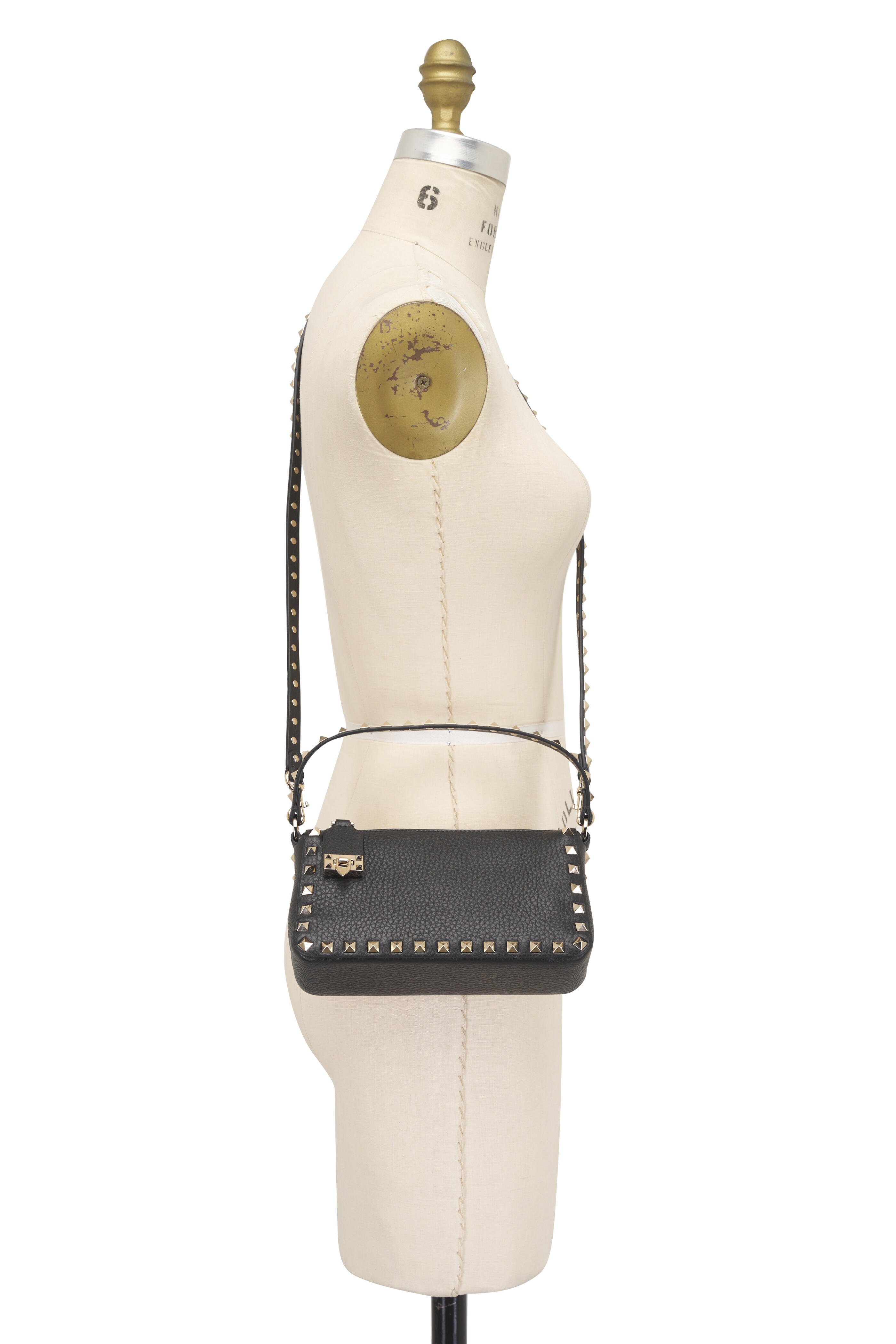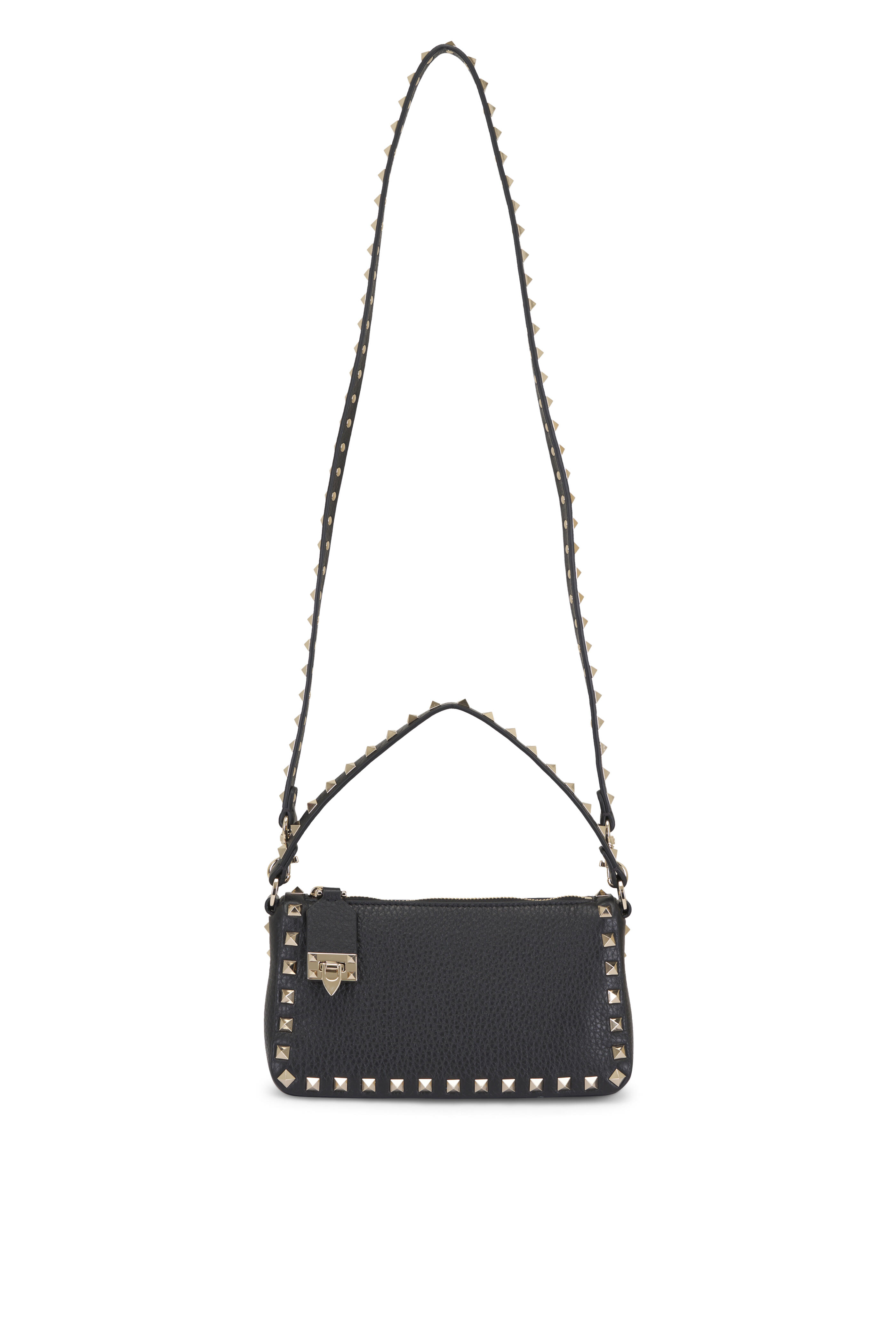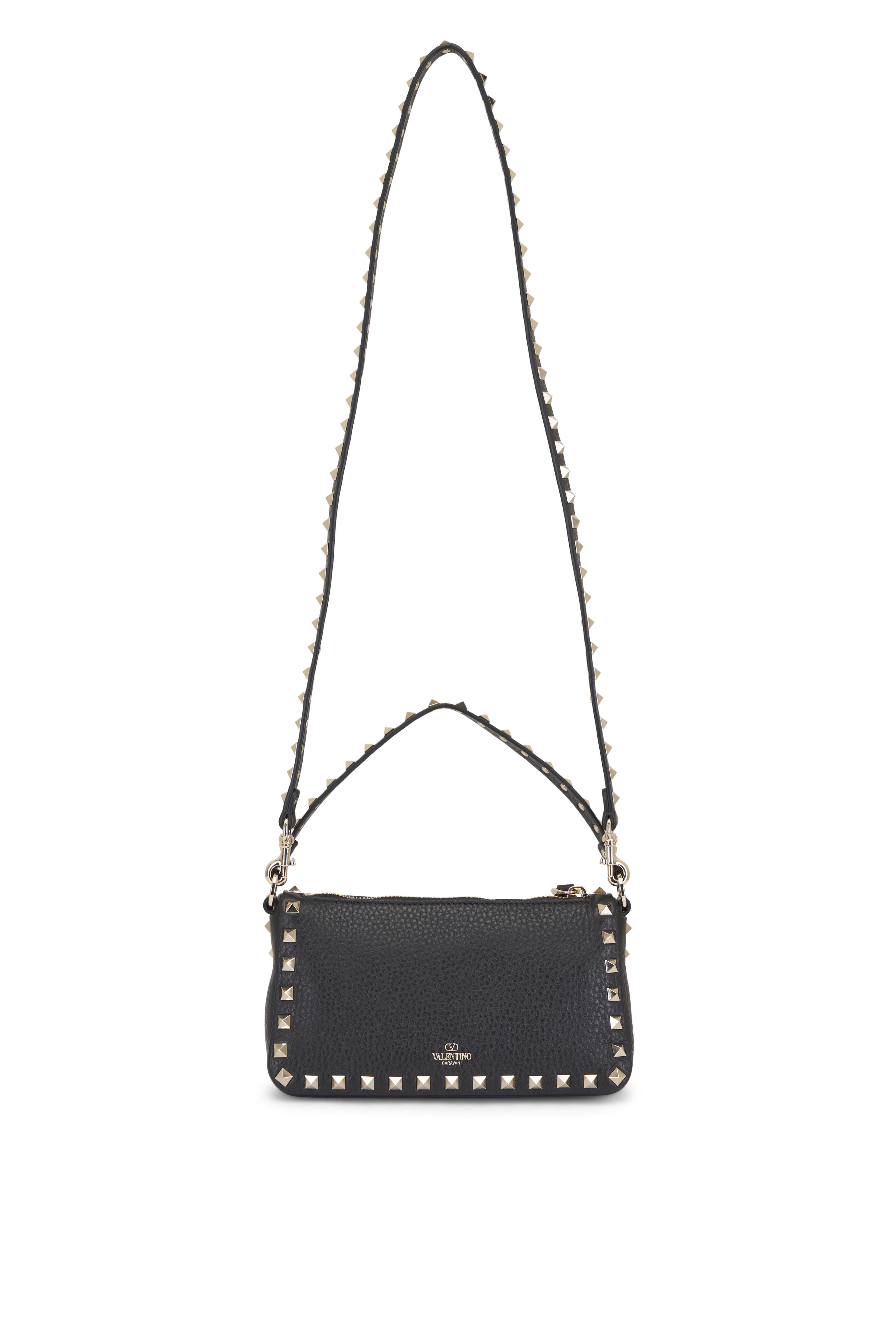 Small Rockstud Black Grainy Leather Crossbody Bag