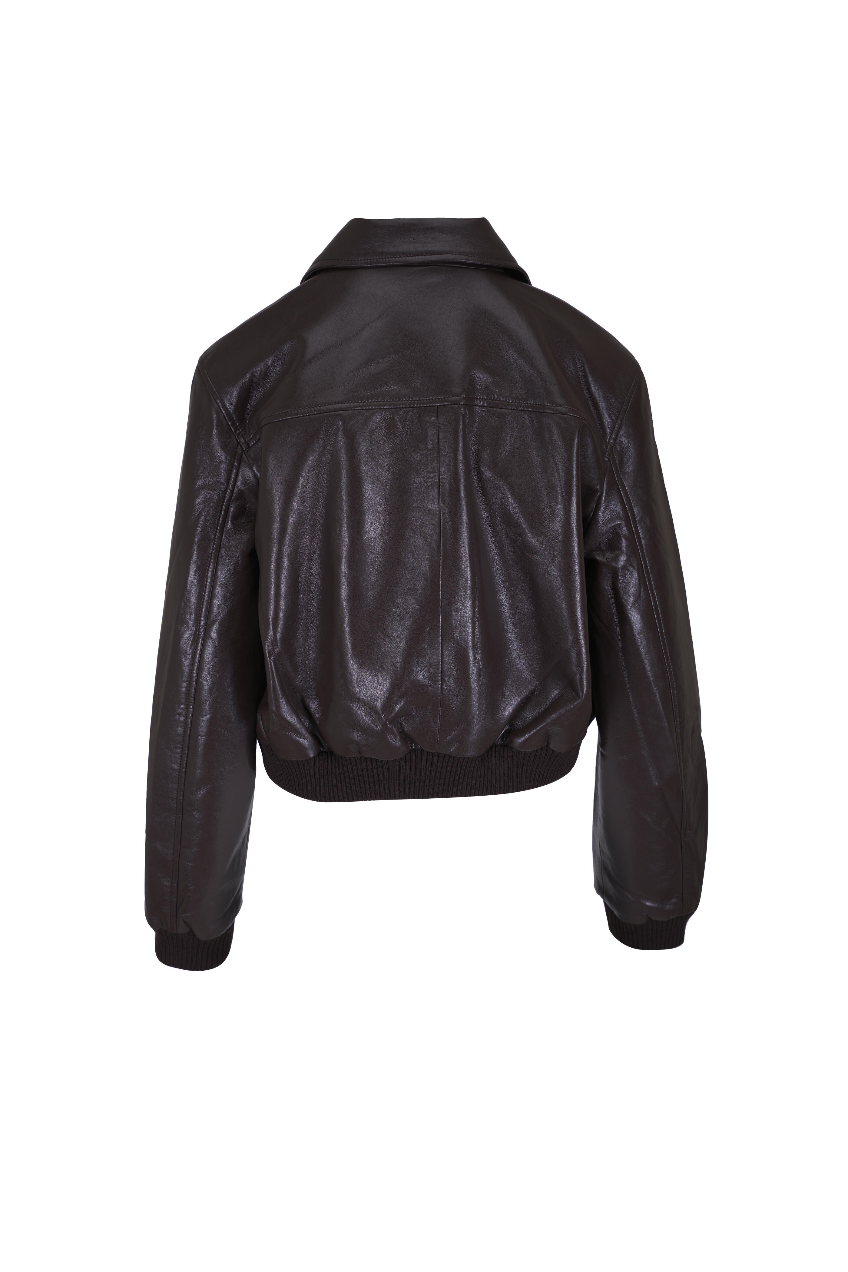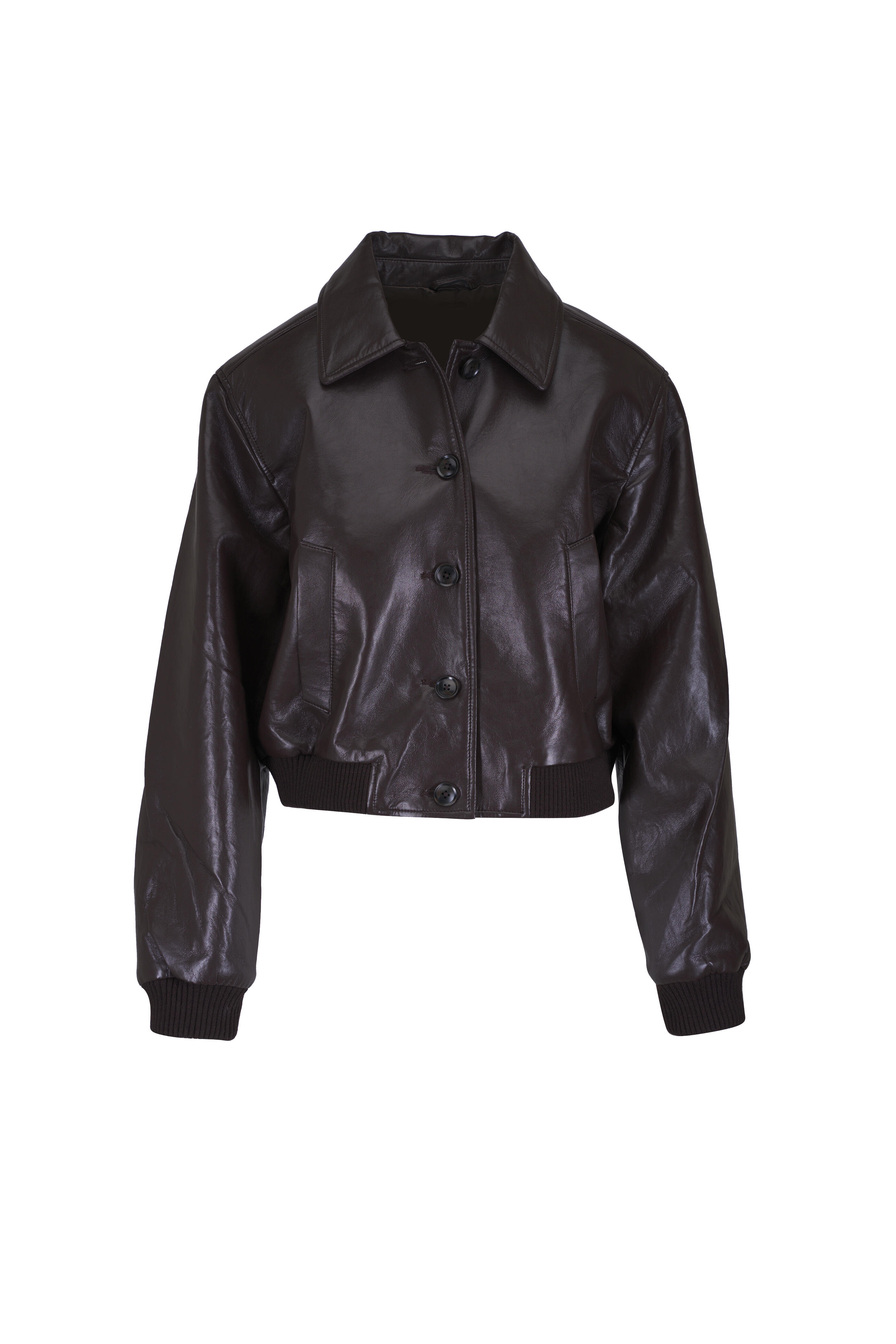Specialist clean. Point collar. Front button placket. Elasticized trims. Lower slip pockets. Straight hem. Imported. Shoulder to hem 21" (size m). 50% recycled calf leather, 30% polyurethane, 10% Viscose, 10% Polyester; fully lined.