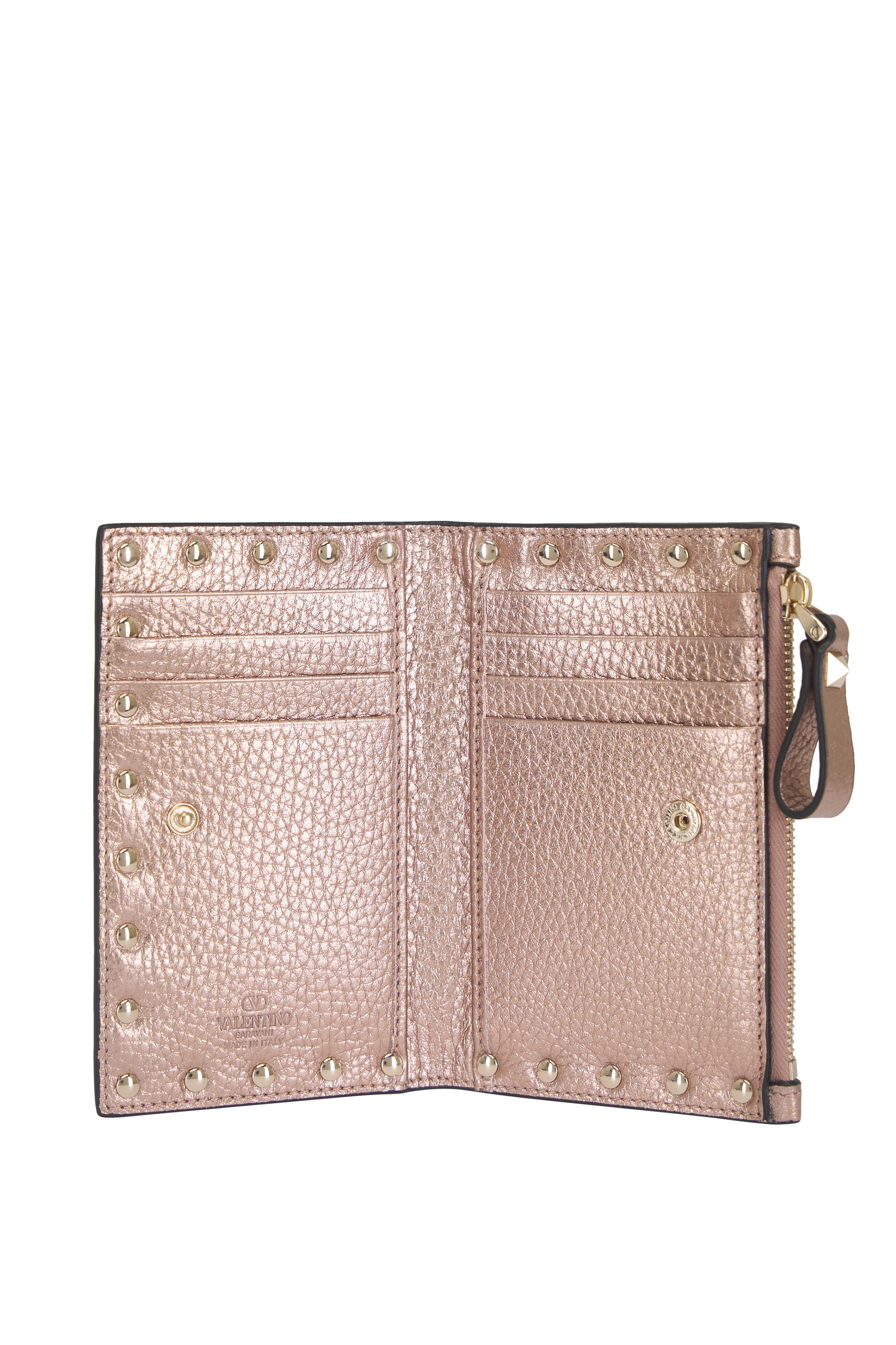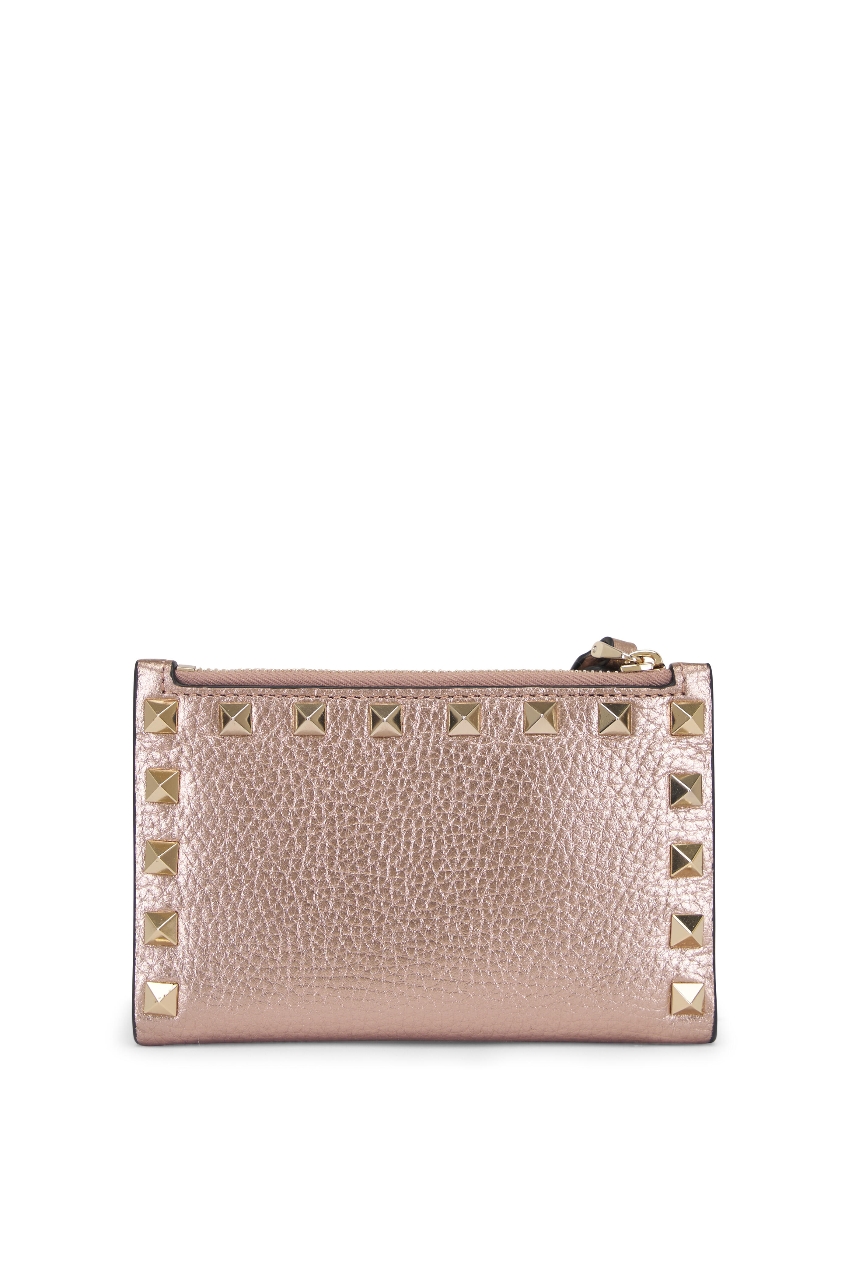 Rose Gold Rockstud Laminated Leather Cardholder