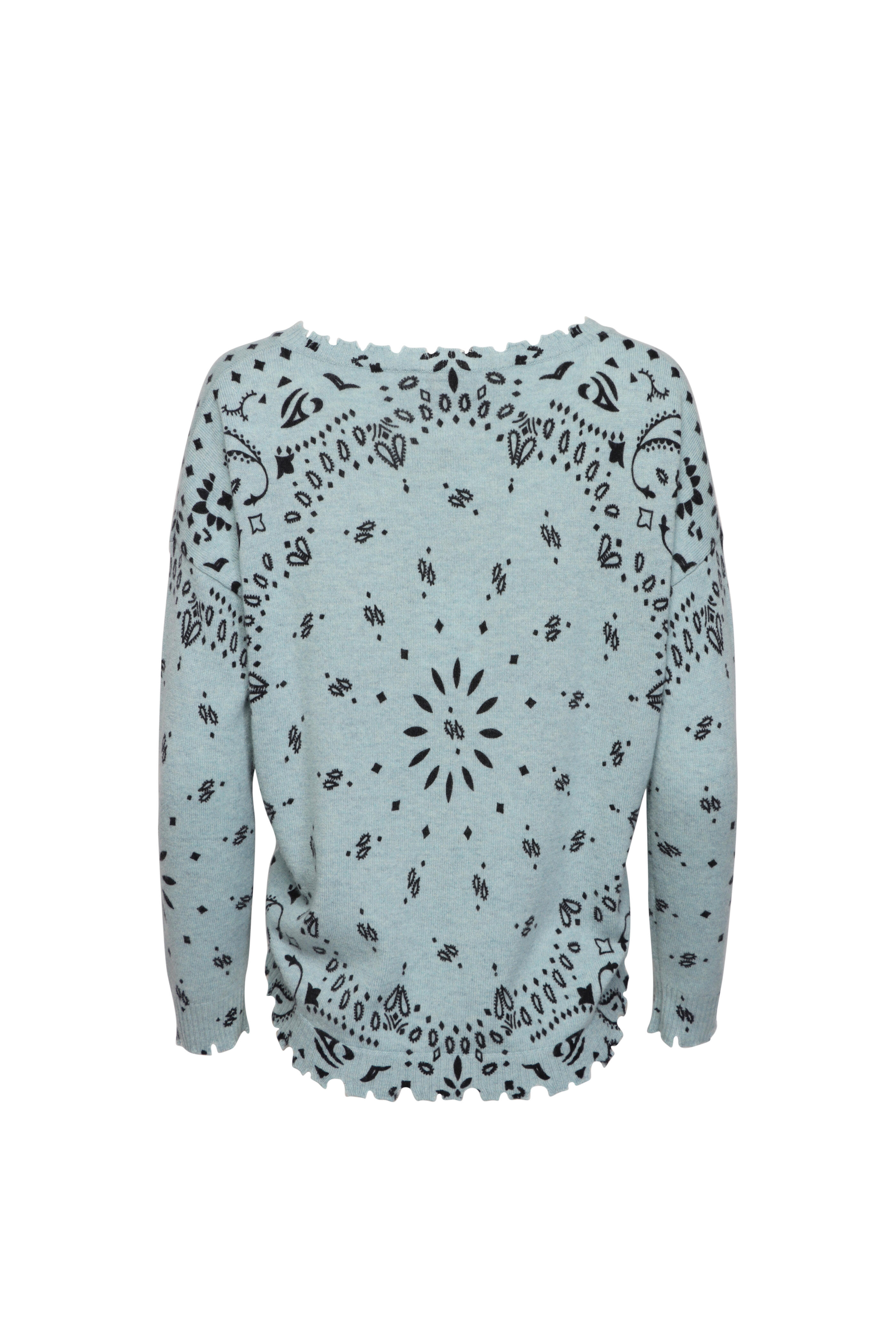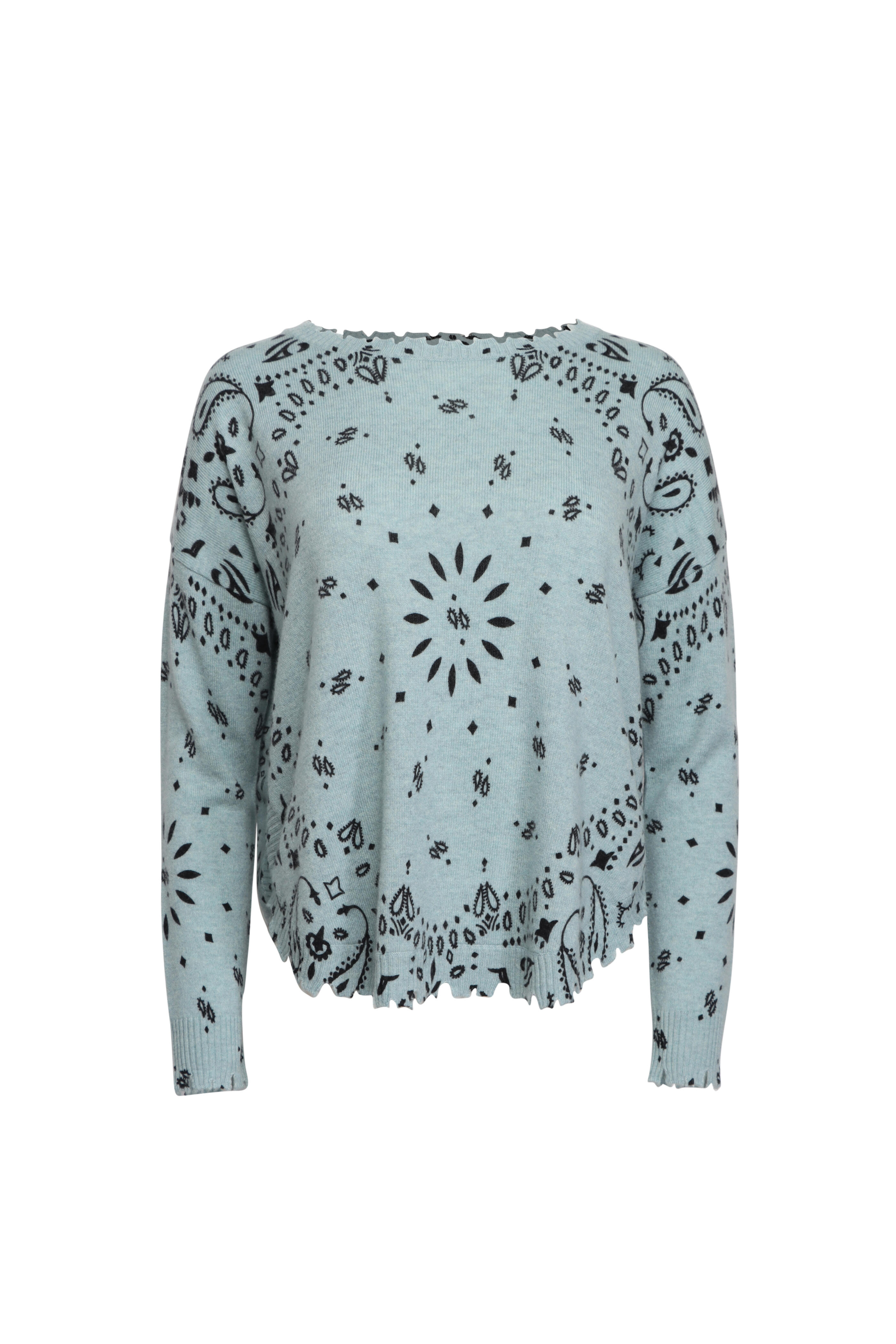 Round neck. Drop shoulders. Long sleeves. Relaxed fit. Rounded hem. Raw trim detail. Imported. Sleeve 17.375” (Size S/M). Length 24.375” (Size S/M). 100% cashmere. Machine washable.