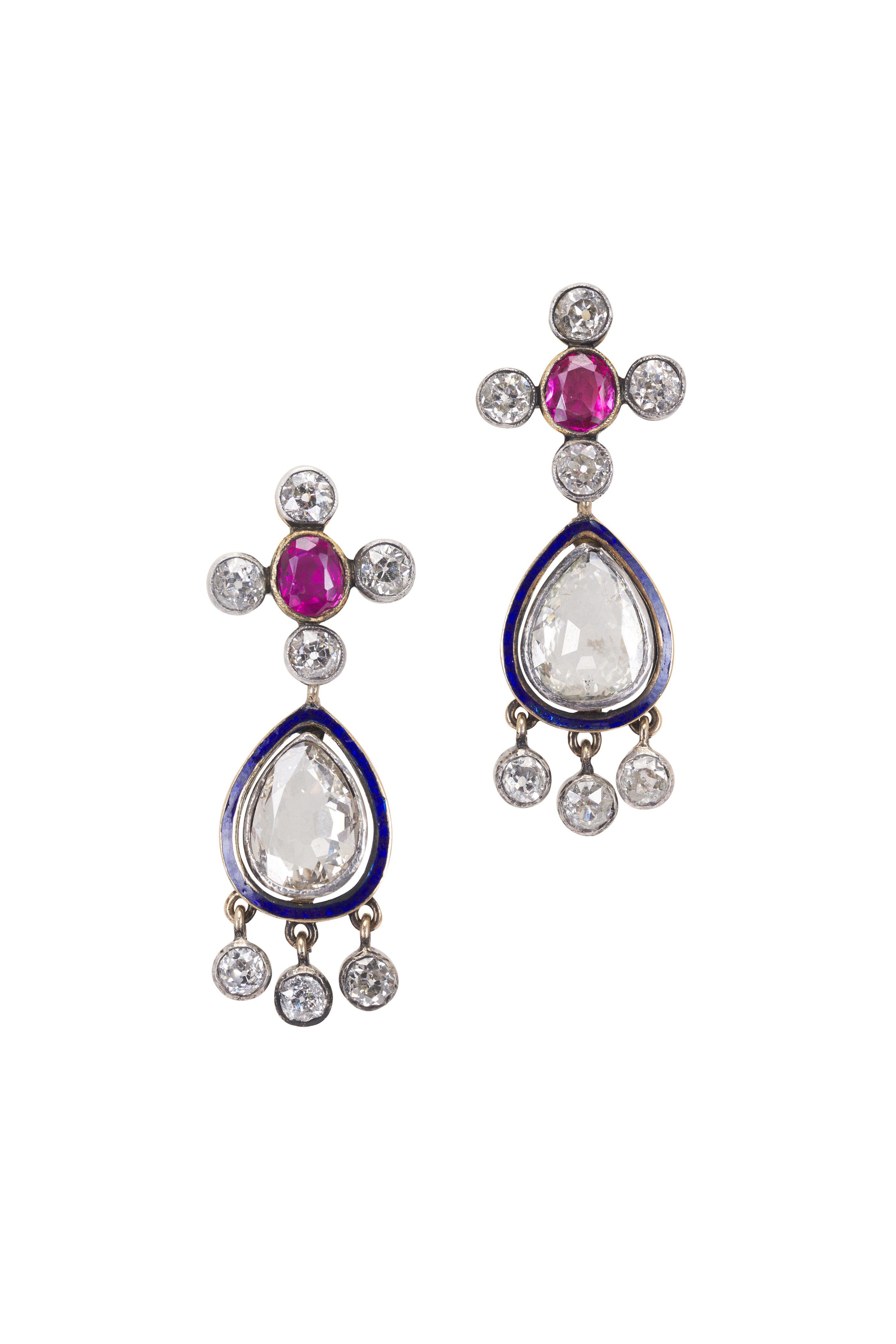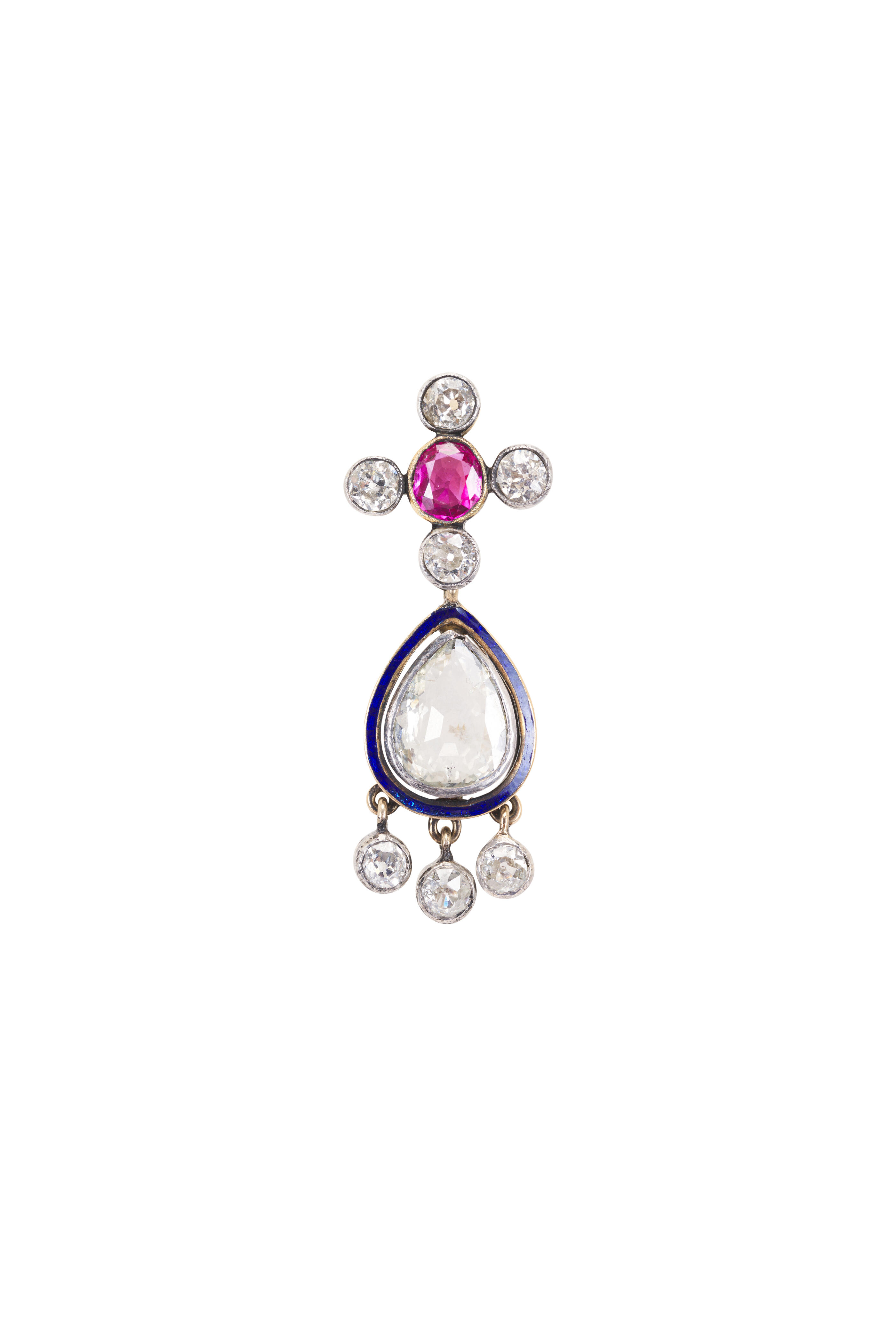 18k Yellow Gold. Silver Enamel. Ruby. Diamond.