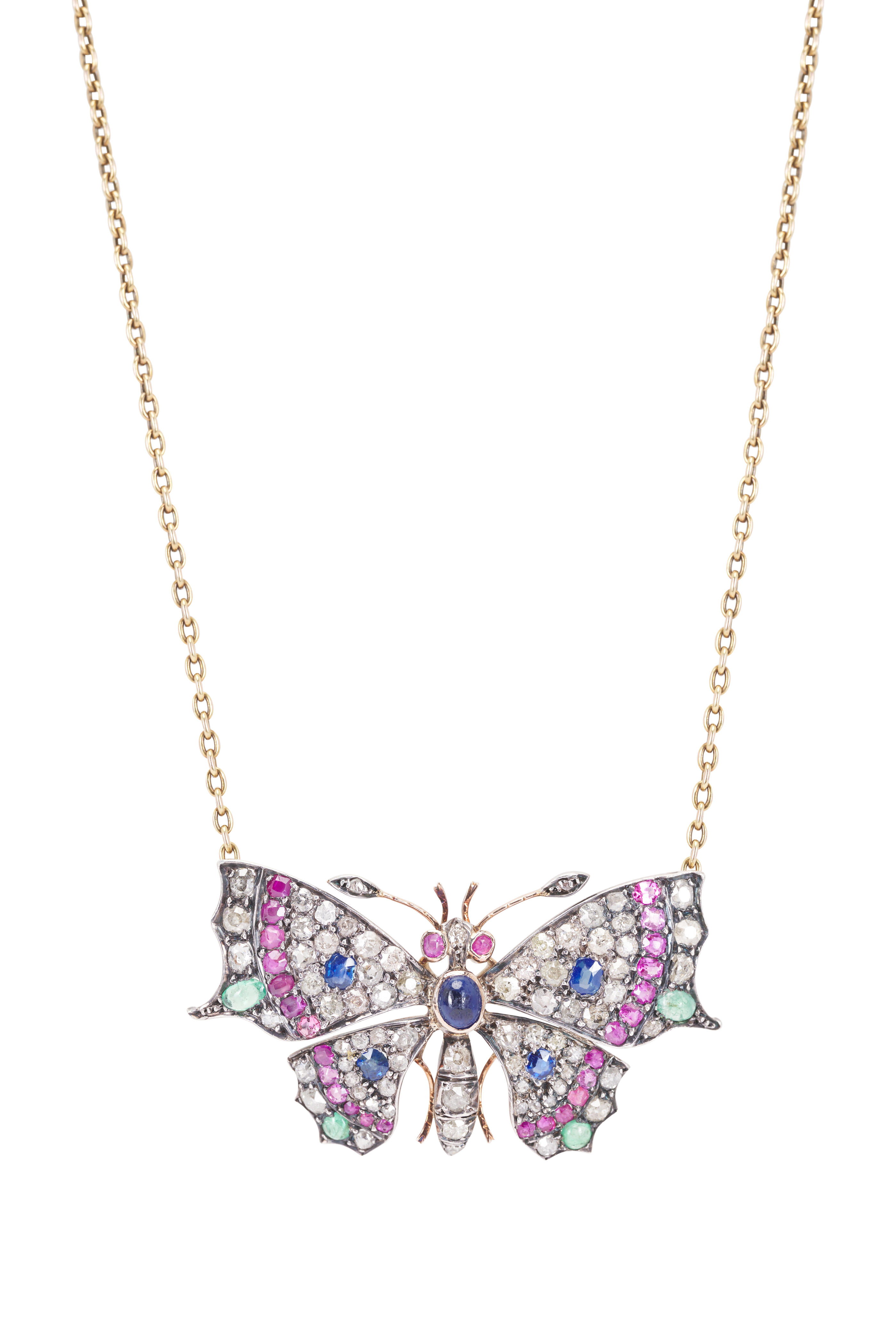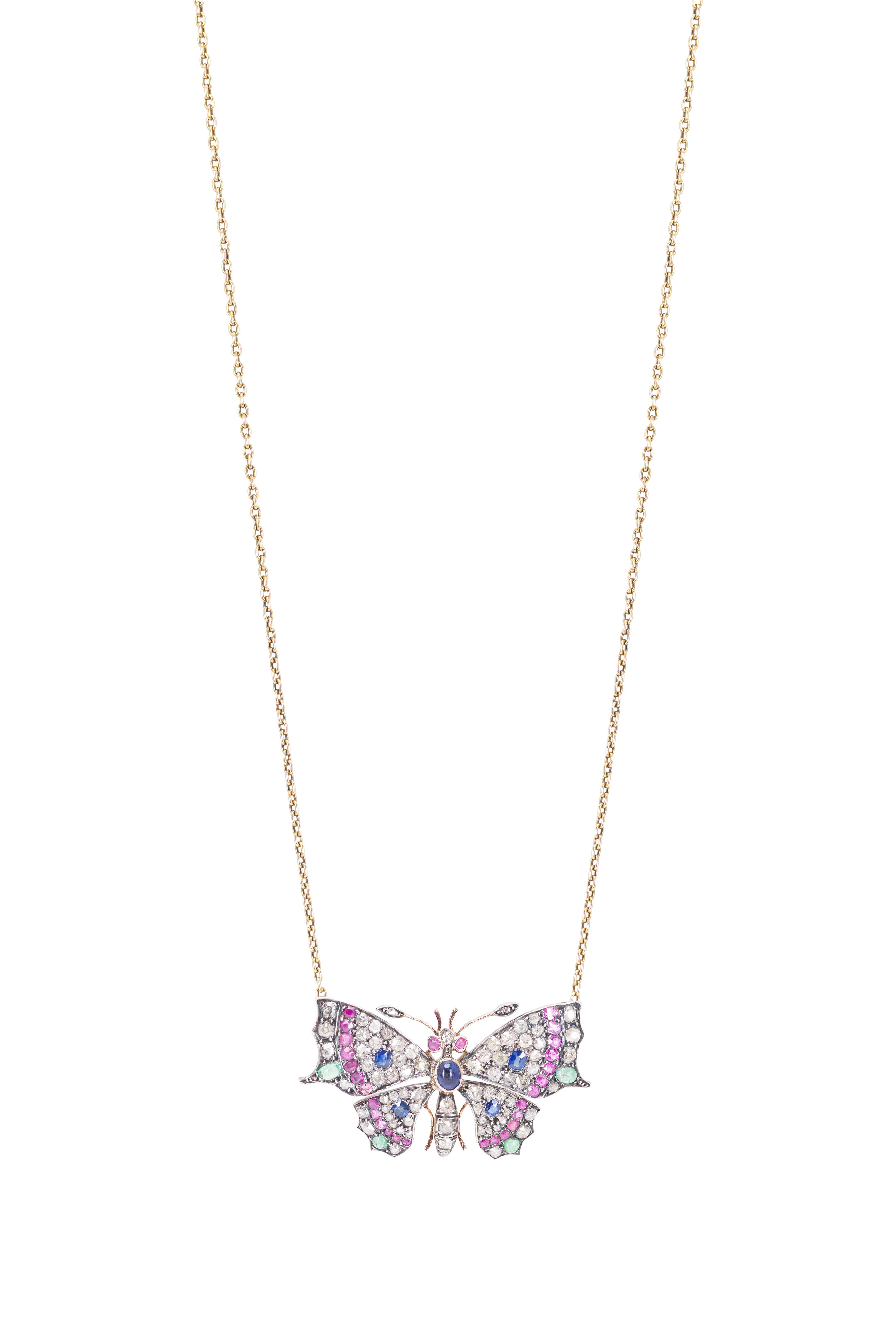 14k Yellow Gold Mixed Gemstone Butterfly Necklace