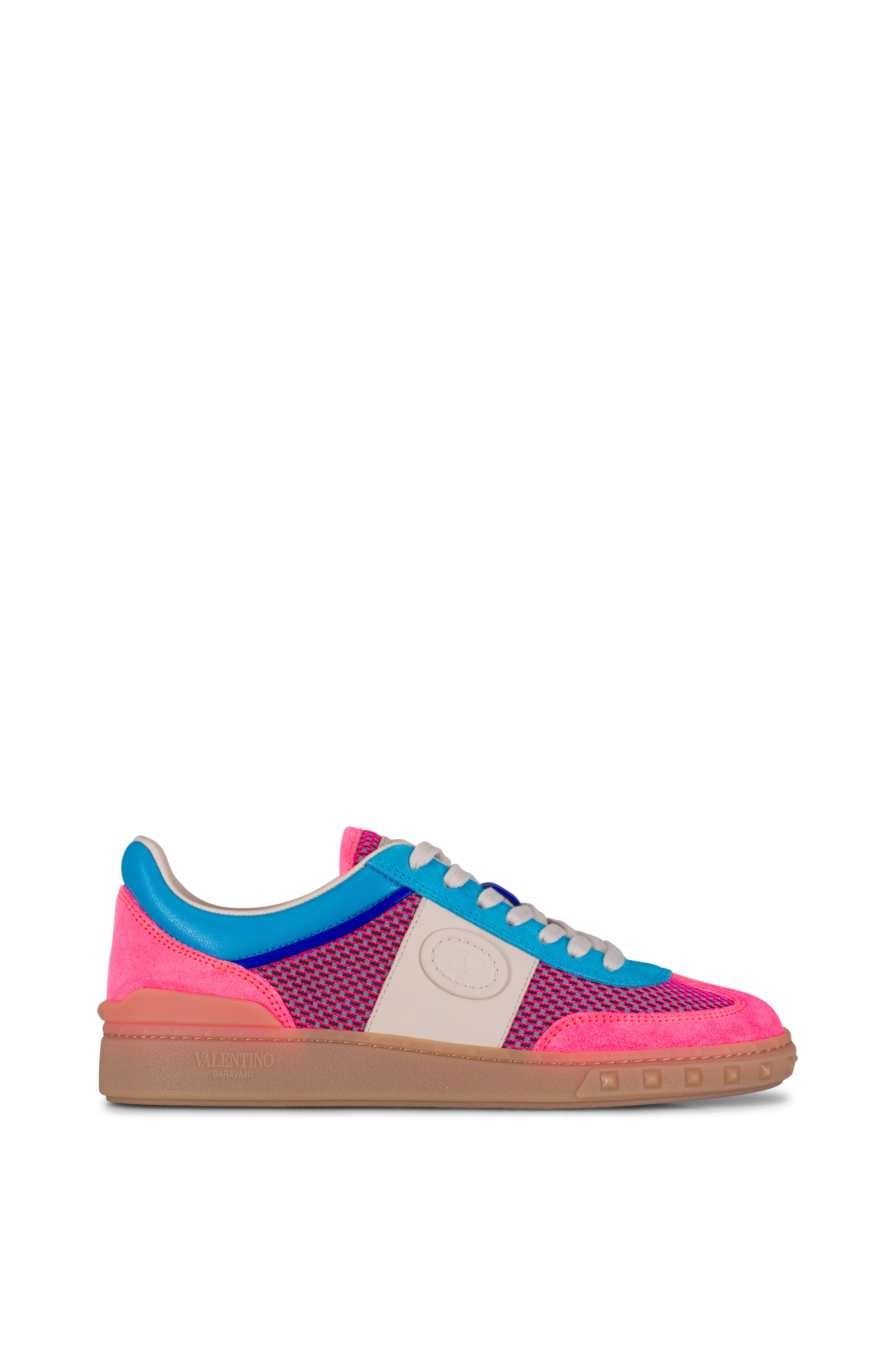 Leather, suede, mesh upper. Almond toe. Lace-up vamp. Leather patch with VLogo signature detail. Valentino Garavani logo on tongue. Leather lining and insole. Custom rubber sole with stud detailing. Made in Italy.