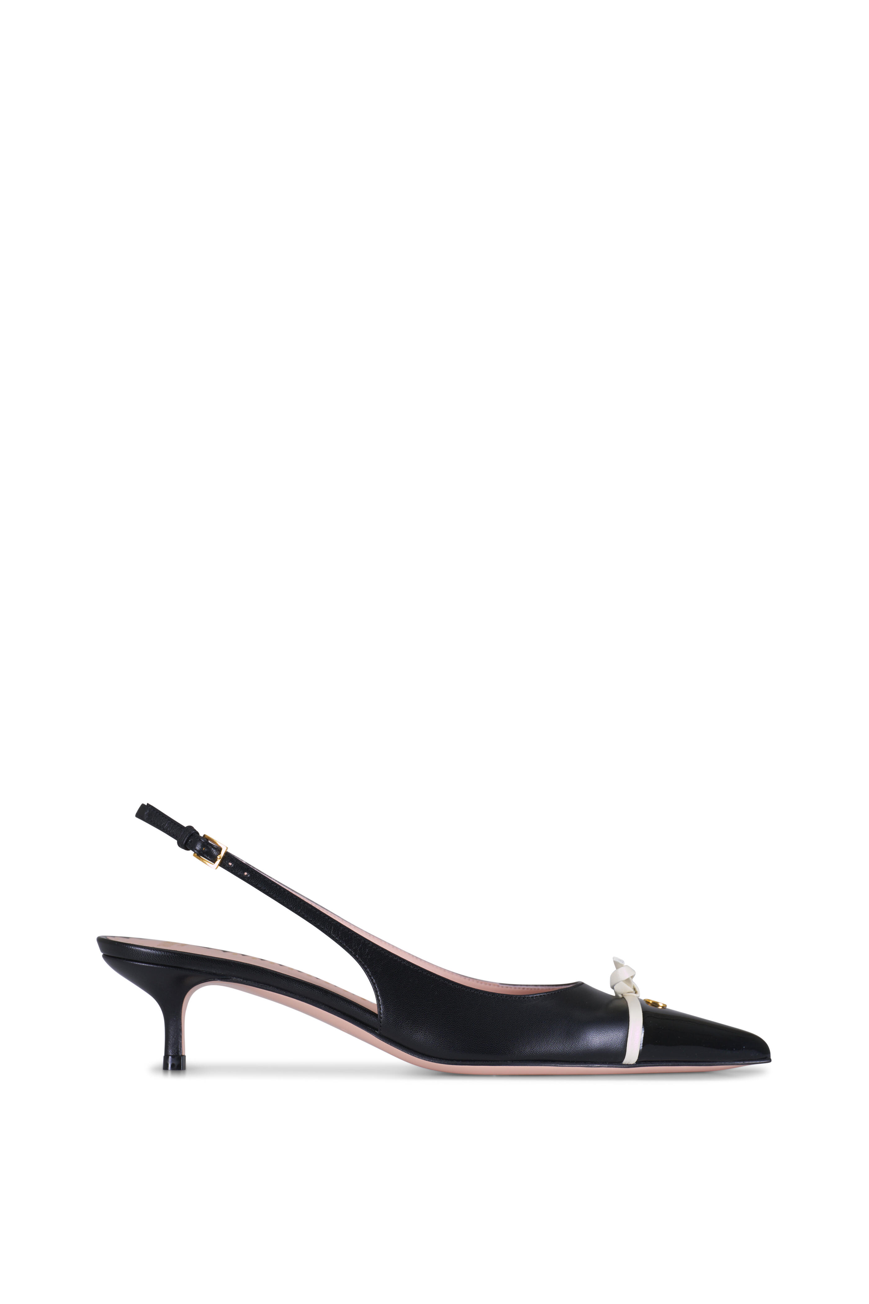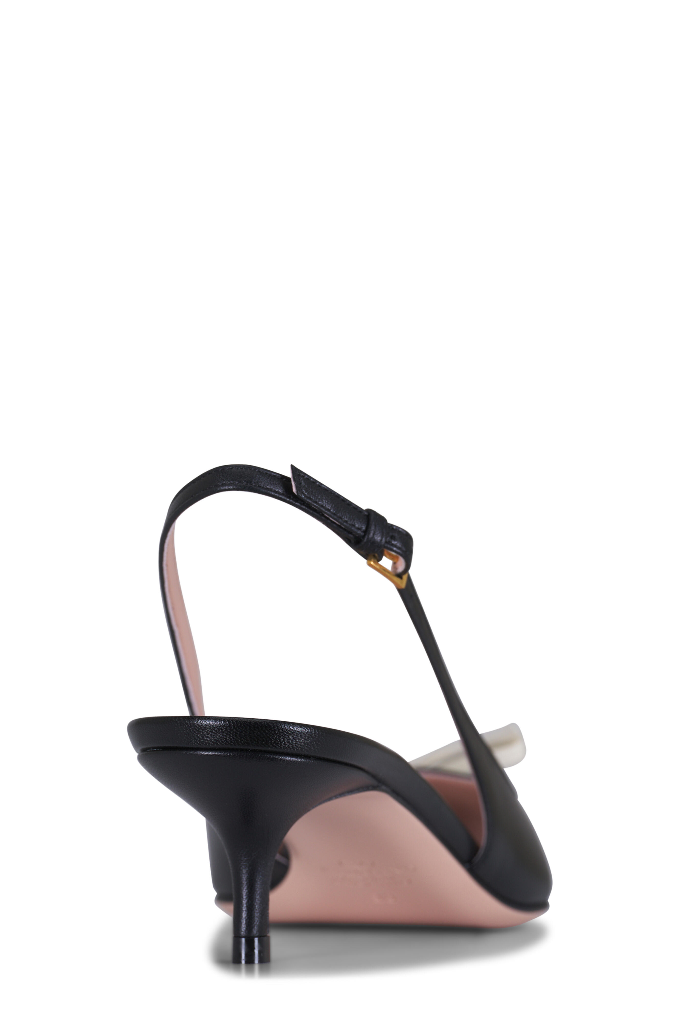 Bepointy Bow Black & Ivory Leather Slingback, 45mm