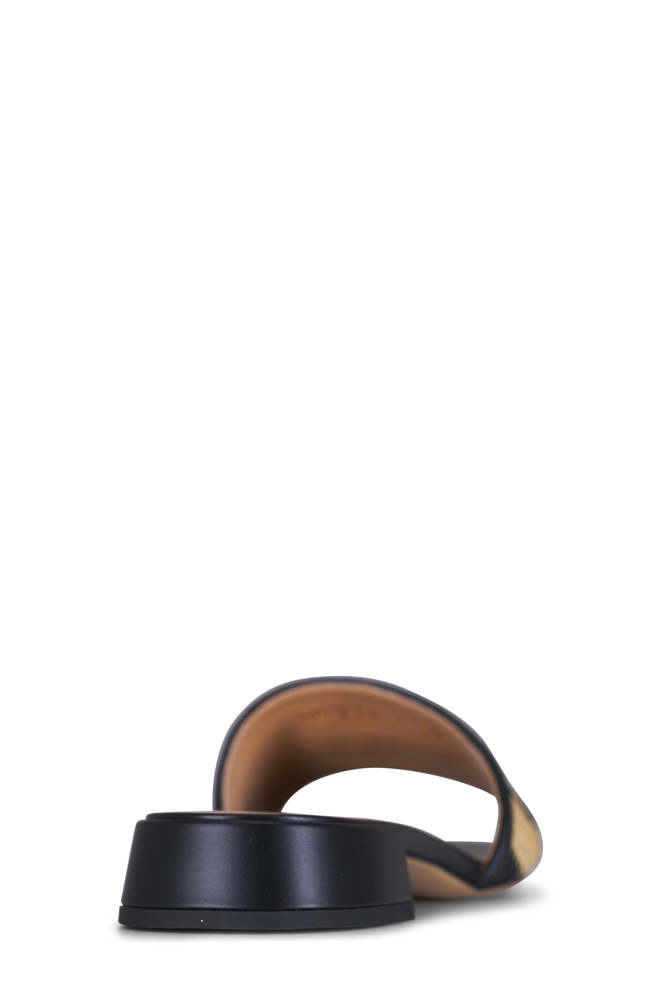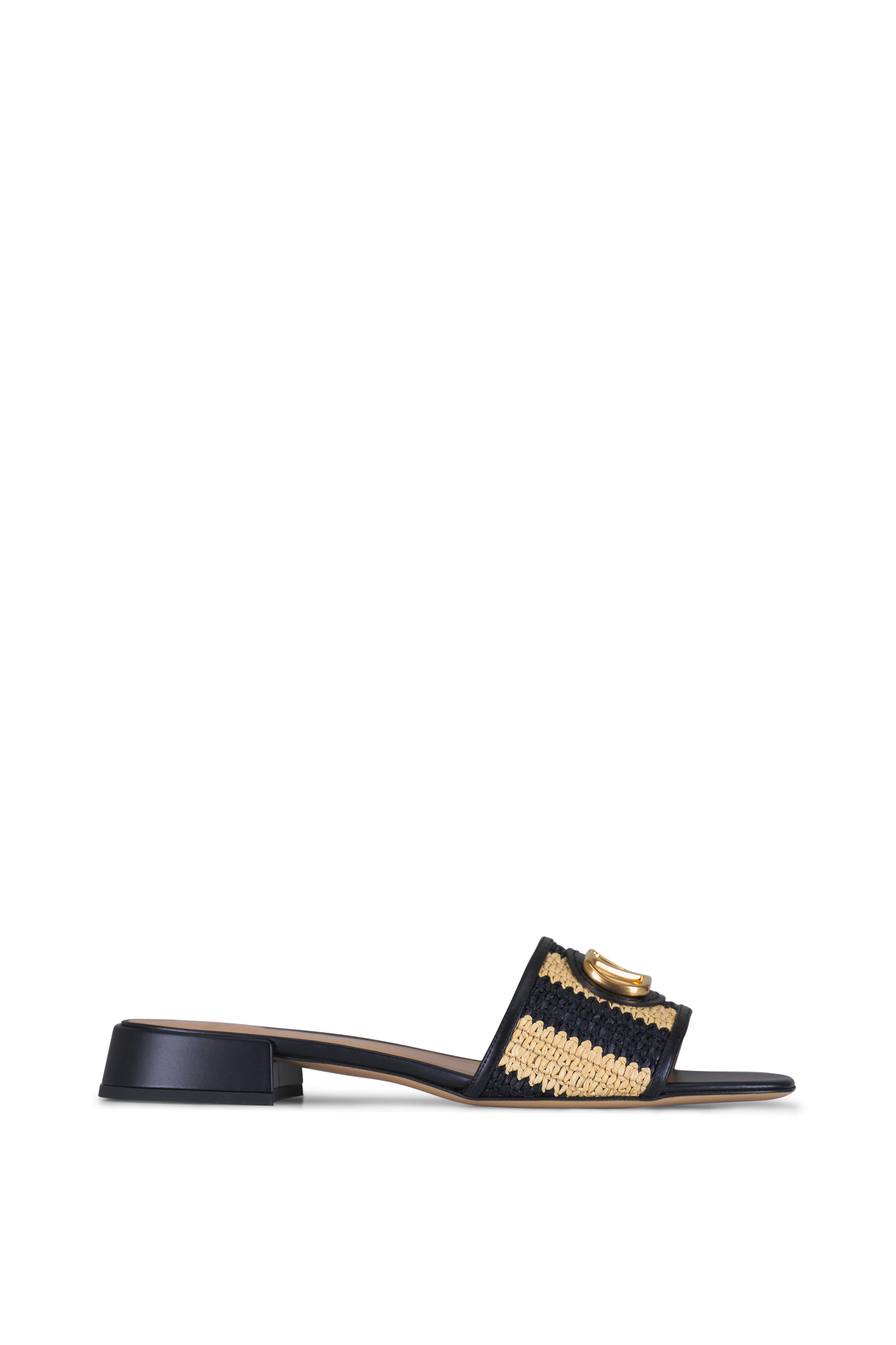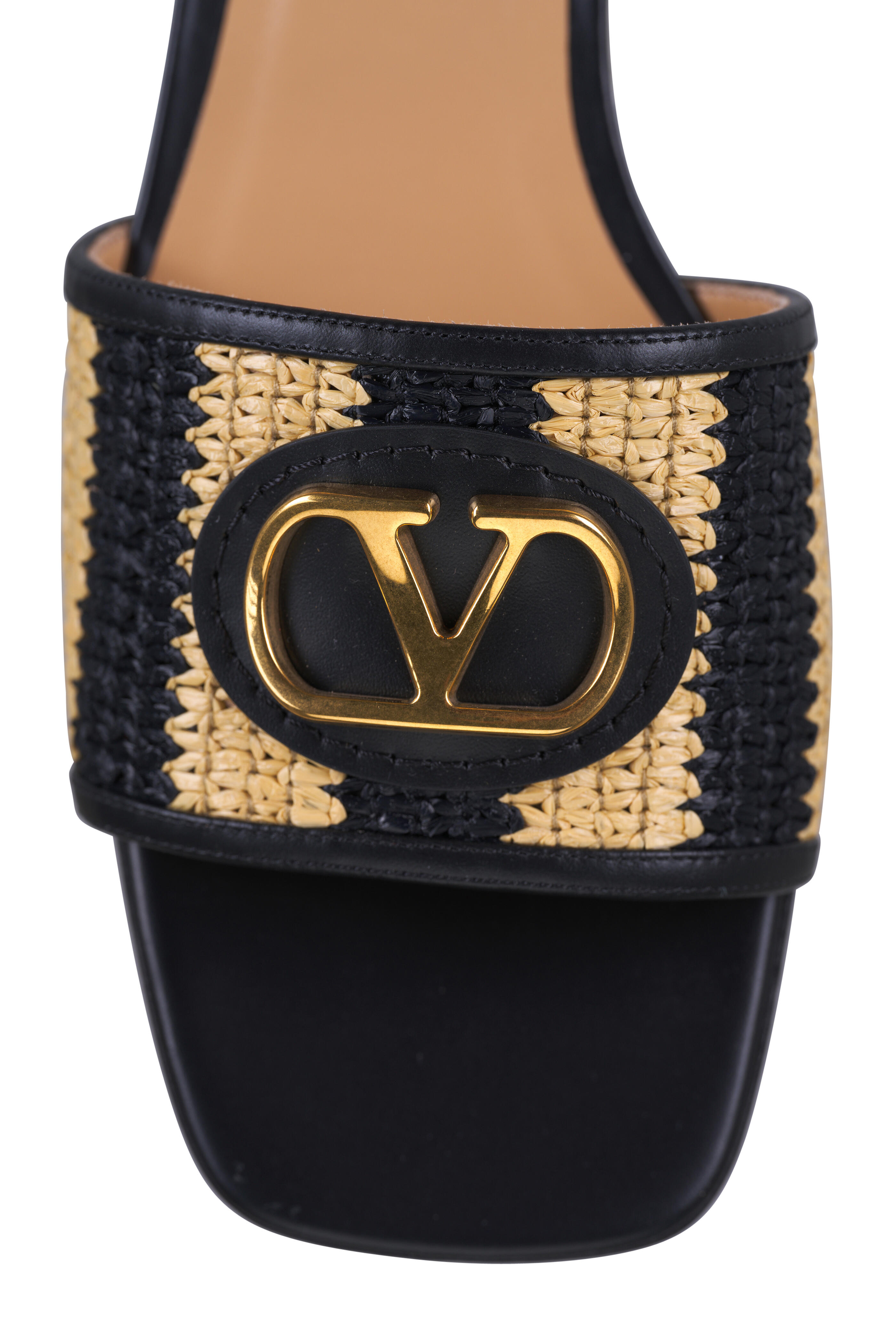 Natural & Black Stripe V Logo Raffia Slide