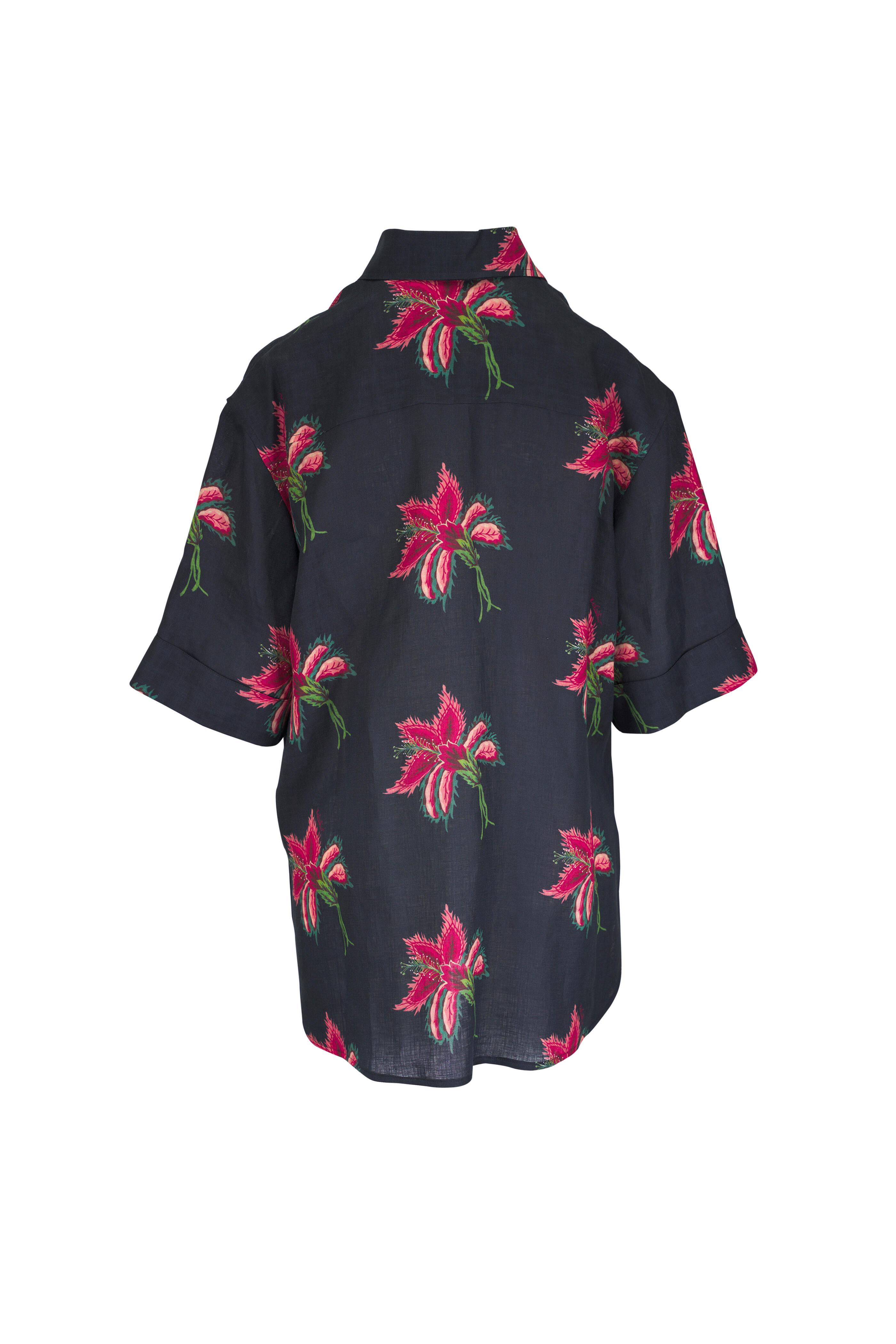 • Valentino - Black Floral Print Linen Button Up Shirt