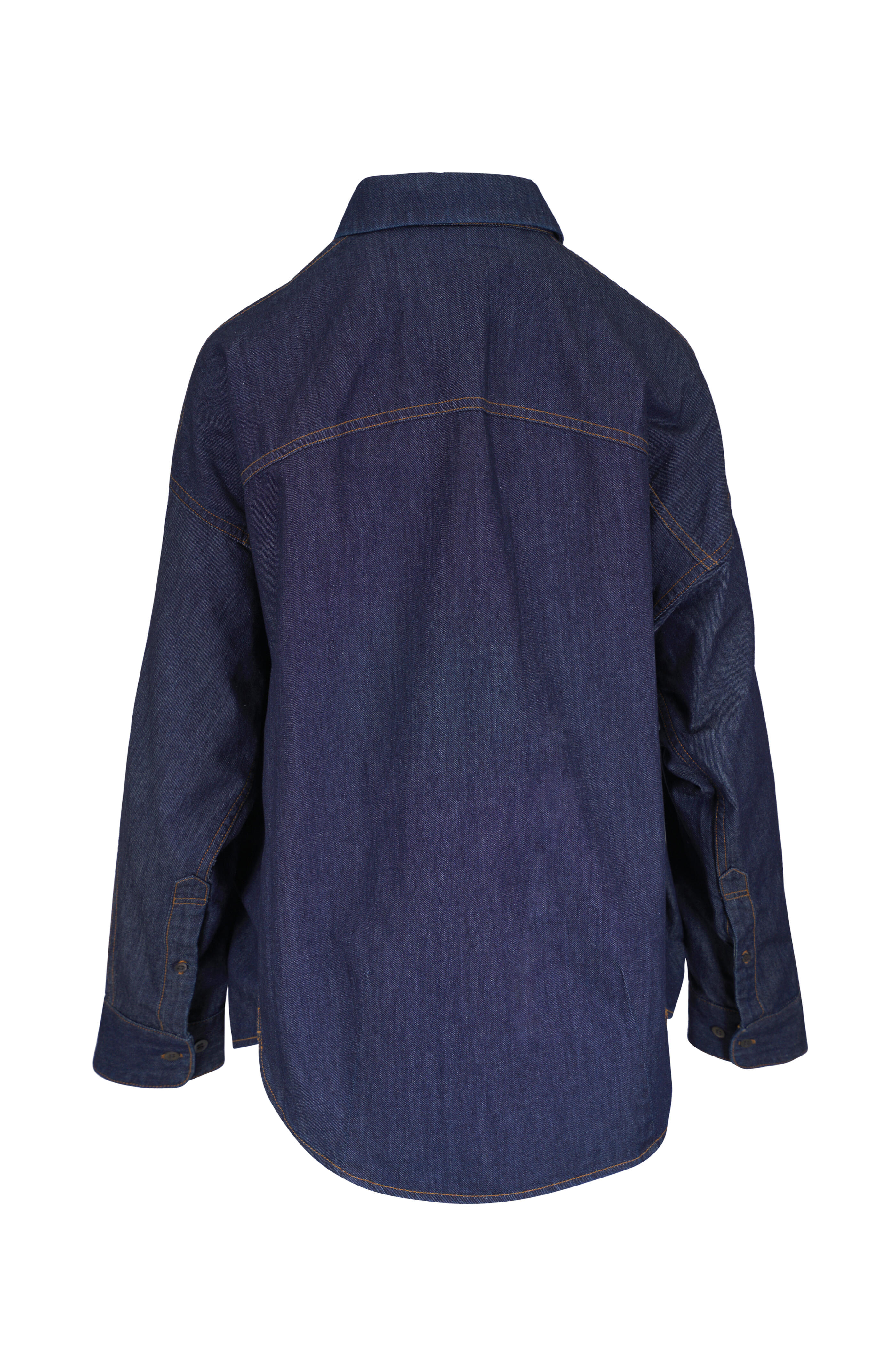 Point collar. Front button placket. Long sleeves. Curved hem. Made in Italy. Shoulder to hem 29" (size s). 100% Cotton. Dry clean.