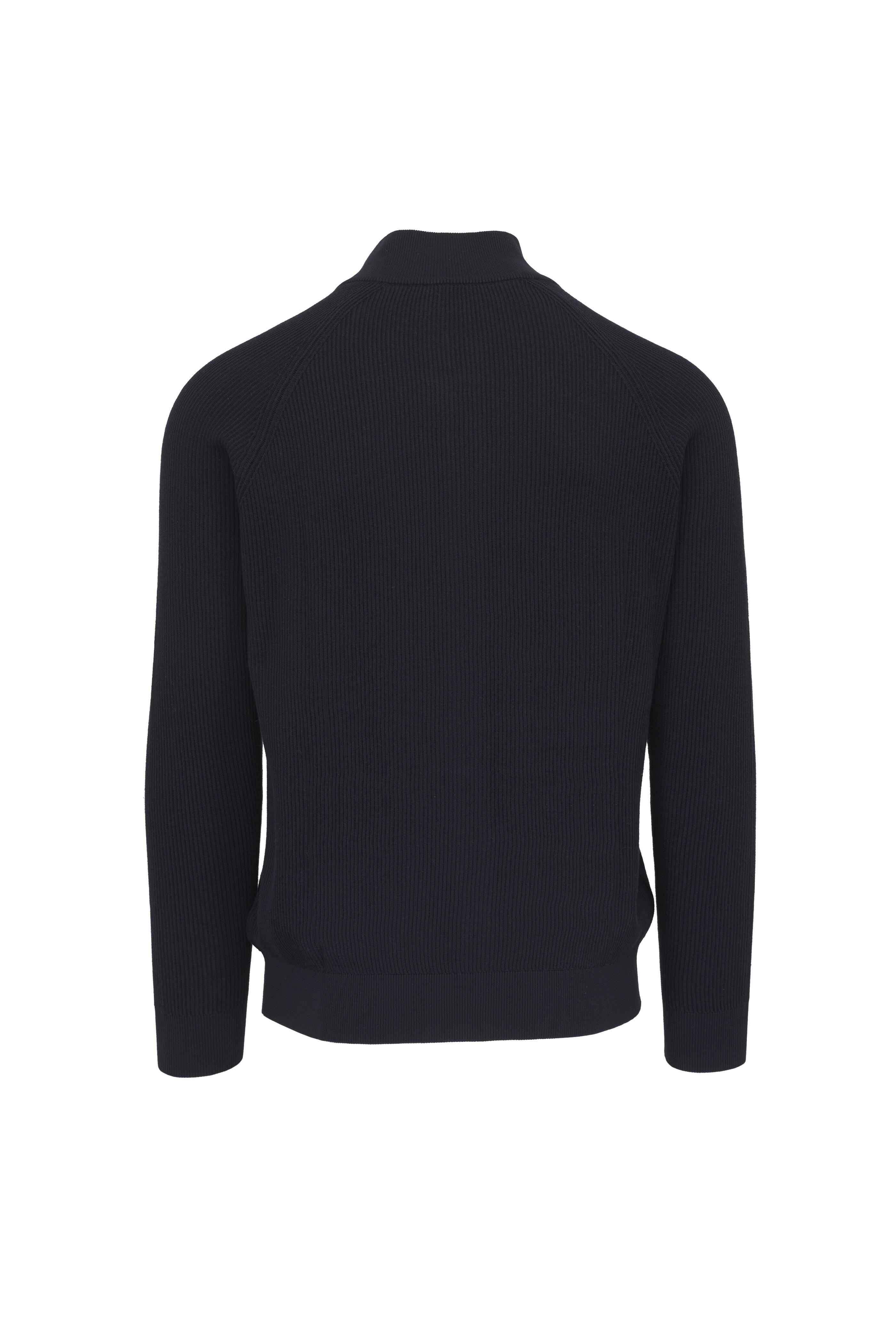 Stand collar. Two way front zip. Made in Italy. 100% cotton. Dry clean.