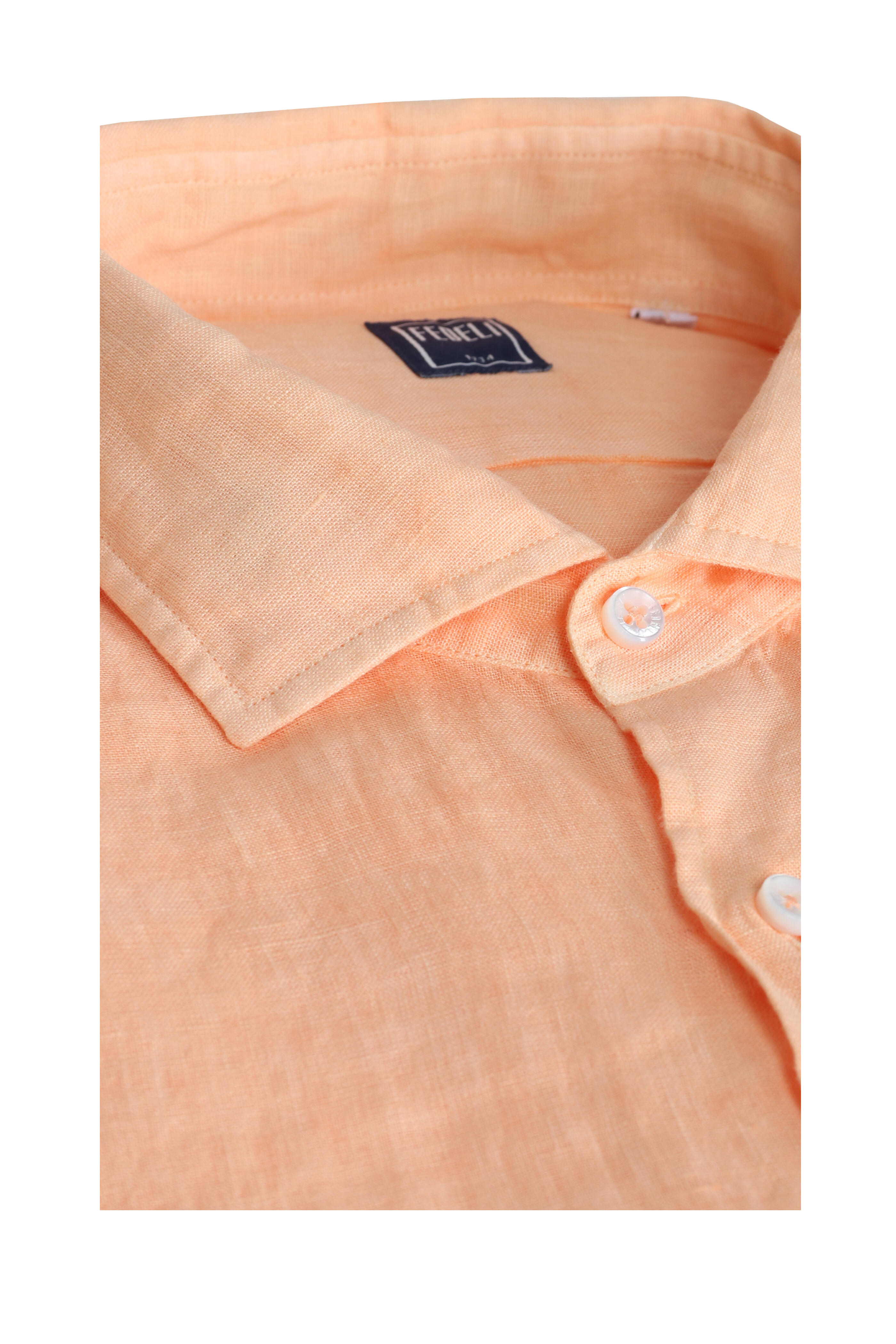 Spread collar. Button front closure. Single-button mitered cuffs. Imported. 100% linen. Machine wash.