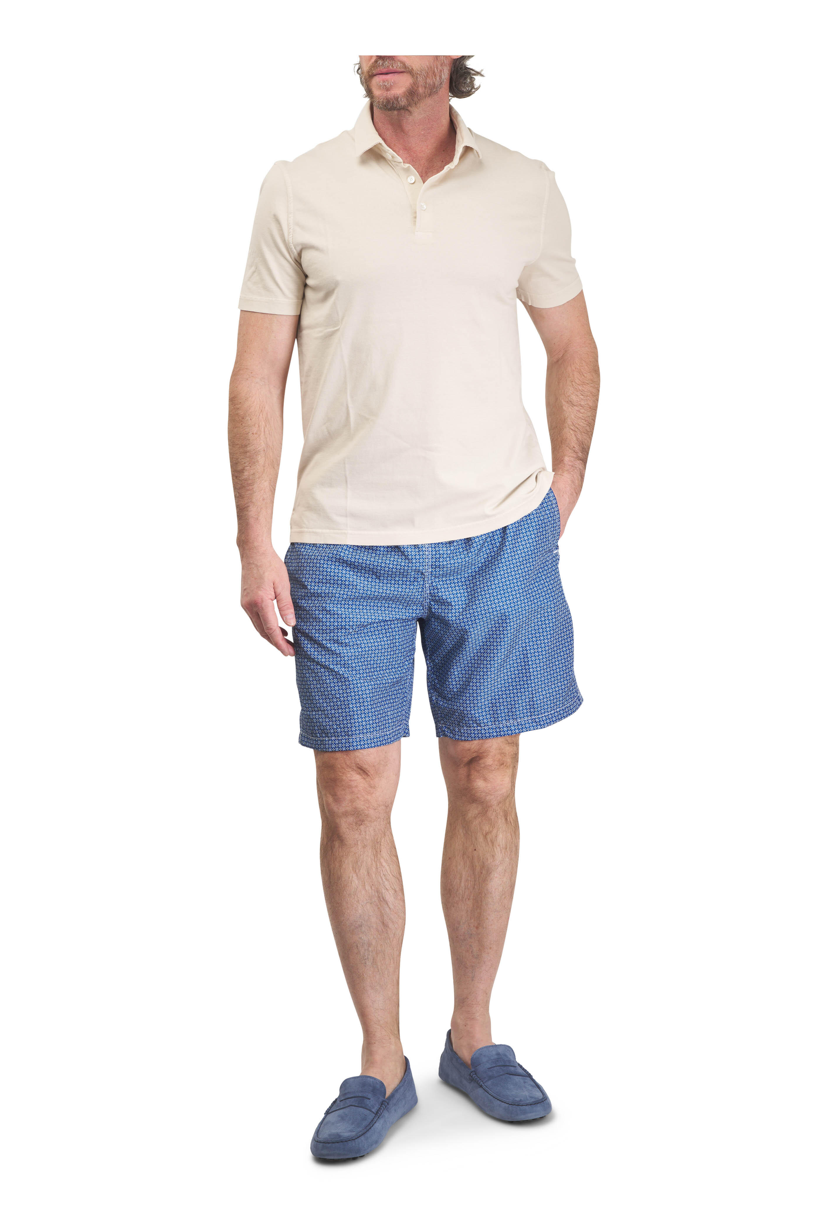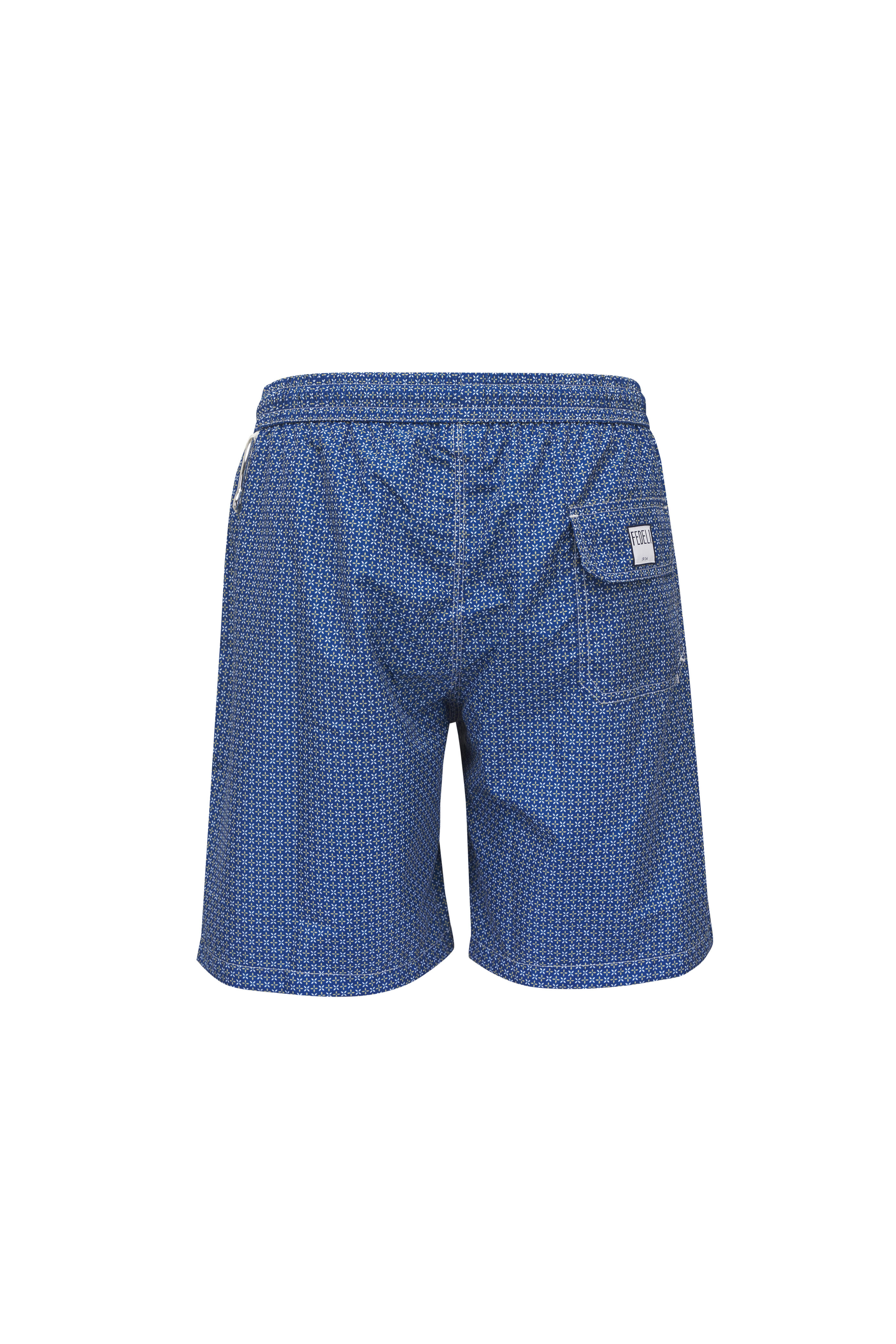 Navy Print Swim Trunks