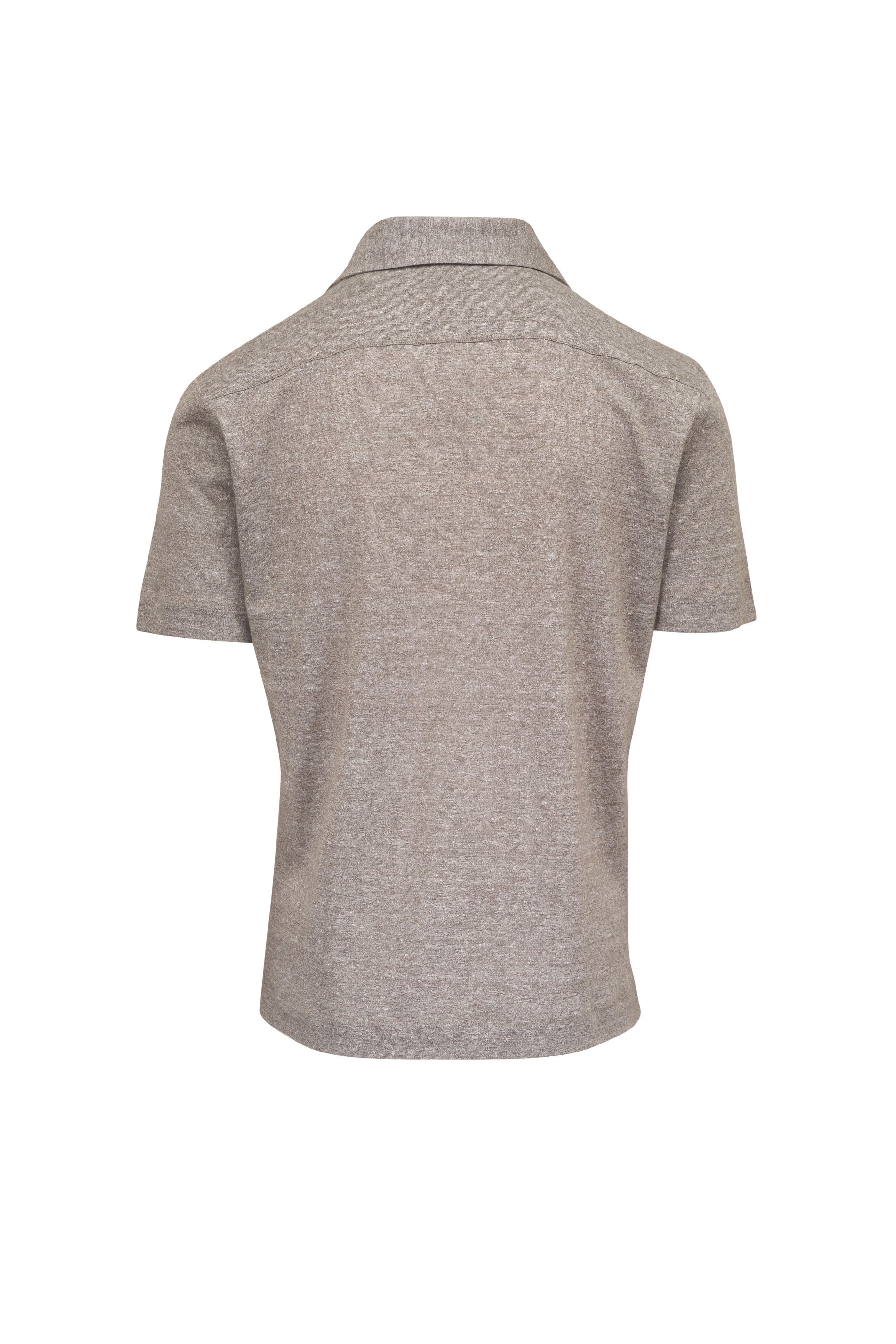 Spread collar. Three-button placket. Vented hem. Made in Italy. 67% linen, 33% cotton. Machine wash.