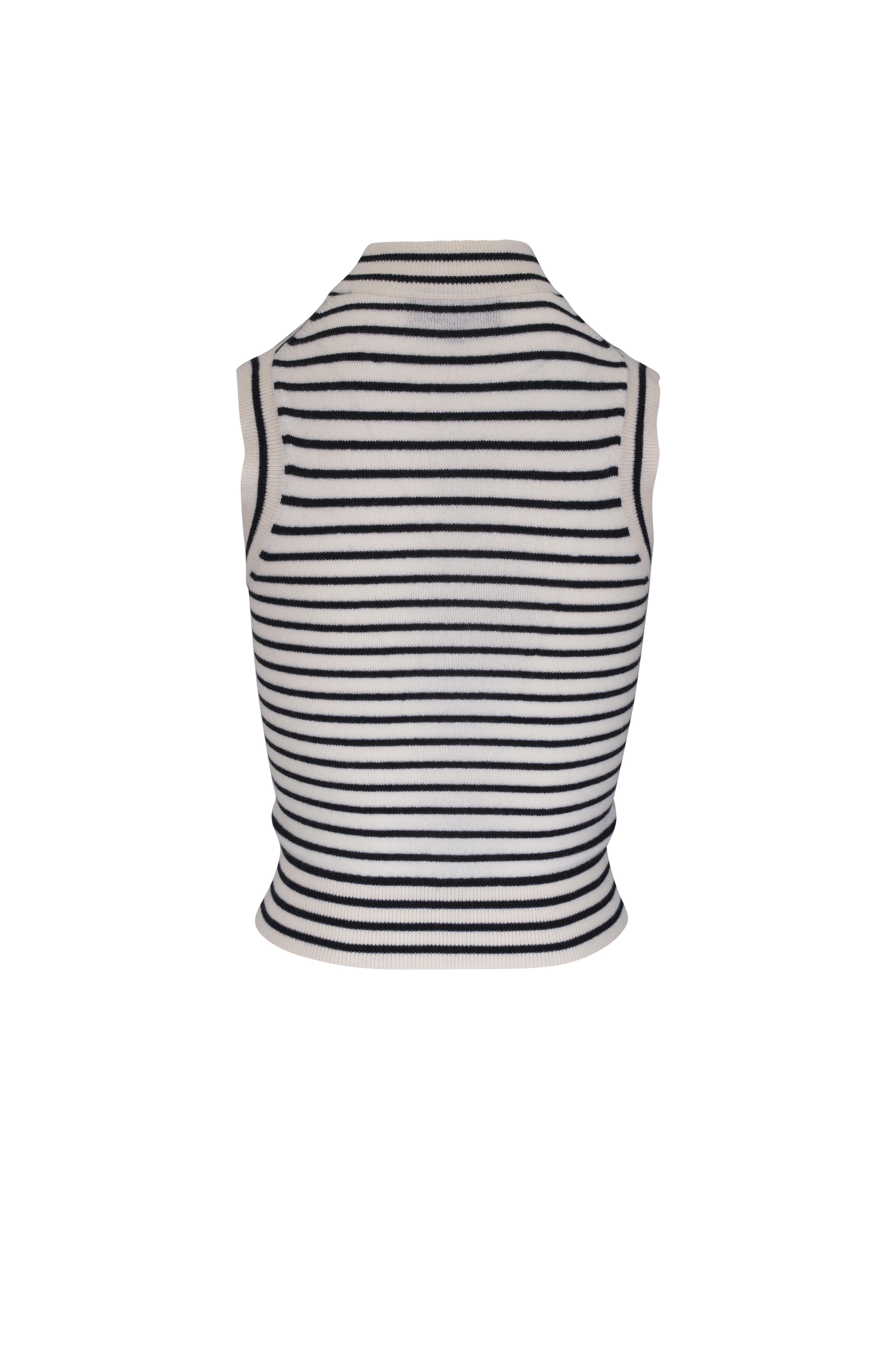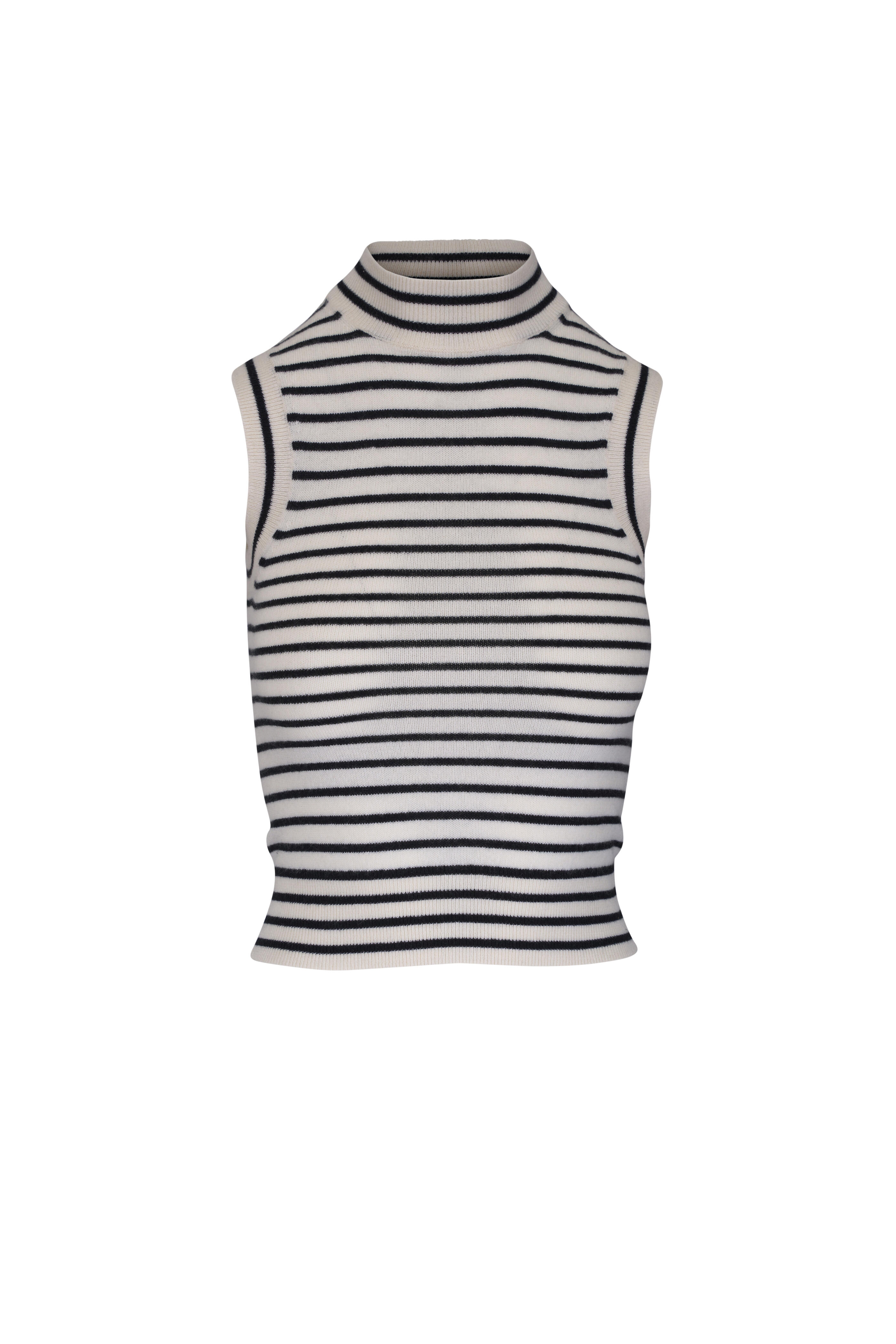 Mock neckline. Ribbed throughout. Imported. 100% cashmere. Dry clean.