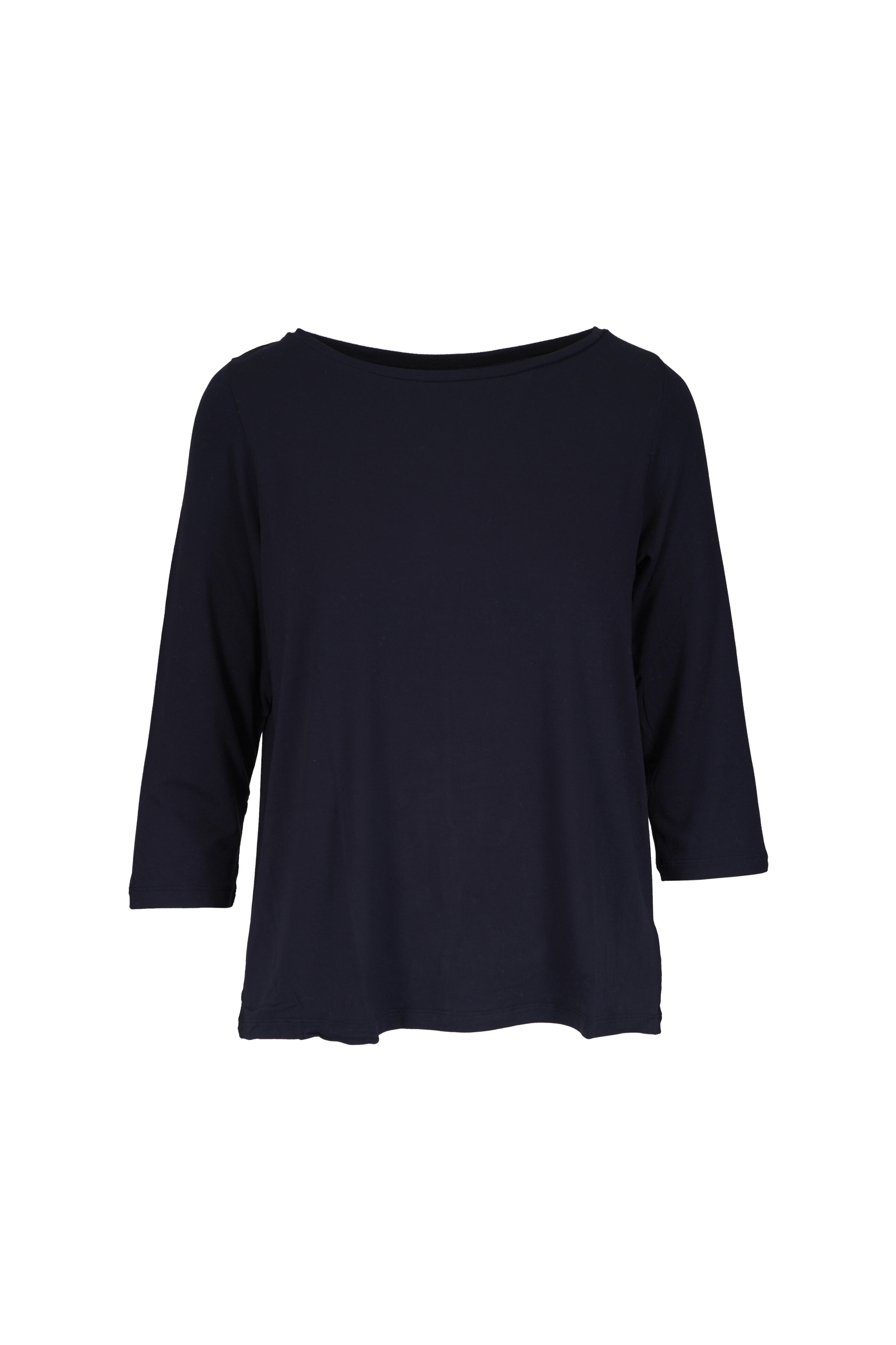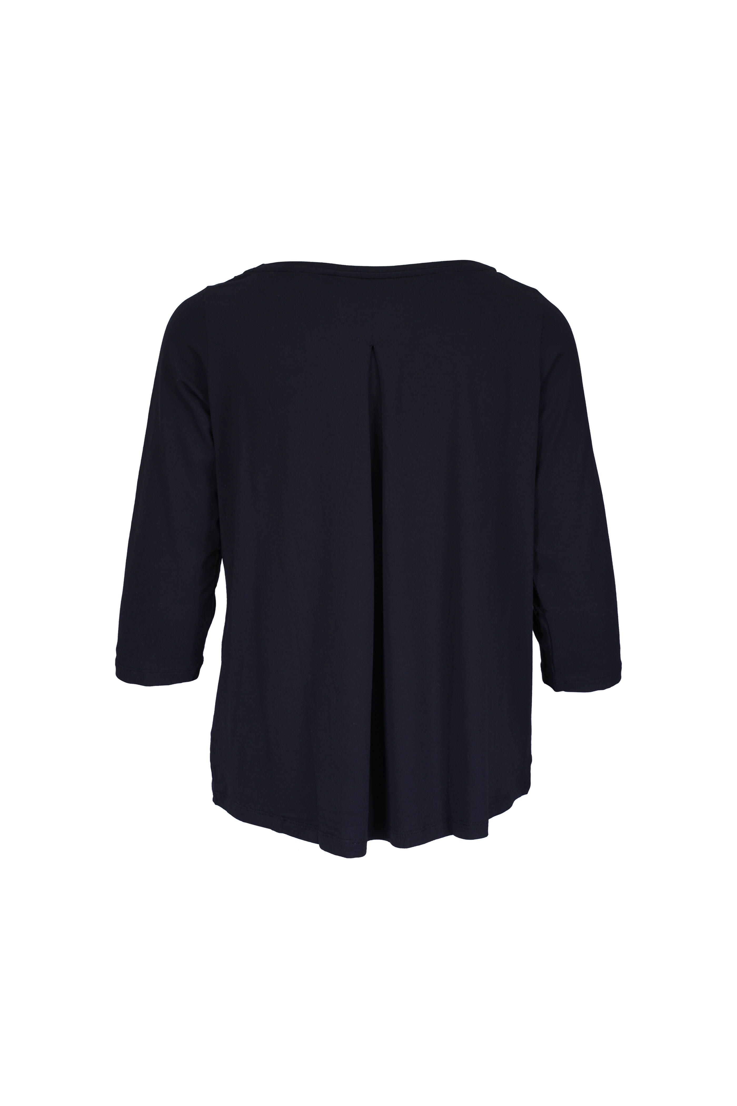 Crew neckline. Pullover style. Inverted pleat at back. Straight hem. Imported. Shoulder to hem 24" (size s). 94% viscose, 6% elastane. Machine wash.
