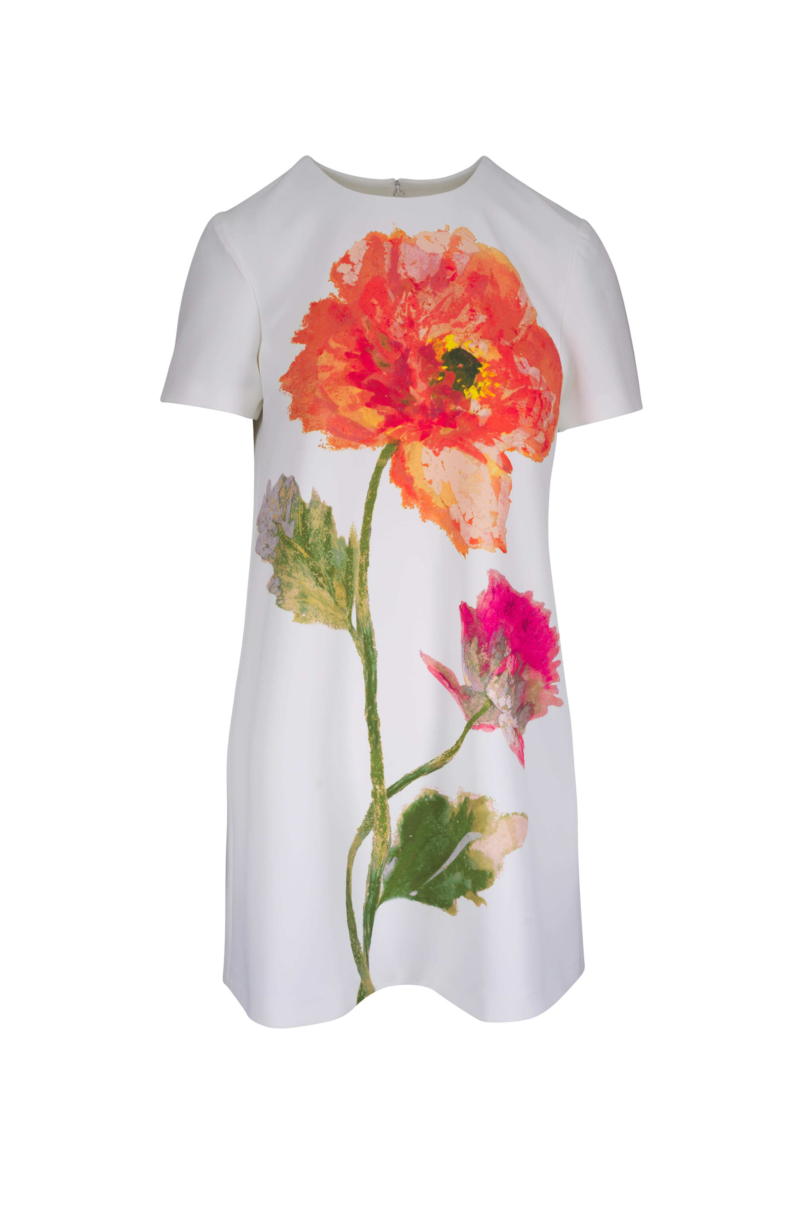 Crew neckline. Concealed back zip. Darts at bust. Made in Italy. Approximately 34" shoulder to hem (measurements taken from size 2). 95% polyester, 5% elastane; lined. Dry clean.