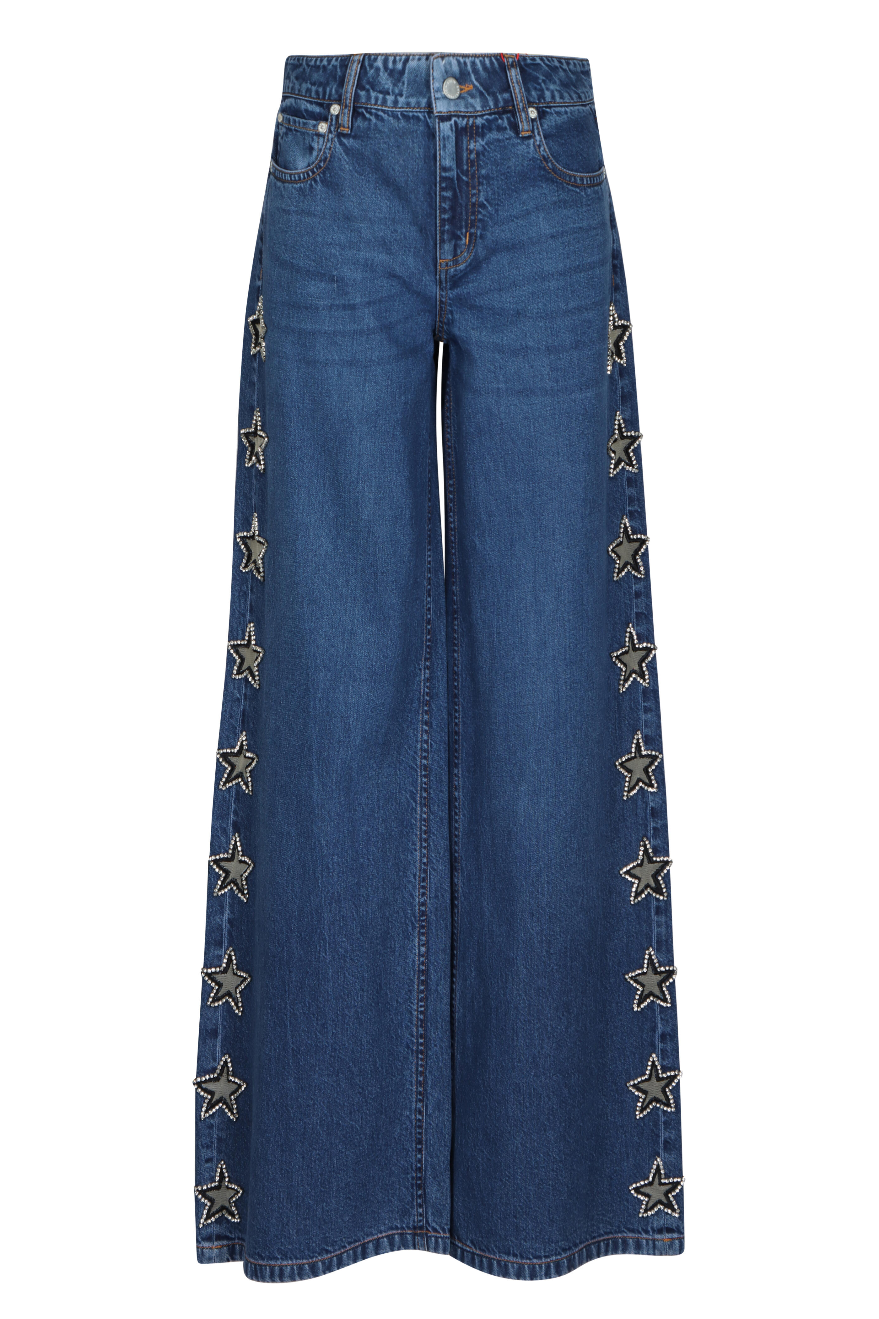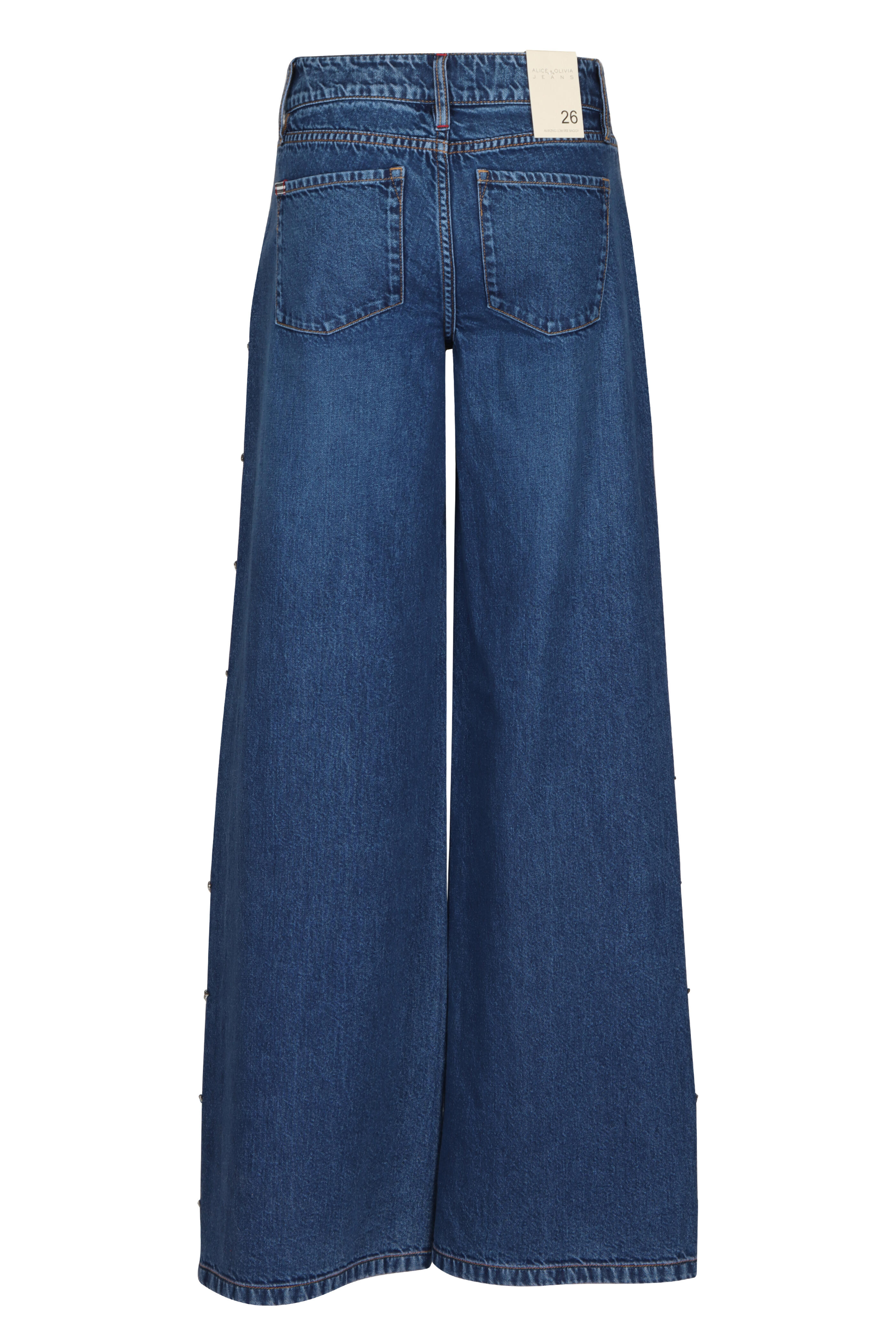 Low rise. Five-pocket style. Full length. Wide legs. Button/zip fly; belt loops. Imported. Approx. 9.3" rise; 34.5" inseam. 100% Cotton.