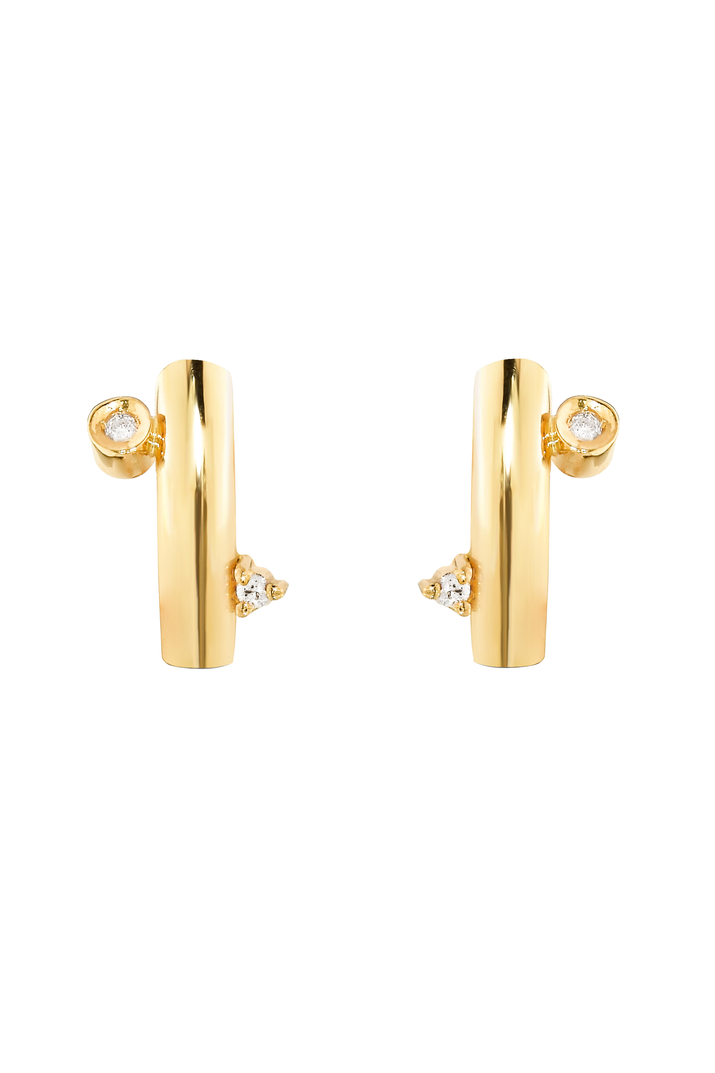 18k gold. Diamond. Bar design. Prong setting. Stud style. Push back post. Made in Brazil.