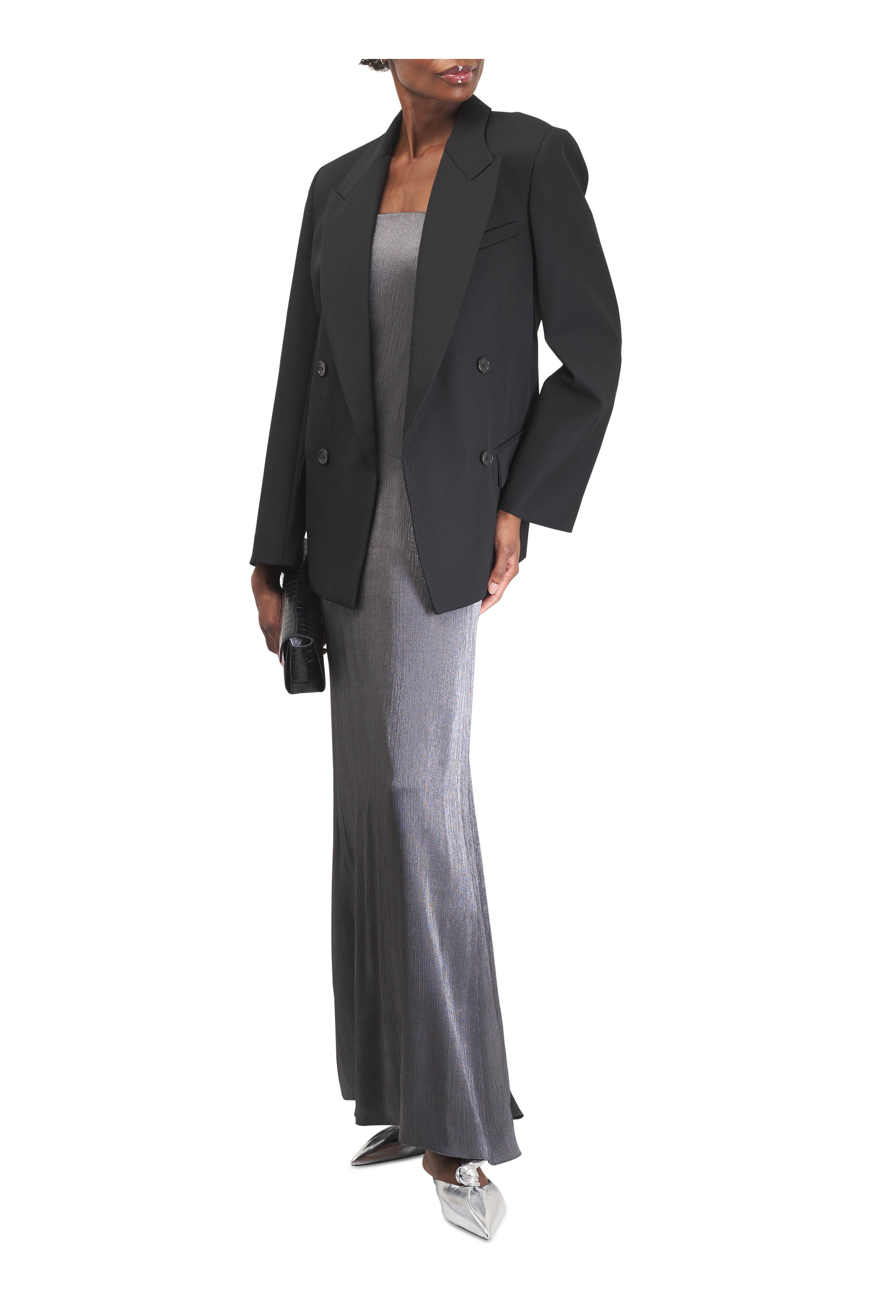 Carolyn's Charcoal Gray Splintered Metallic Gown