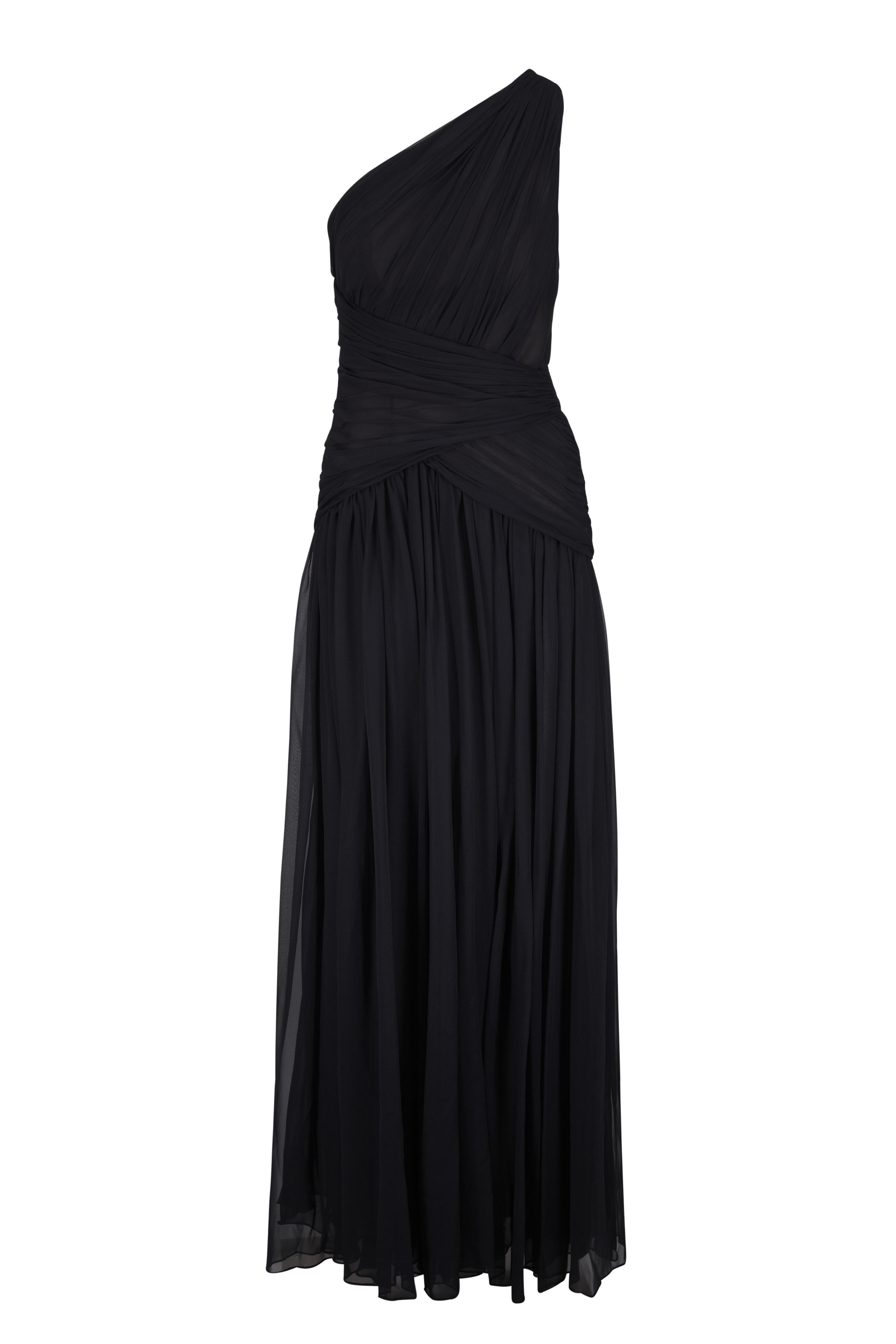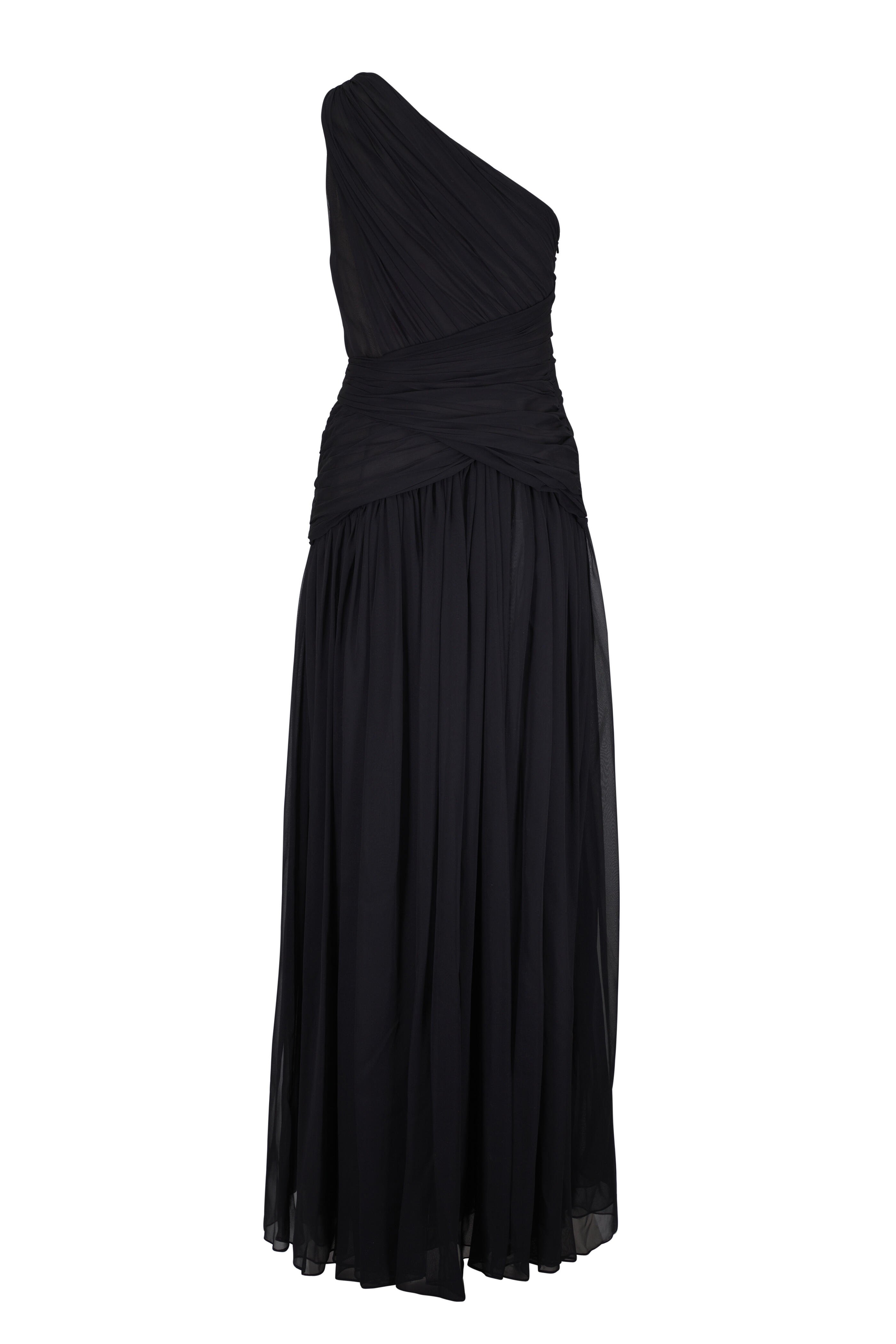 Black Gathered One Shoulder Gown