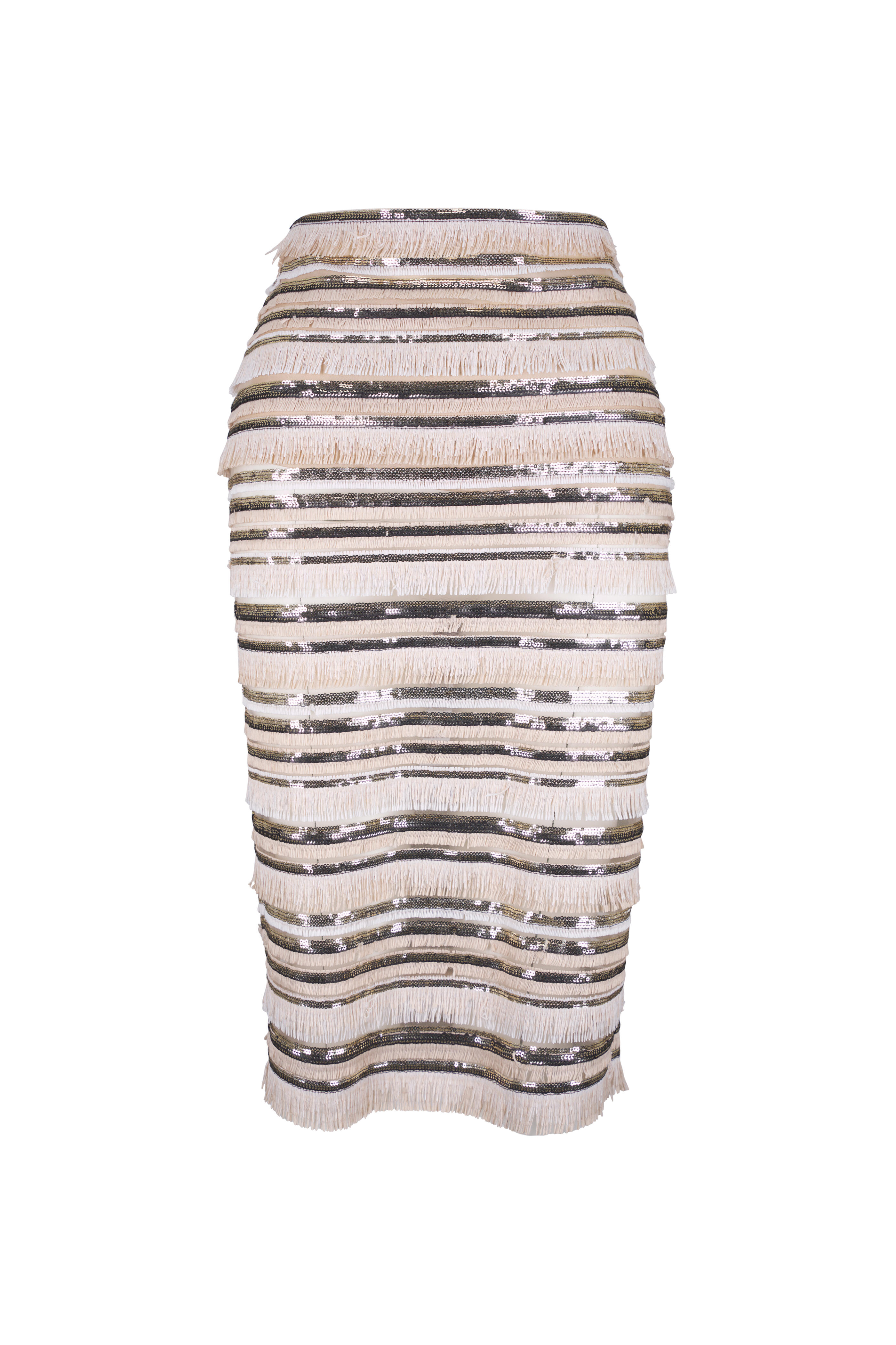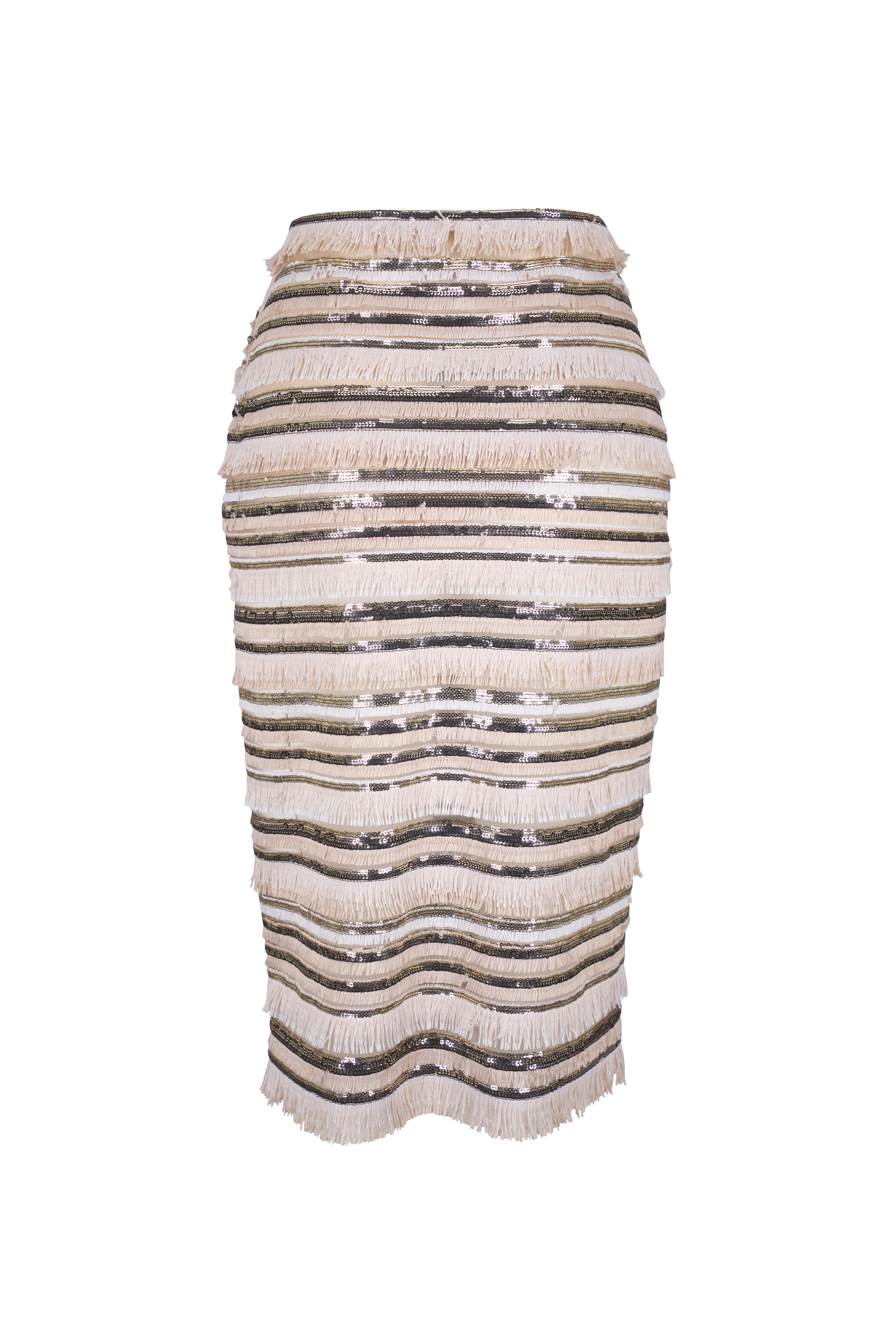 Concealed side zip. Made in Italy. 26" length. 82% polyester, 18% nylon; lined. Dry clean.