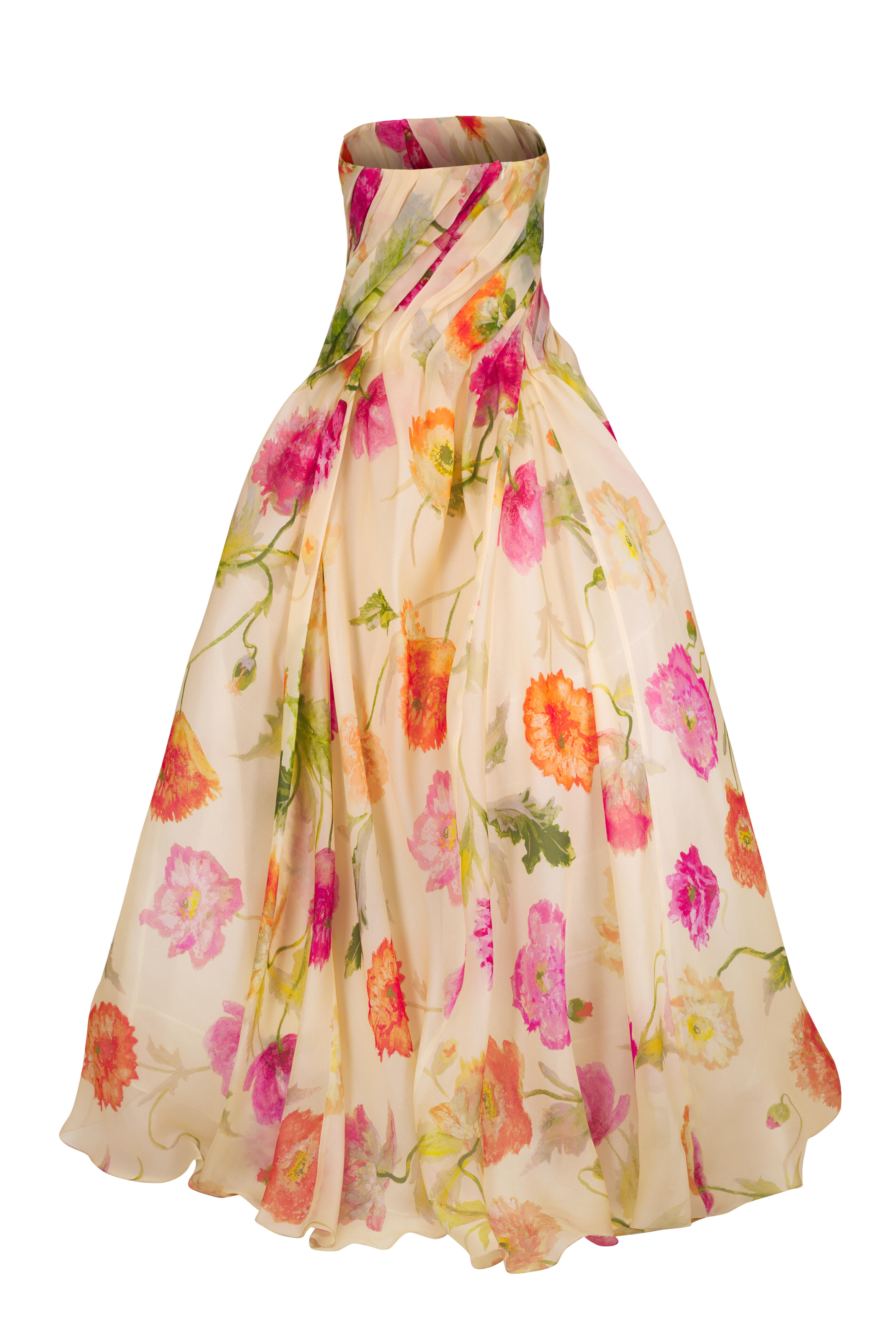 Almond Multi Poppy Print Organza High-Low Gown