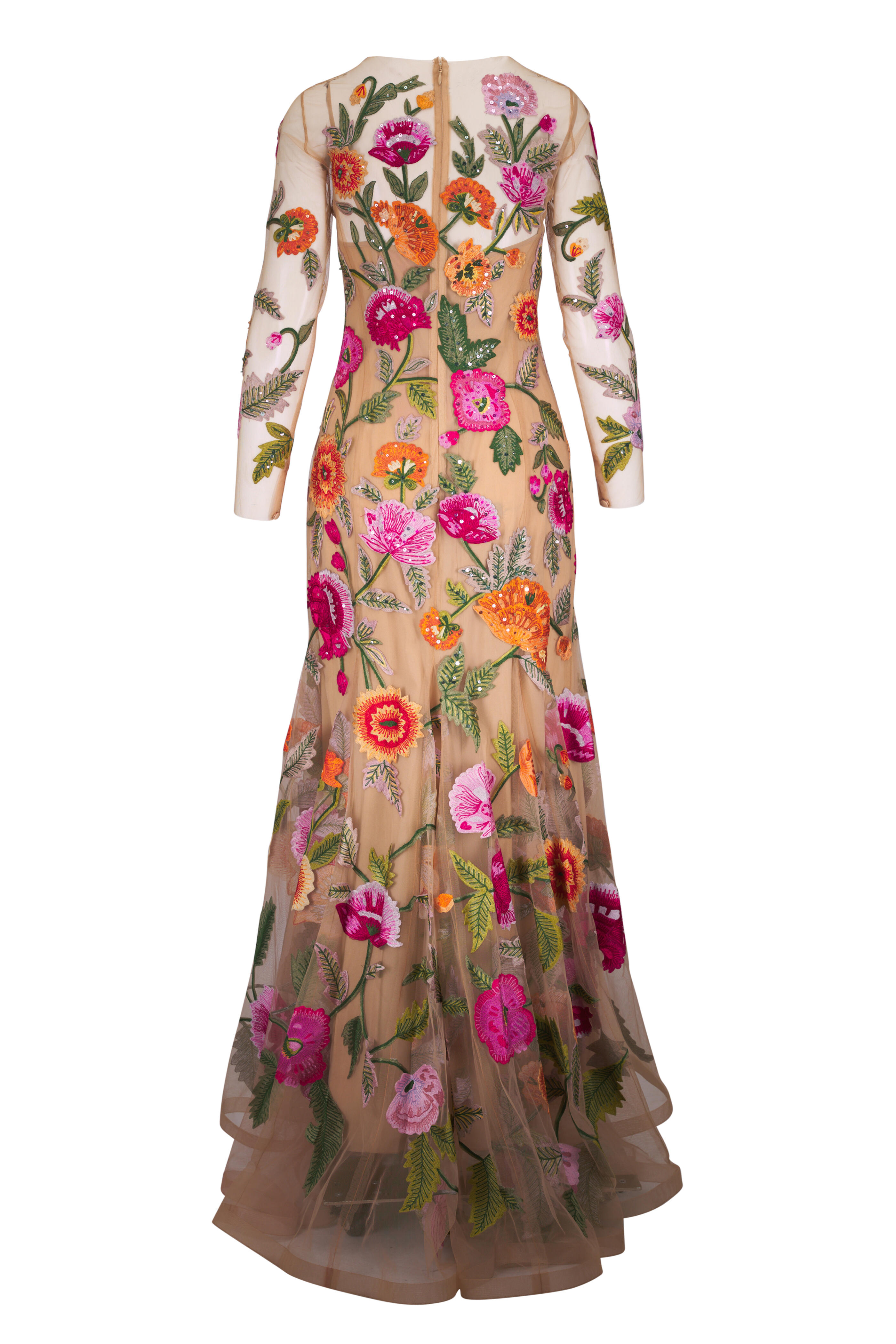 Pink & Orange Multi Floral Embroidered Tulle Gown