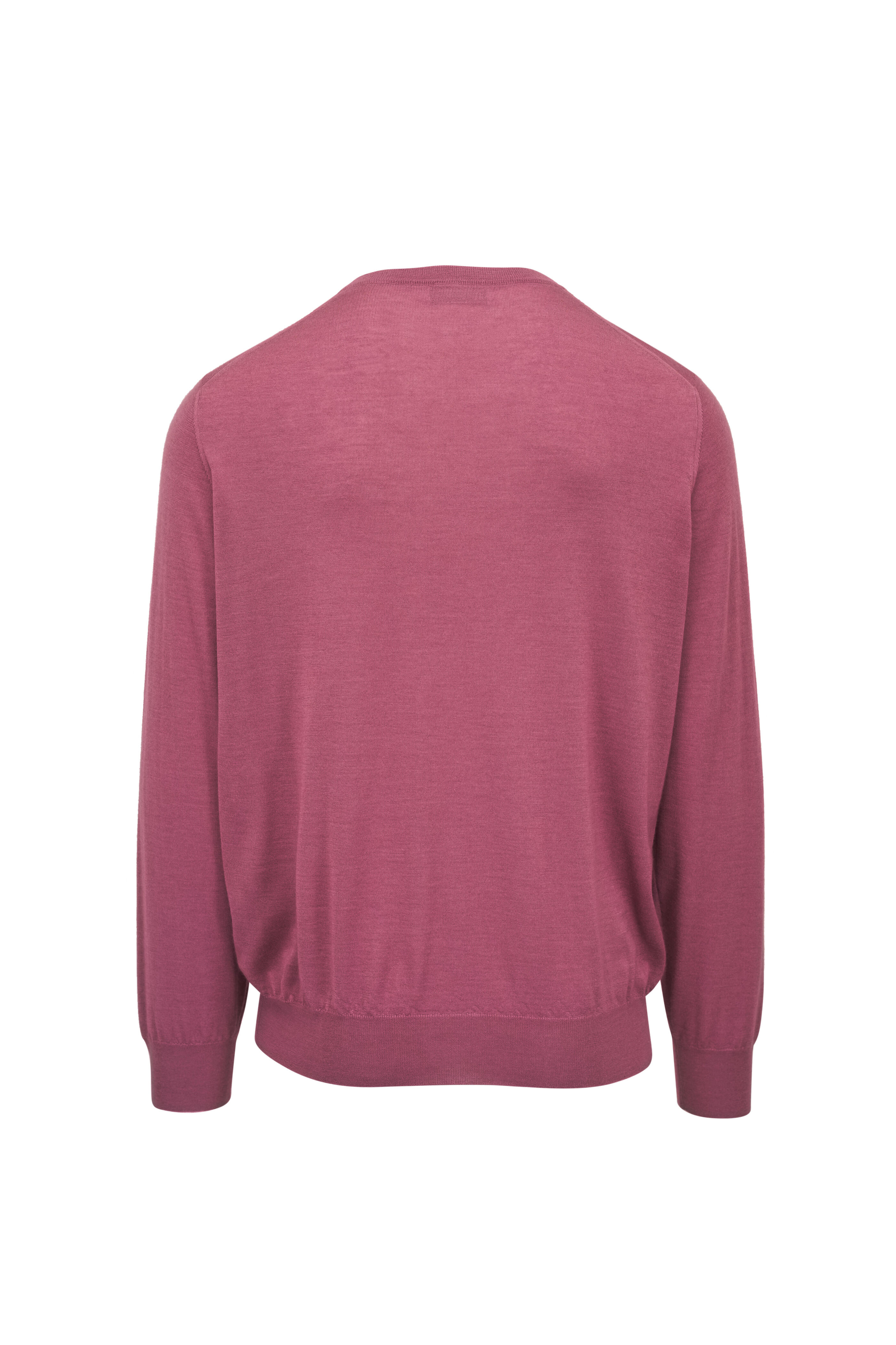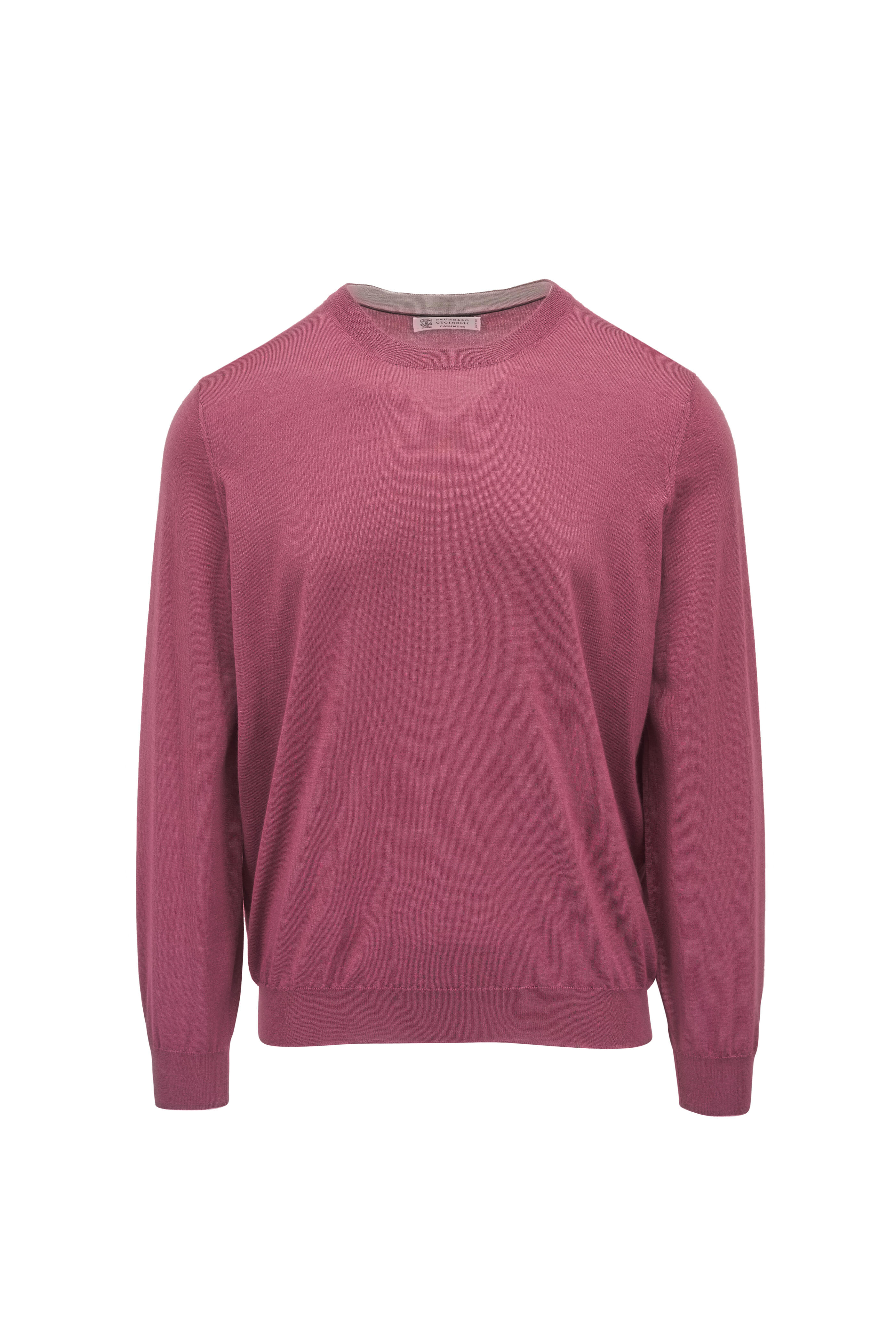 Crew neckline. Ribbed trims. Straight hem. Made in Italy. 70% cashmere, 30% Silk. Dry clean.