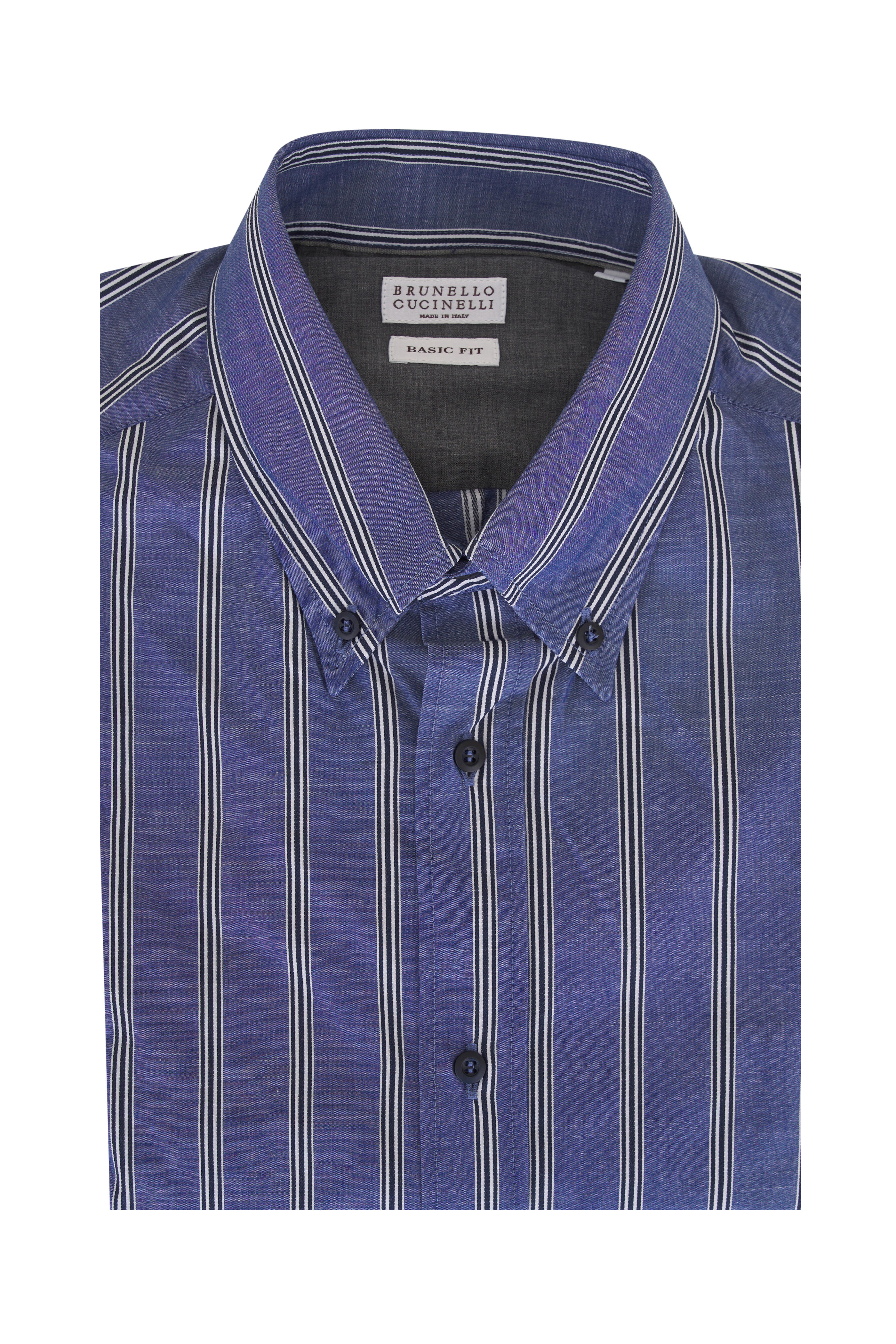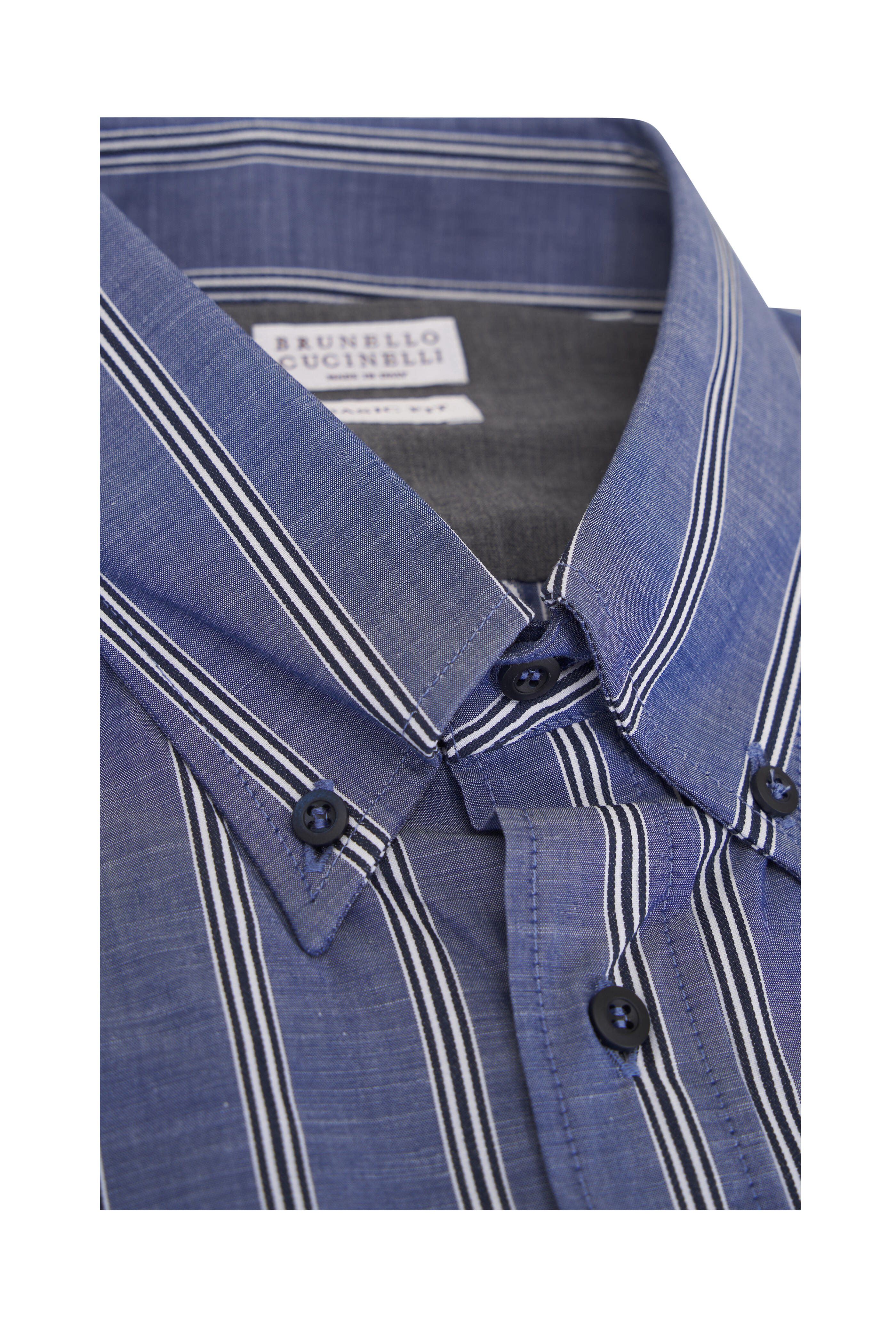 Button-down pointed collar. Front button placket. Two-button square cuffs. Made in Italy. 100% cotton. Dry clean.