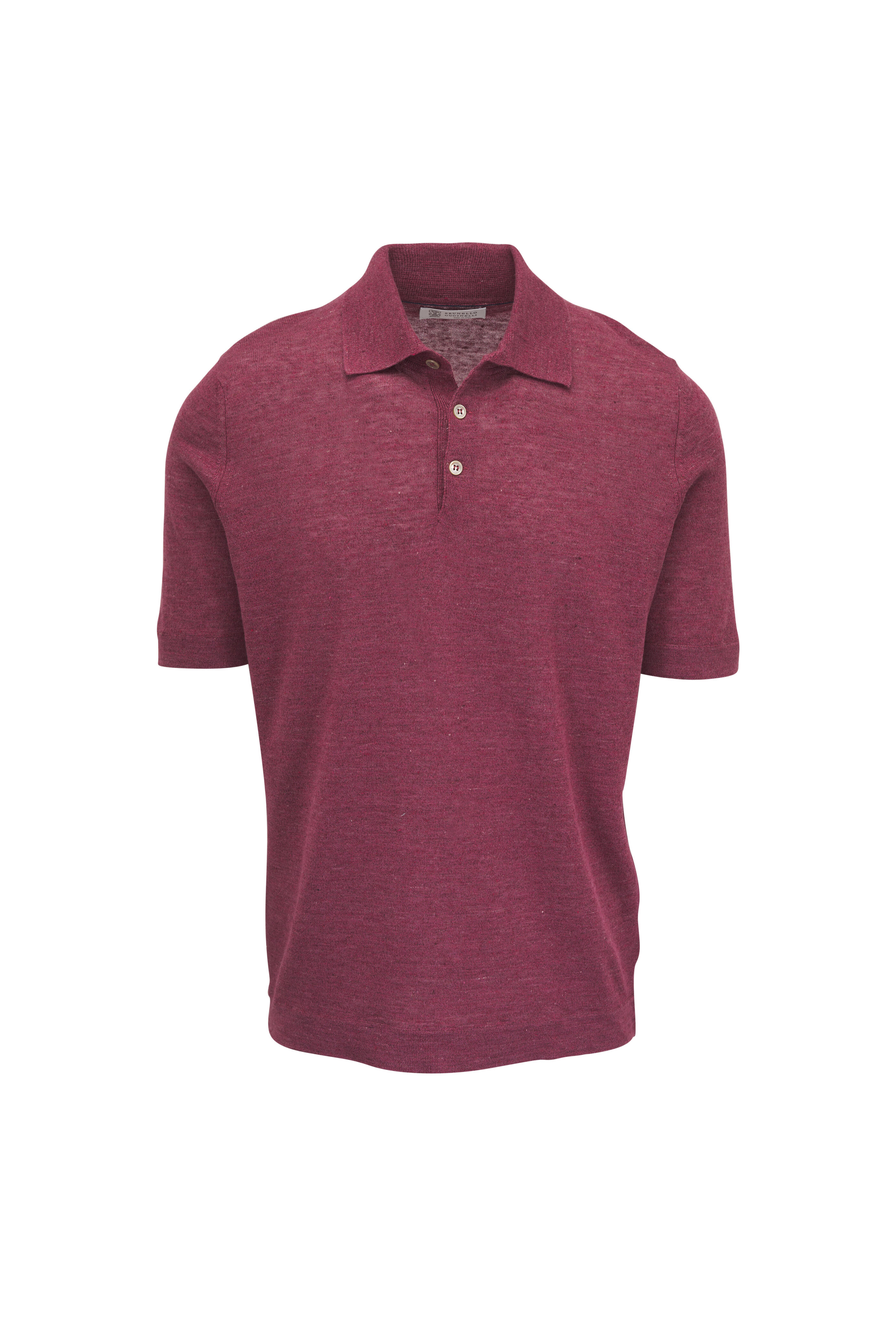 Spread collar. Three-button placket. Pullover style. Ribbed trims. Straight hem. Made in Italy. Shoulder to hem 29" (size L). 77% linen, 23% cotton. Hand wash.