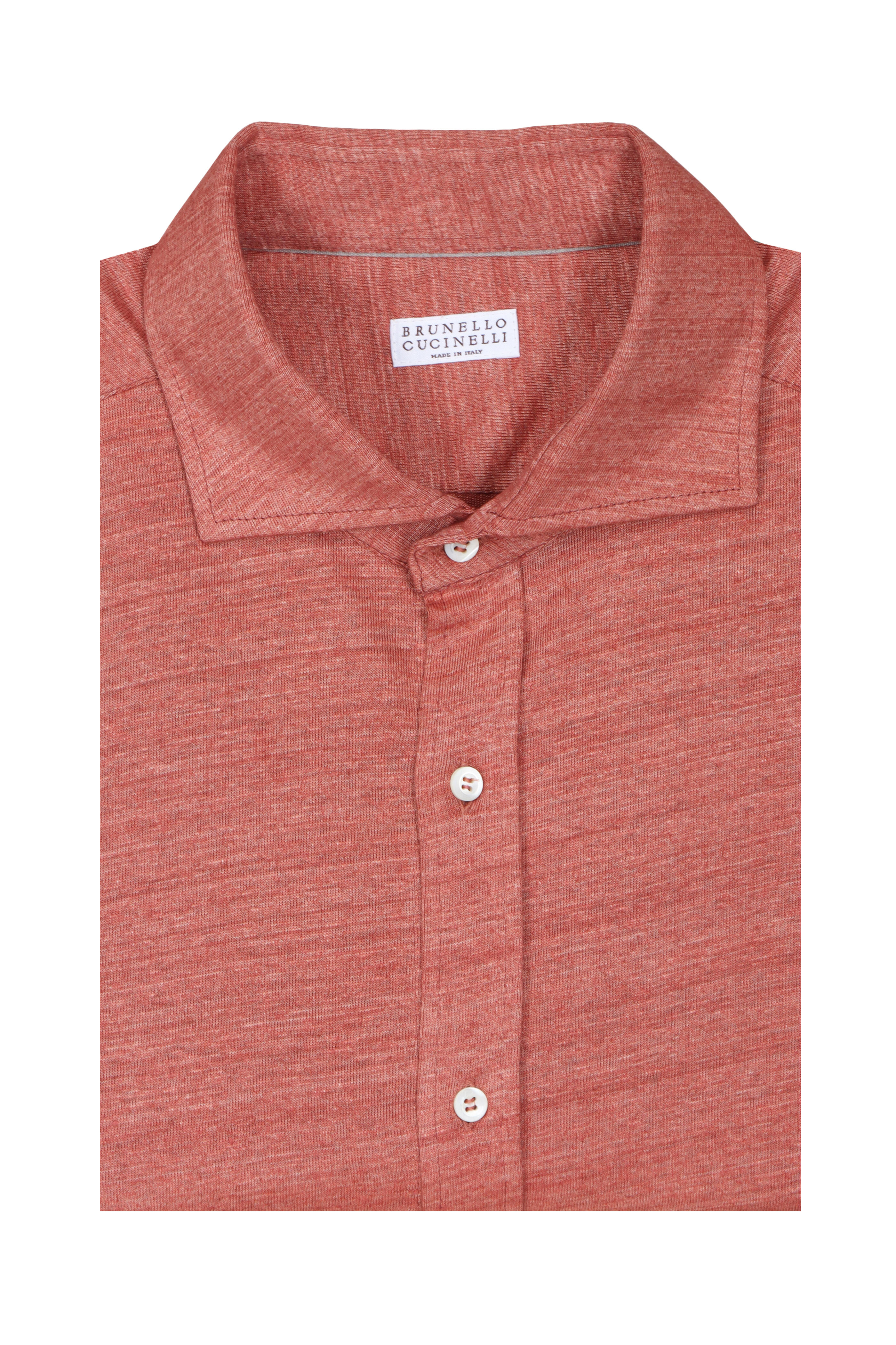 Spread collar. Double button straight cuffs. Made in Italy. 74% Linen, 26% cotton. Dry clean.