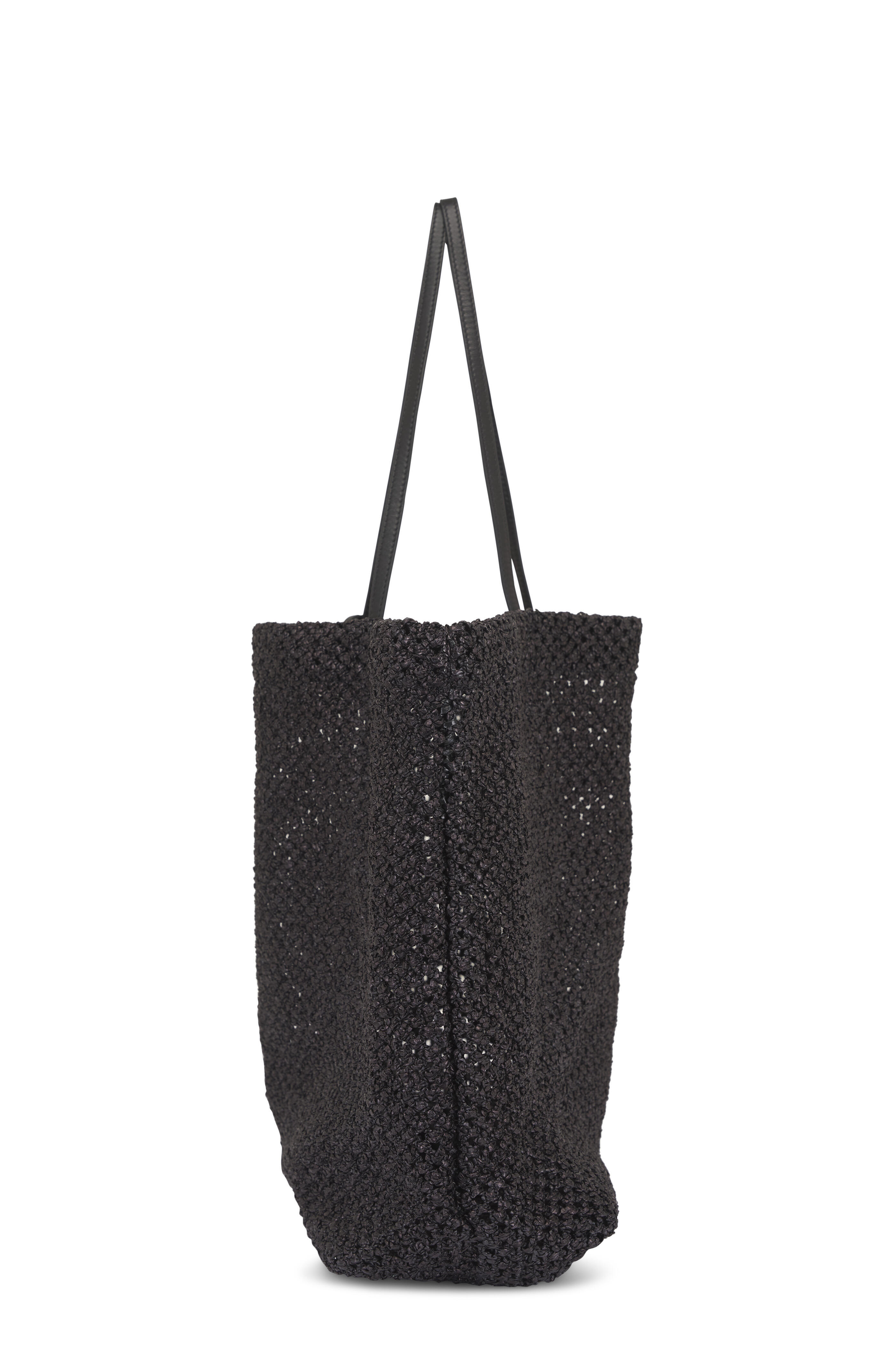 Barn Black Medium Leather-Trimmed Raffia Tote