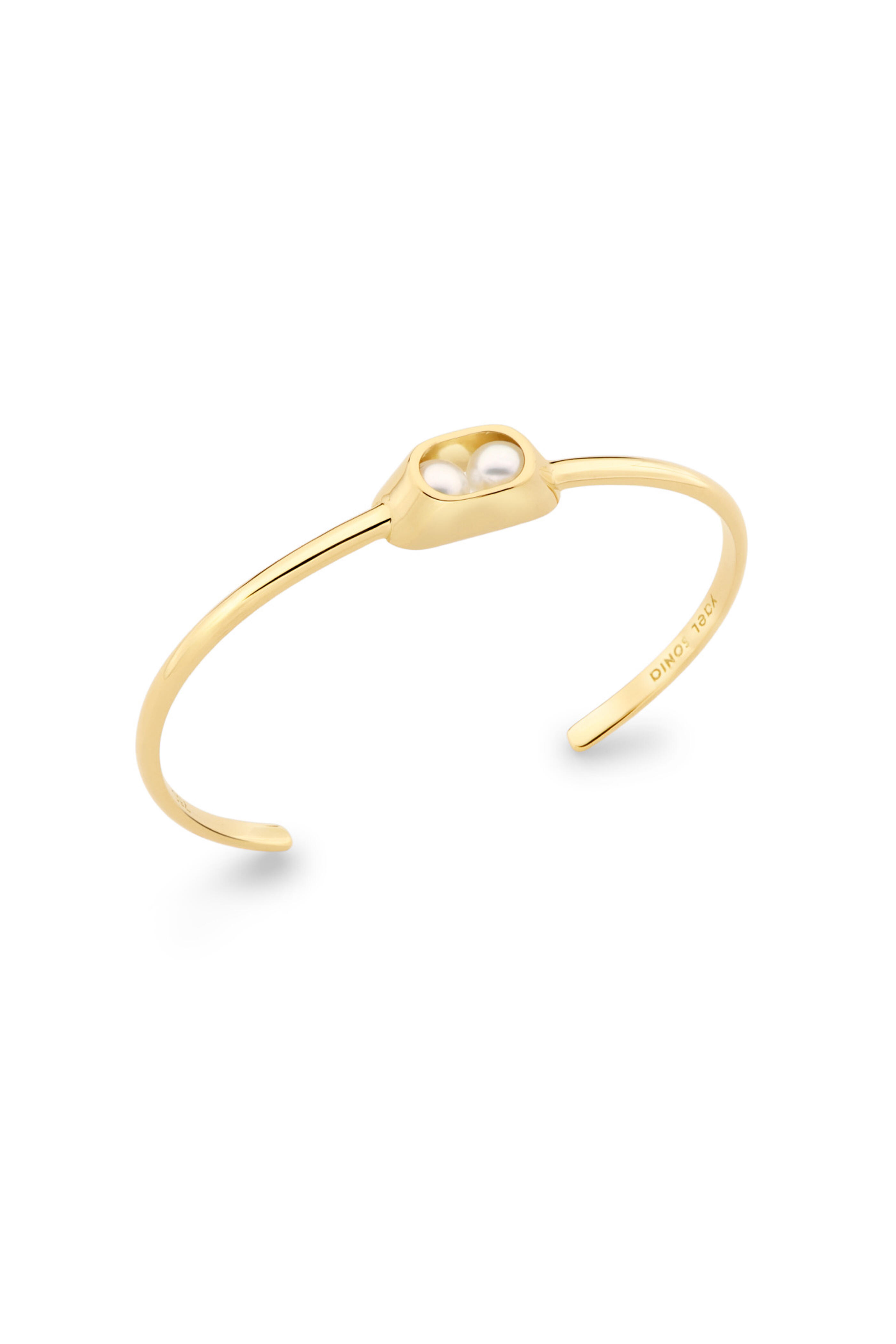 18k yellow gold. Akoya pearl. Two Akoya pearls side-by-side. Cuff style. Ellipse collection. One of a kind. Made in New York. Diameter: 5.5 cm.