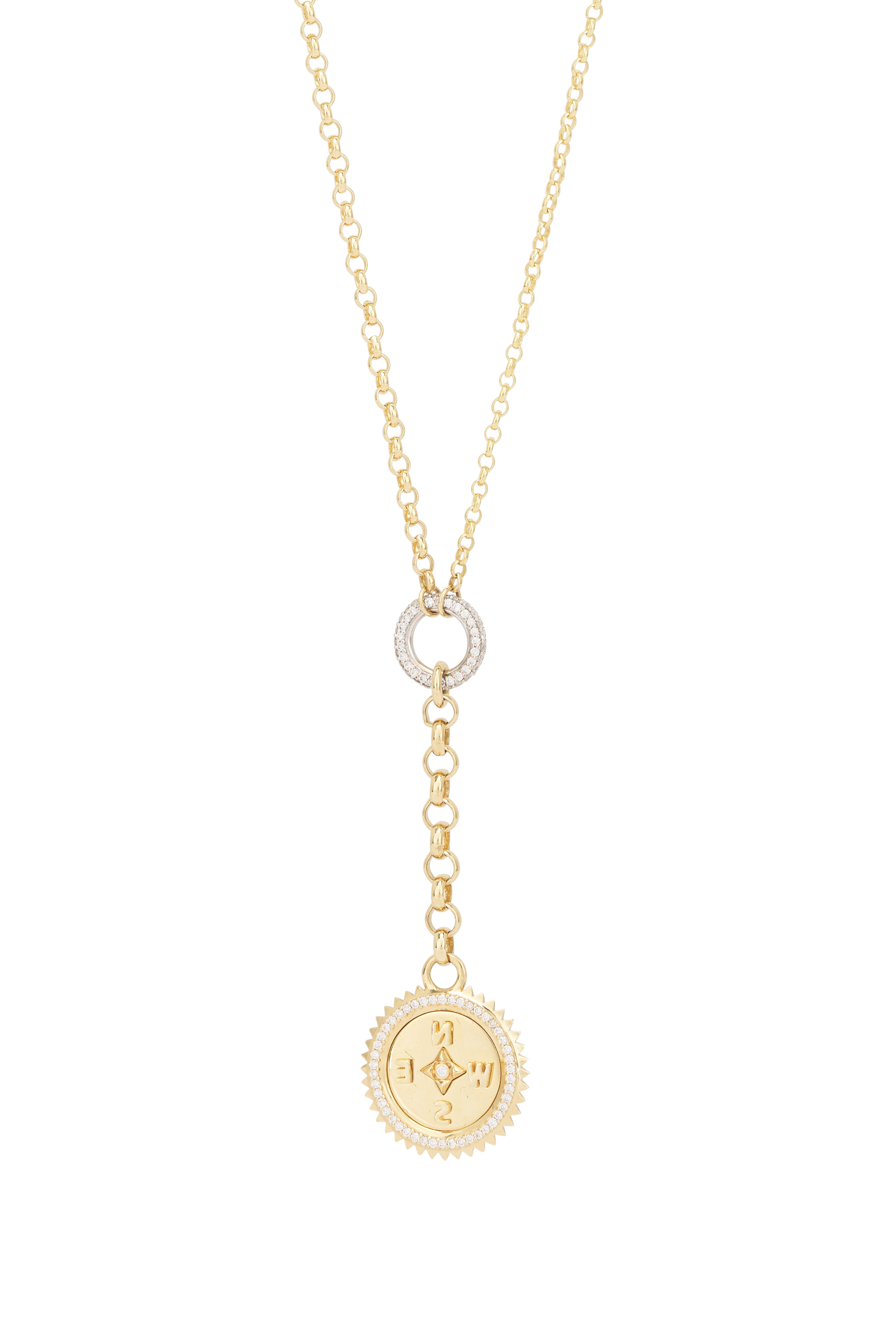 18k Yellow Gold Pave Diamond Compass Necklace