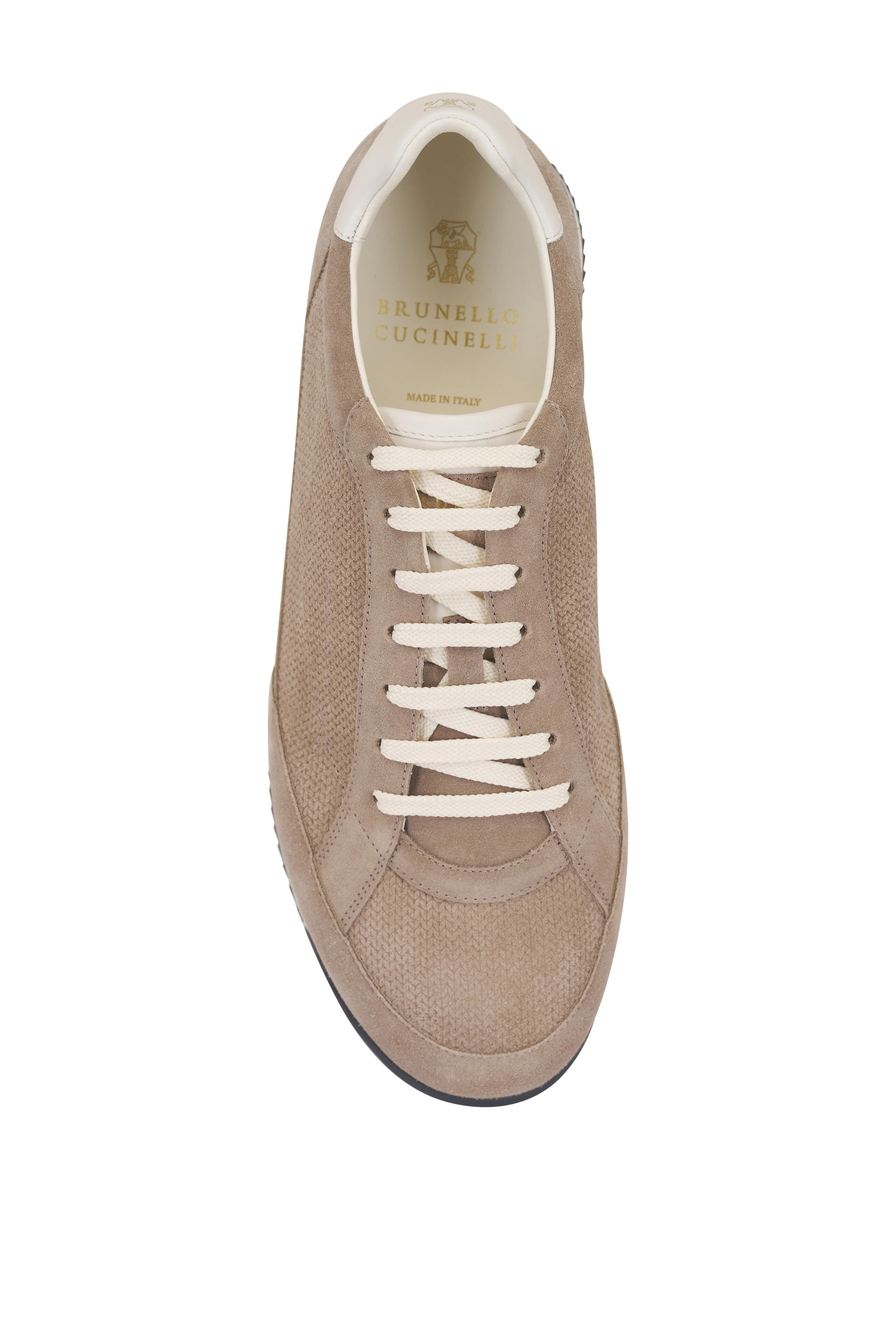 Suede upper. Round toe. Lace up closure. Leather lining and insole. Rubber sole. Made in Italy.