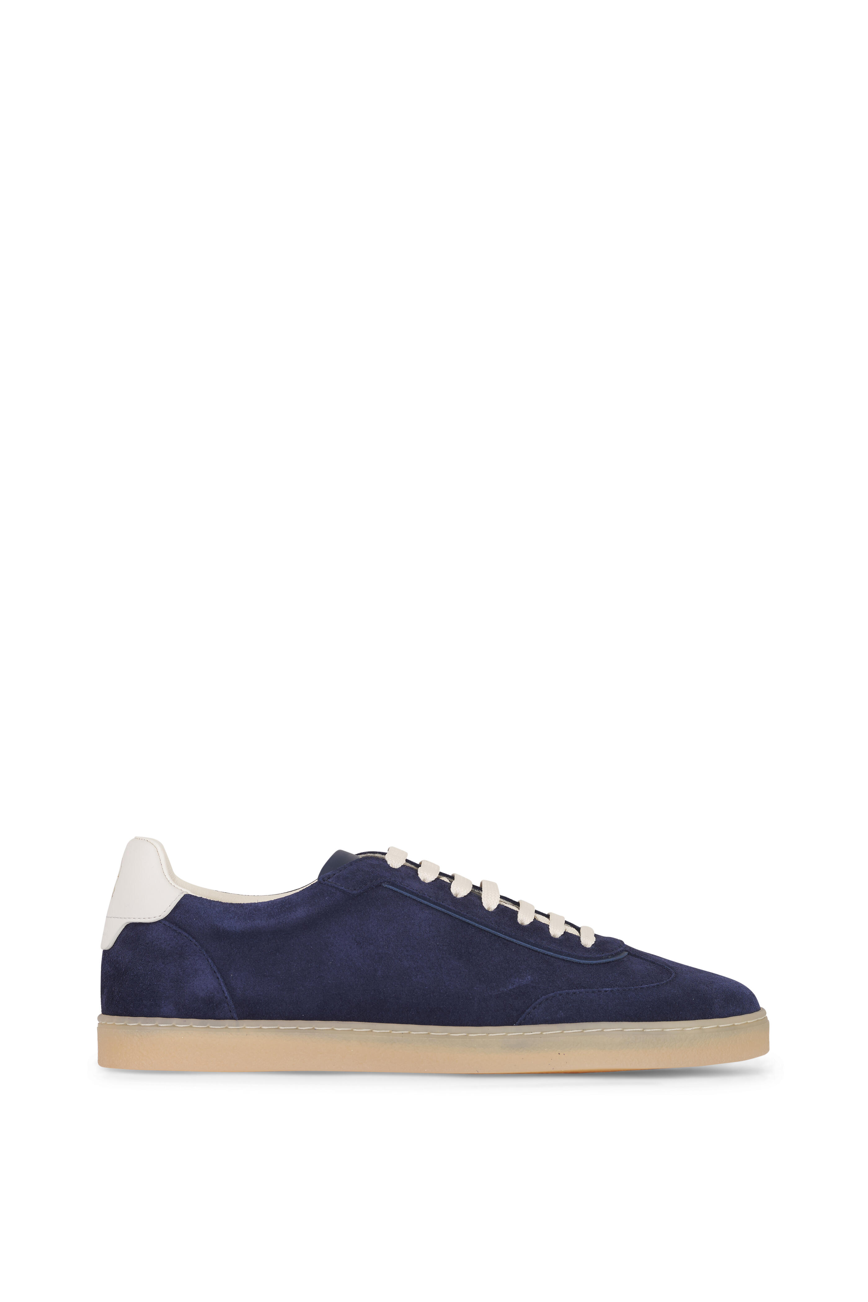 Suede upper. Round toe. Lace up closure. Leather heel with logo. Leather lining; cushioned insole. Rubber sole. Made in Italy.