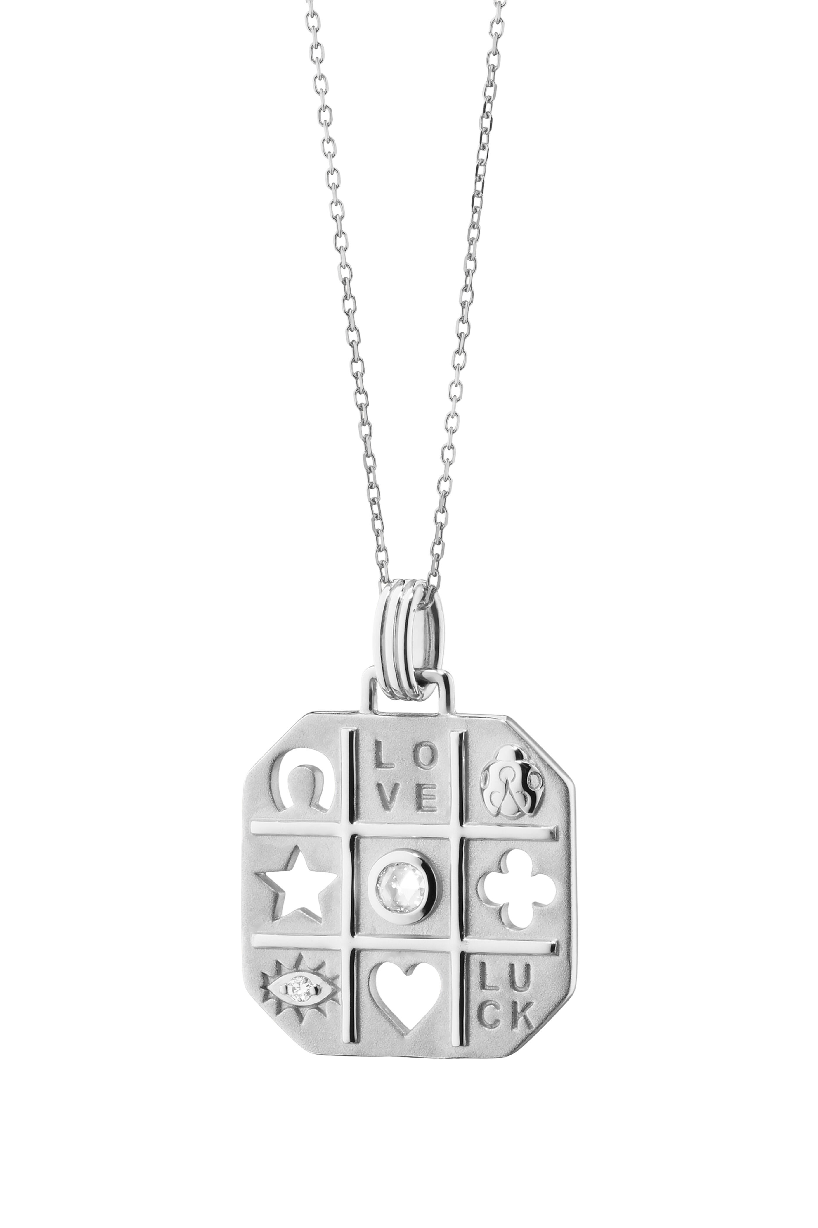 Sterling Silver. White Sapphire. Engraved Symbol. 18".