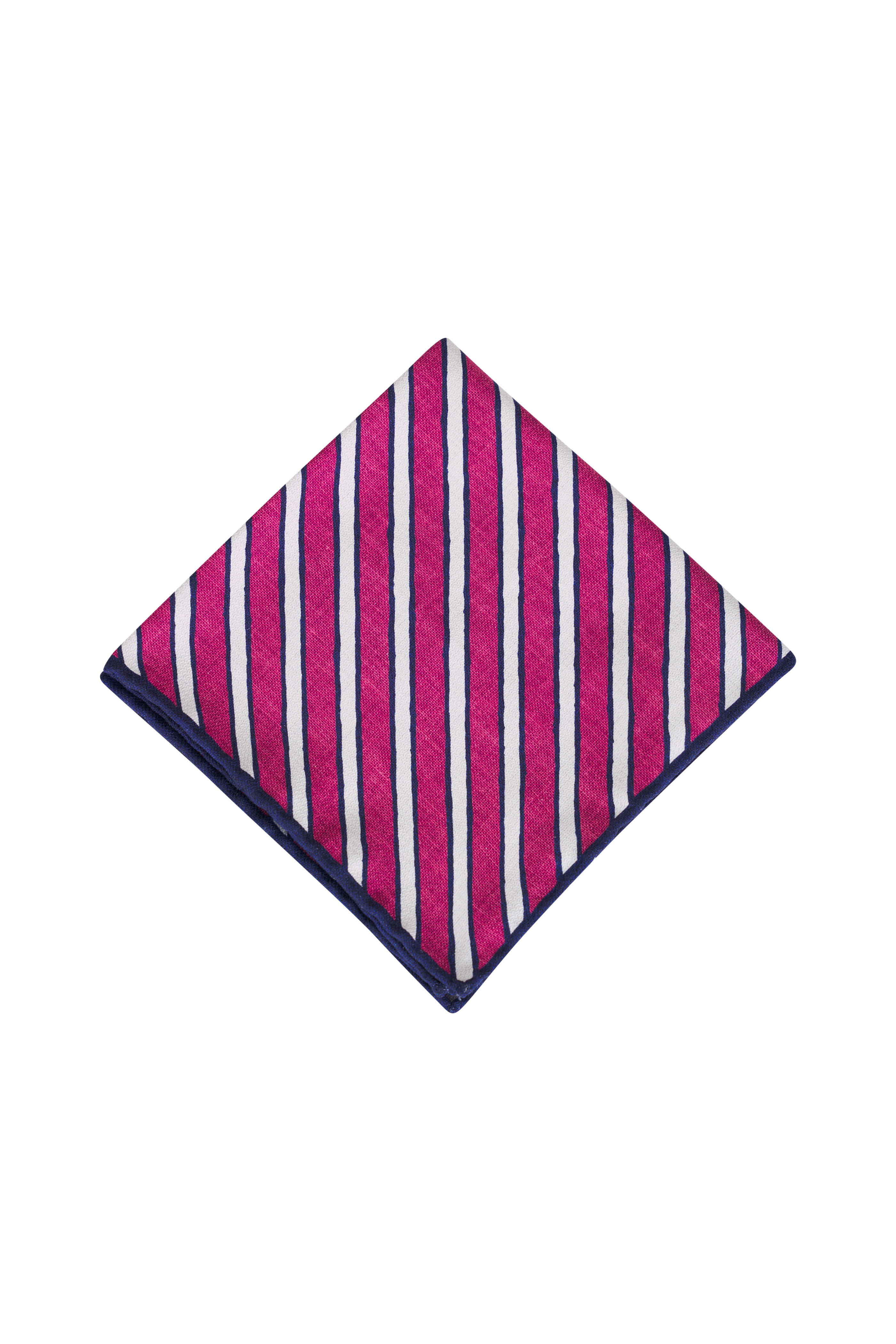 Red, Navy & White Stripe Silk Pocket Square