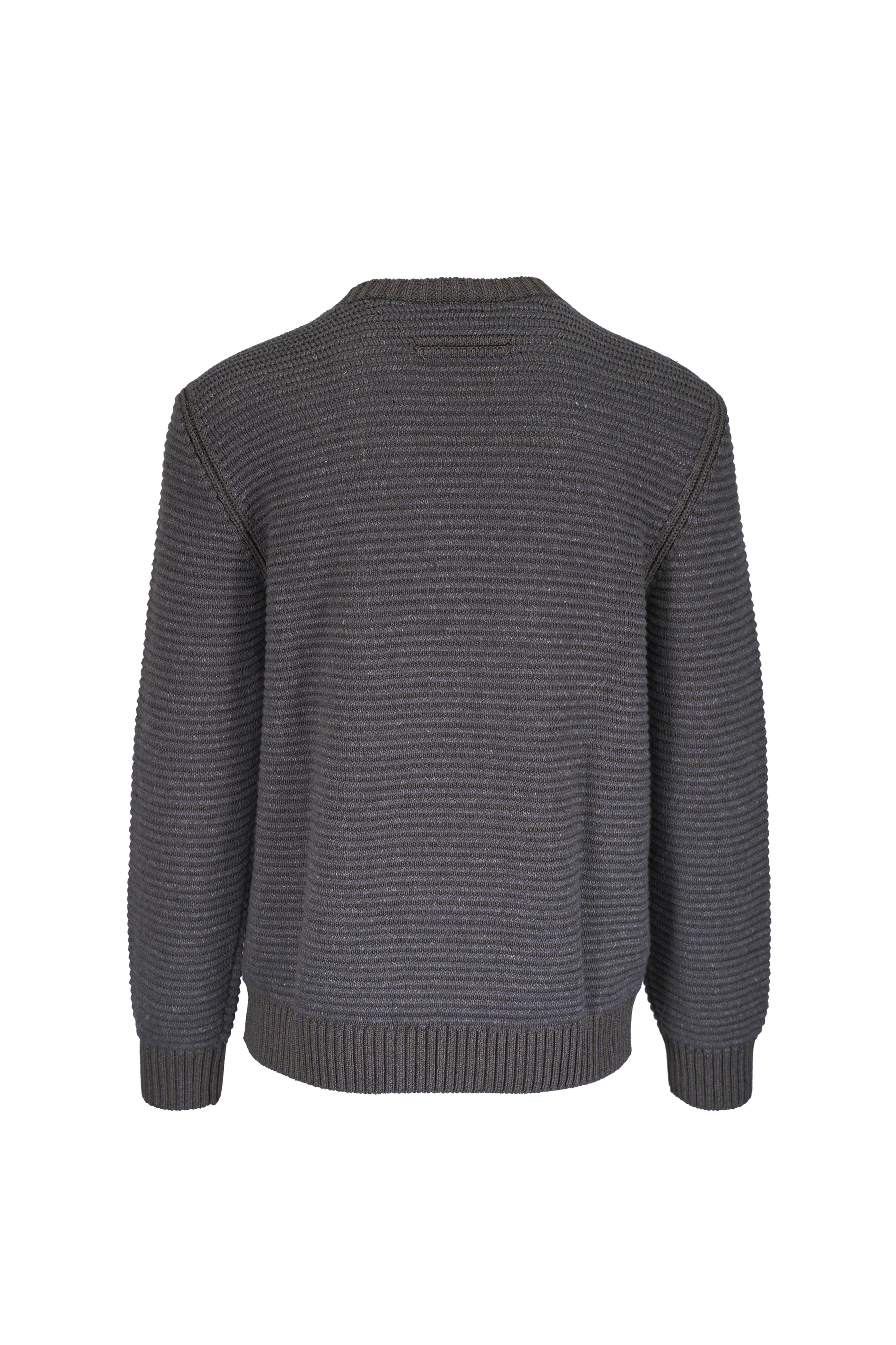 Crew neckline. Pullover style. Ribbed trims & knit. Straight hem. Made in Italy. Shoulder to hem 30" (size L). 34% silk, 26% linen, 25% cashmere, 15% cotton. Hand wash.