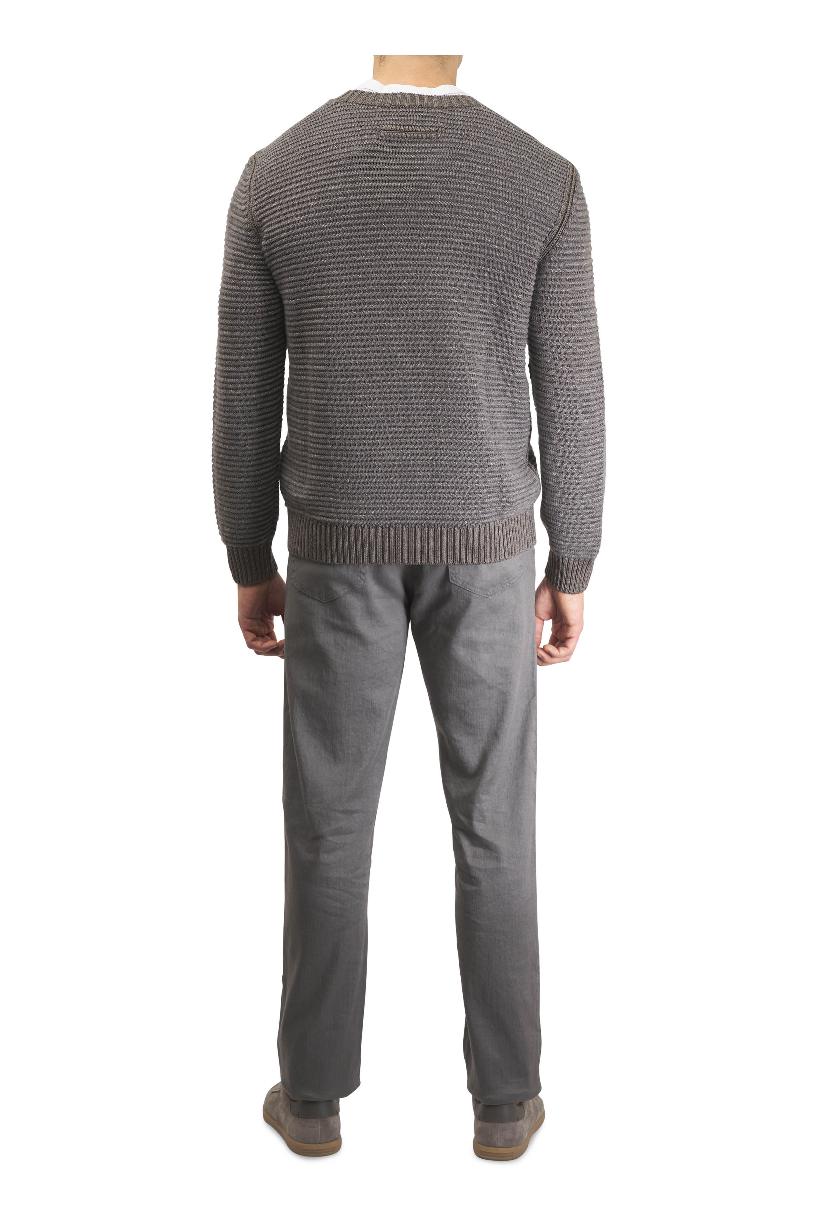 Brown Silk, Linen & Cashmere Jacquard Sweater