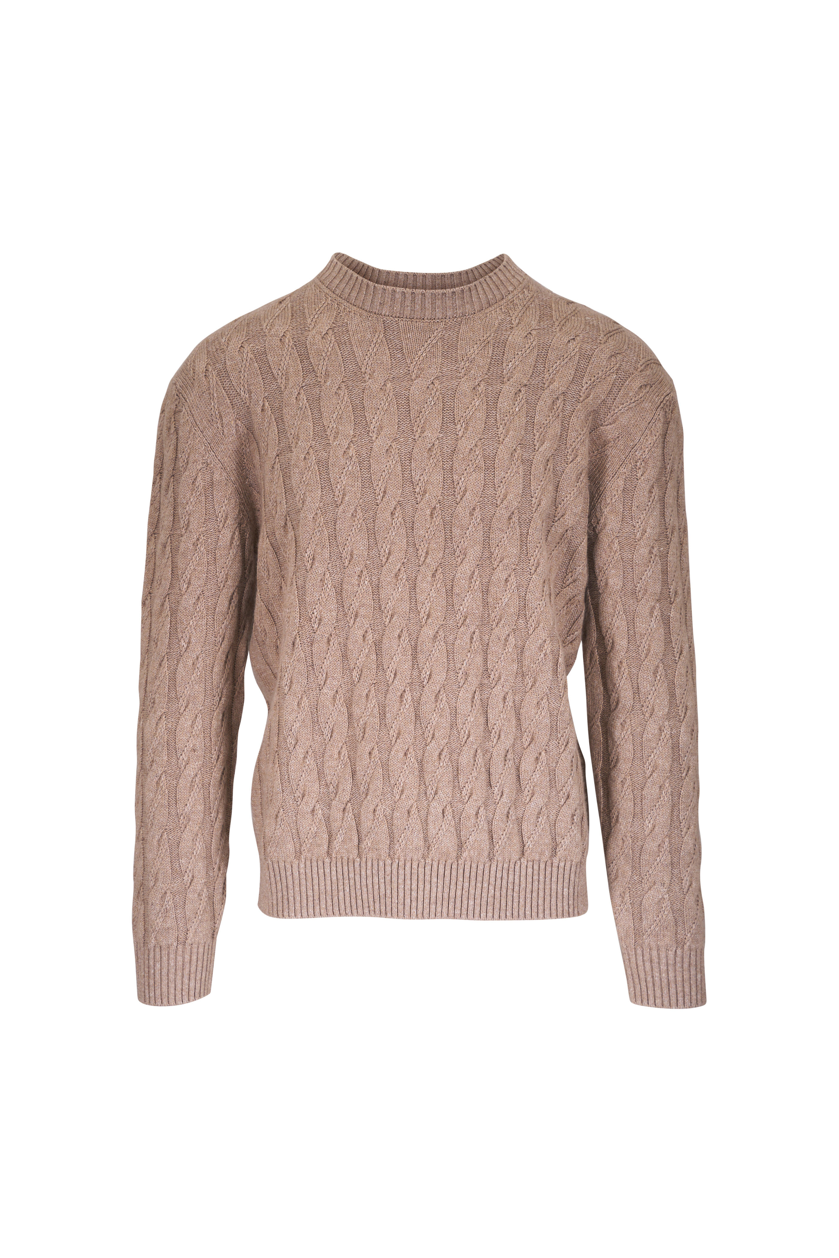 Beige Linen, Cashmere & Silk Crewneck Sweater