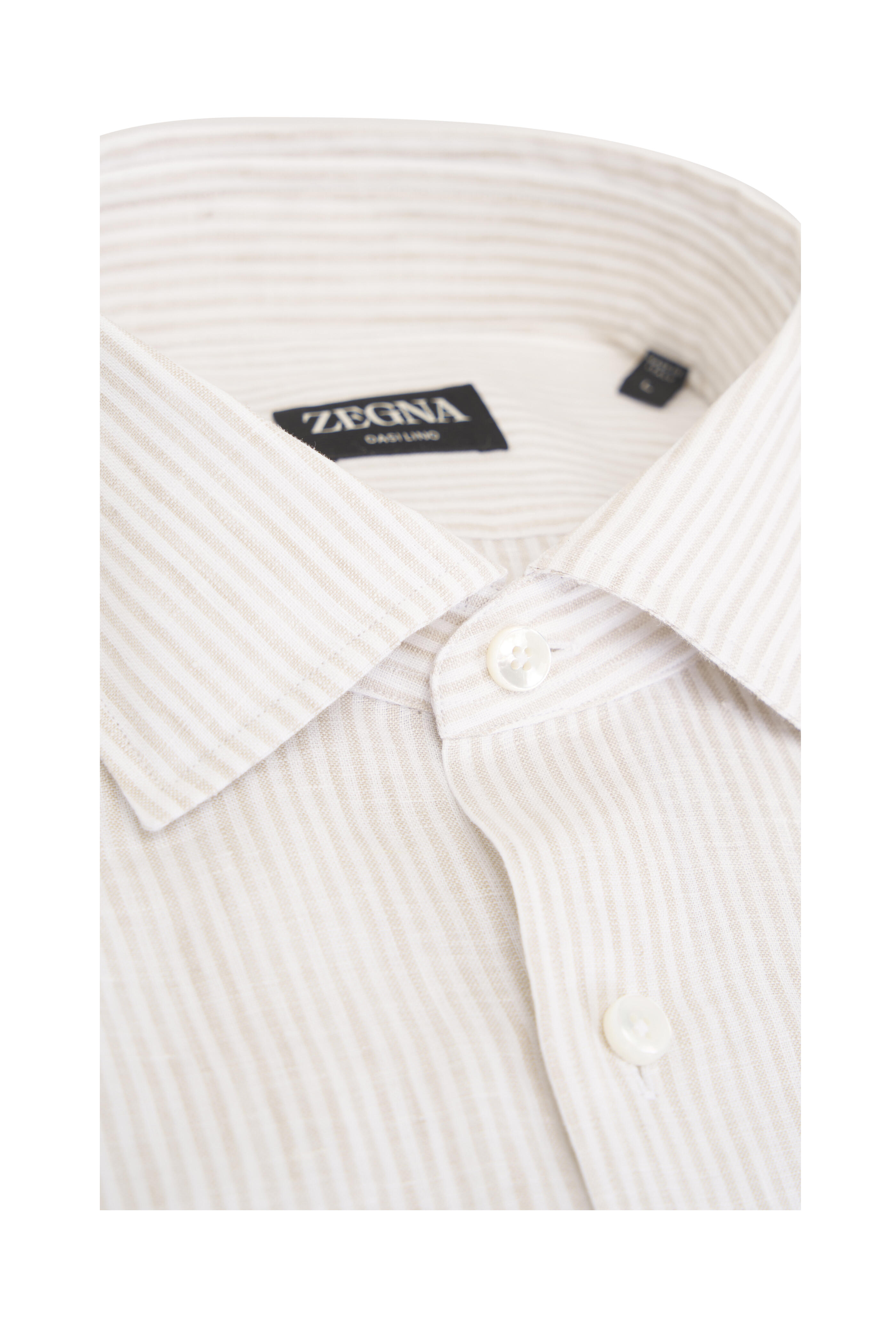Oasi Lino White & Biege Stripe Sport Shirt