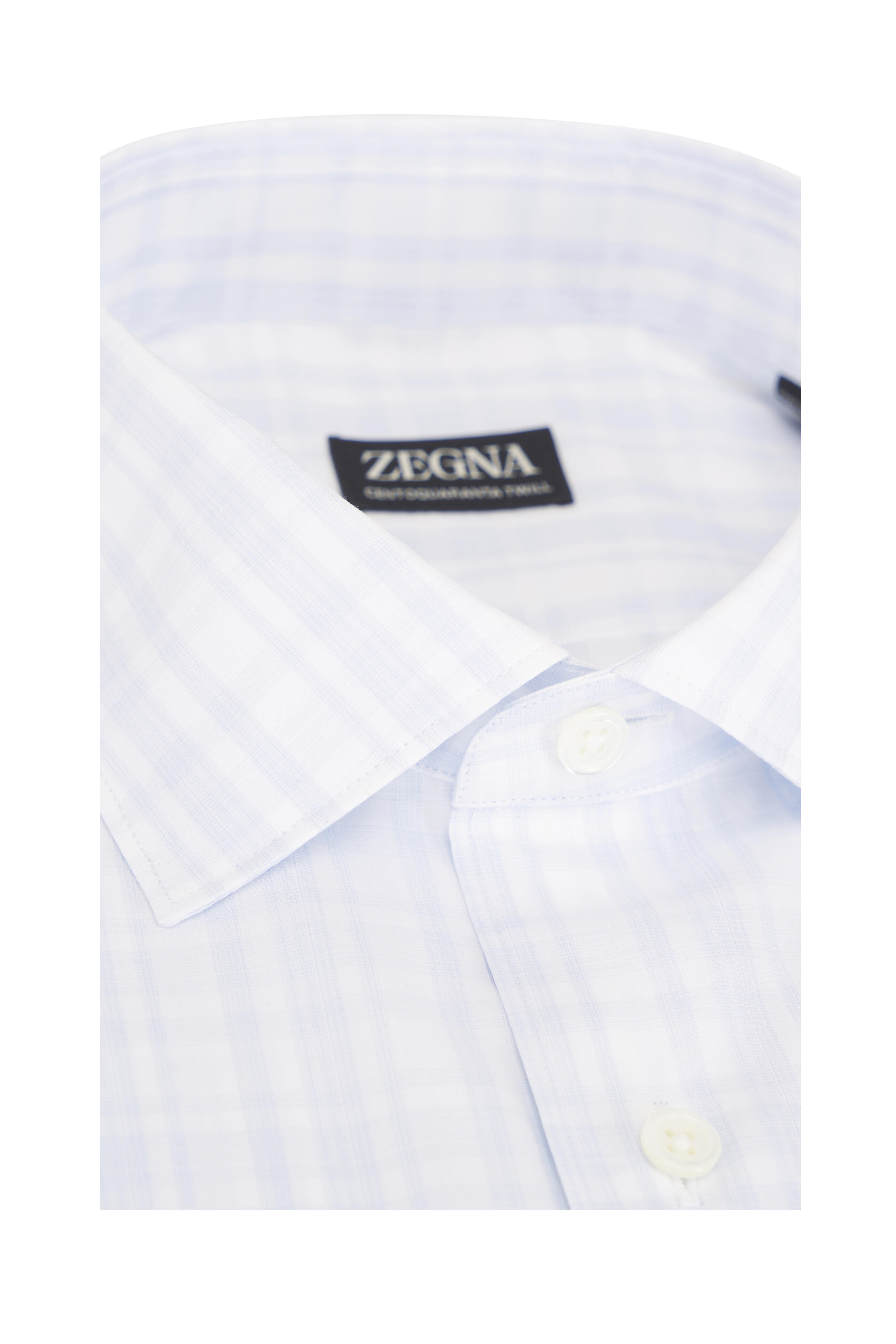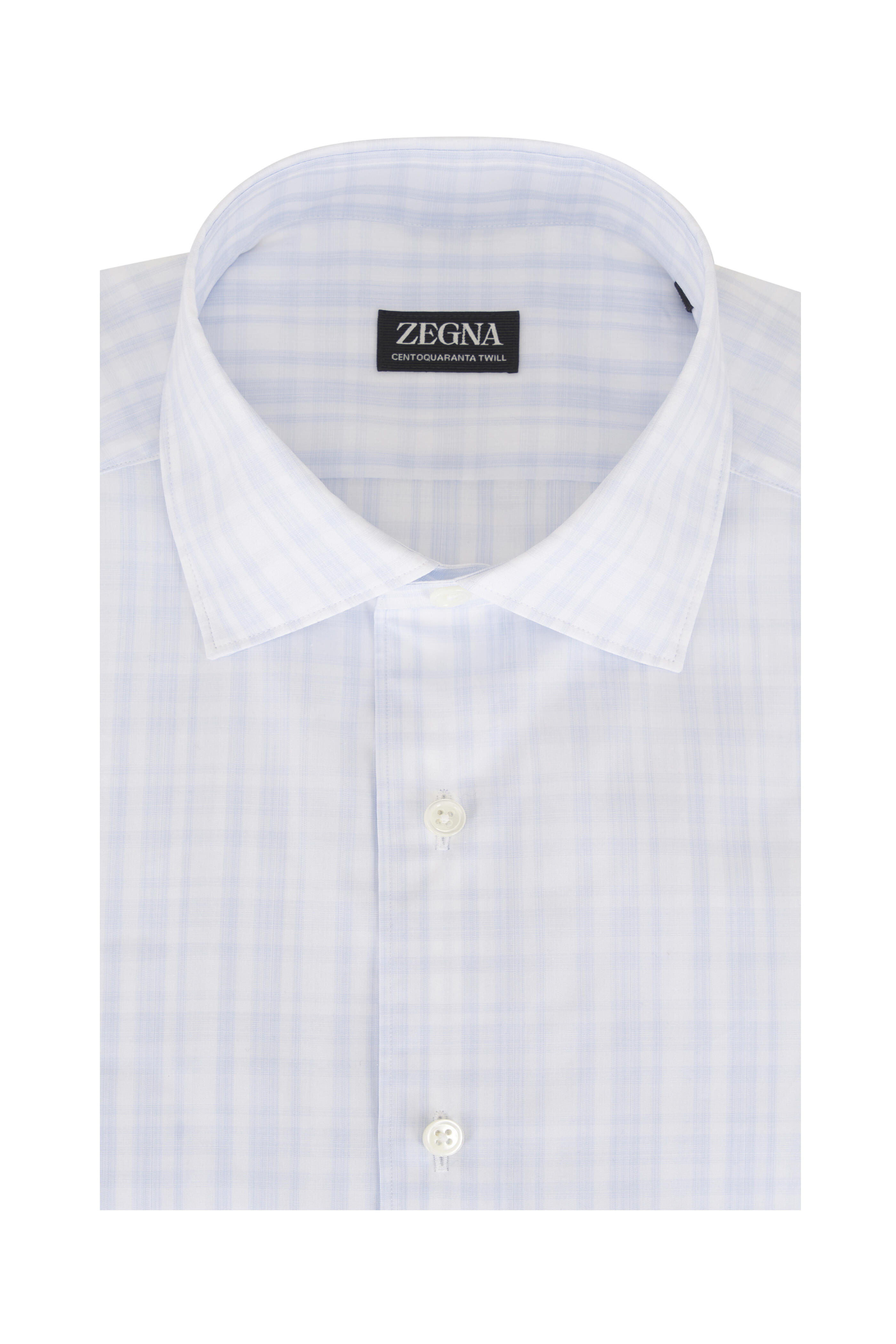 Spread collar. Front button placket. Single button barrel cuffs. Made in Italy. 100% cotton. Dry clean.