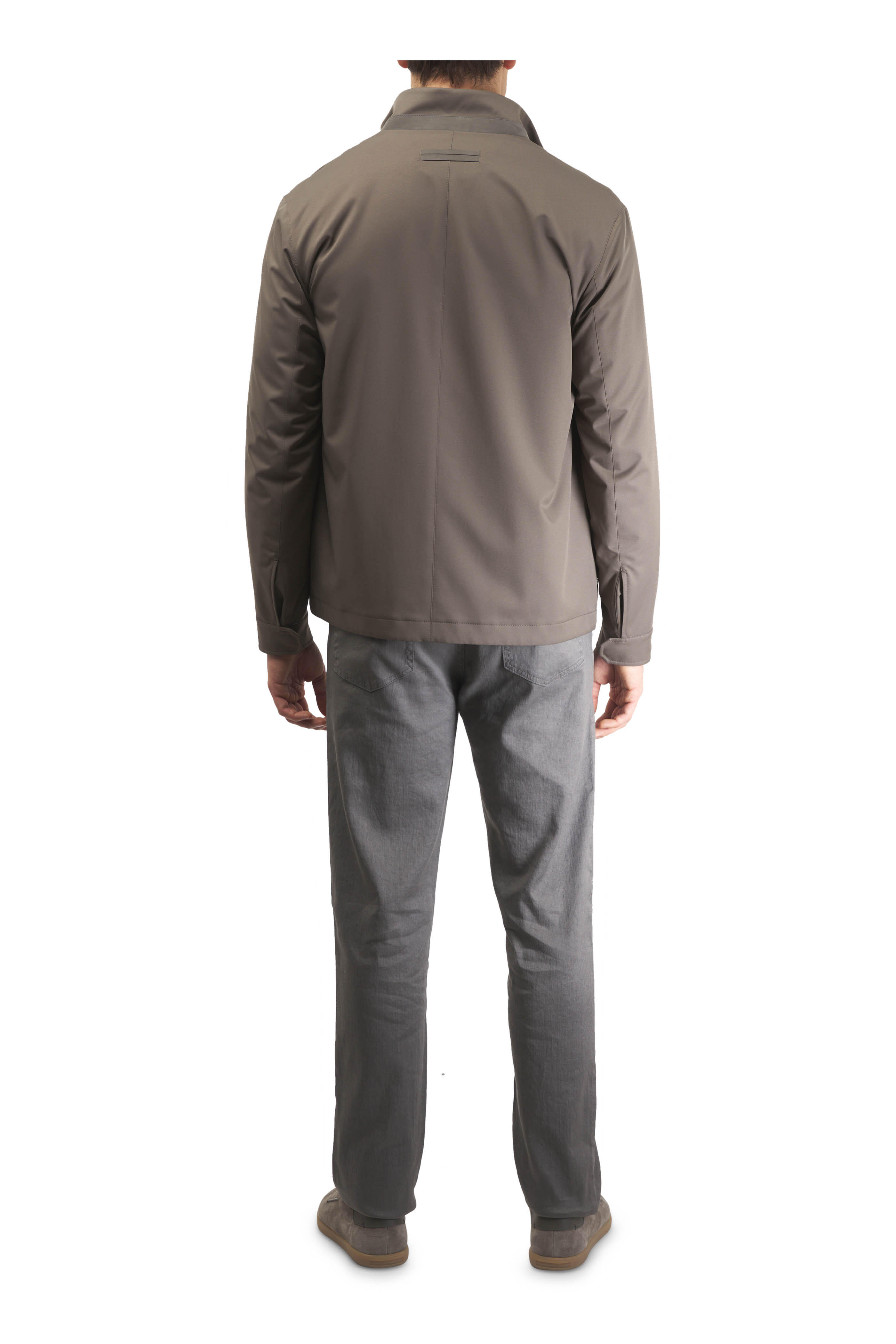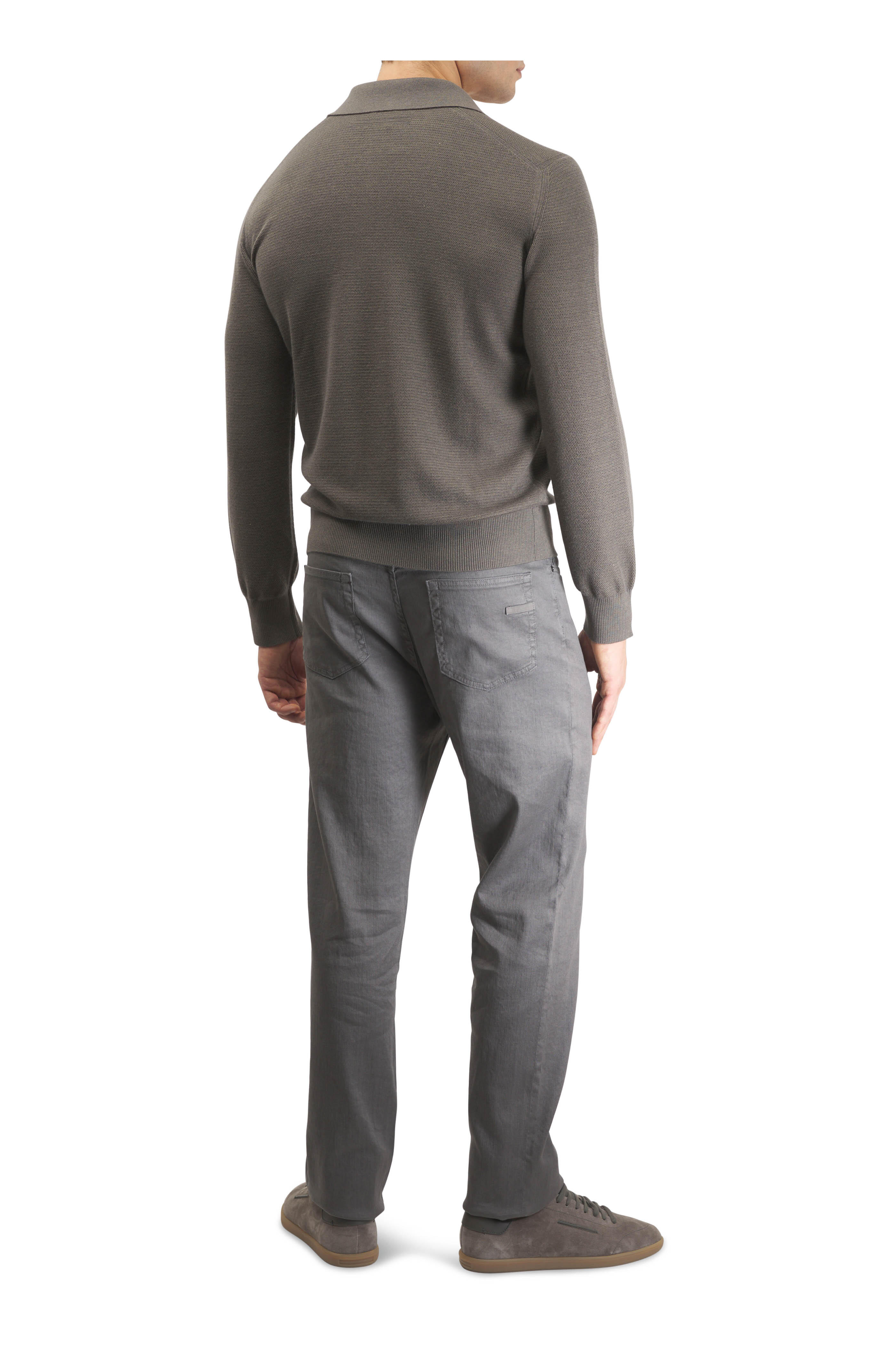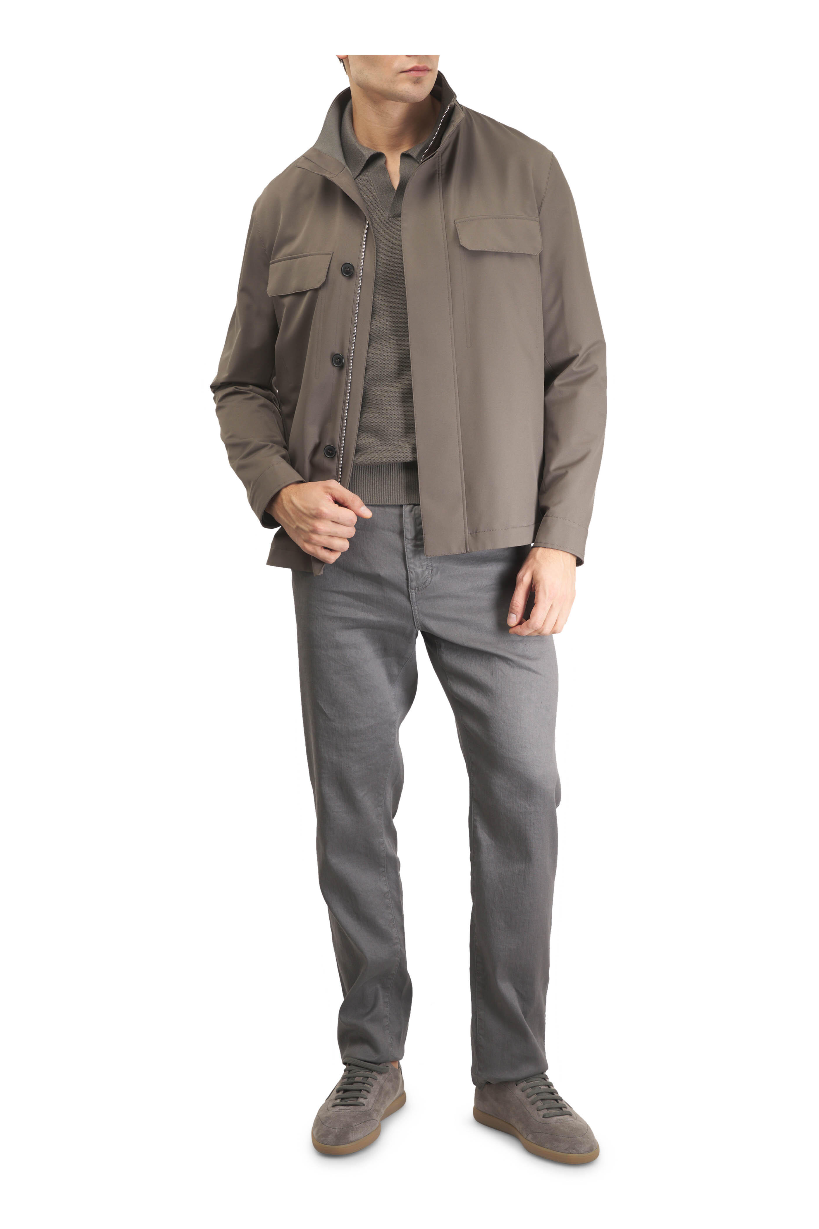 Zip fly; button closure. Banded waist; belt loops. Five pocket styling. Straight hem. Imported. 80% cotton, 20% linen. Dry clean.