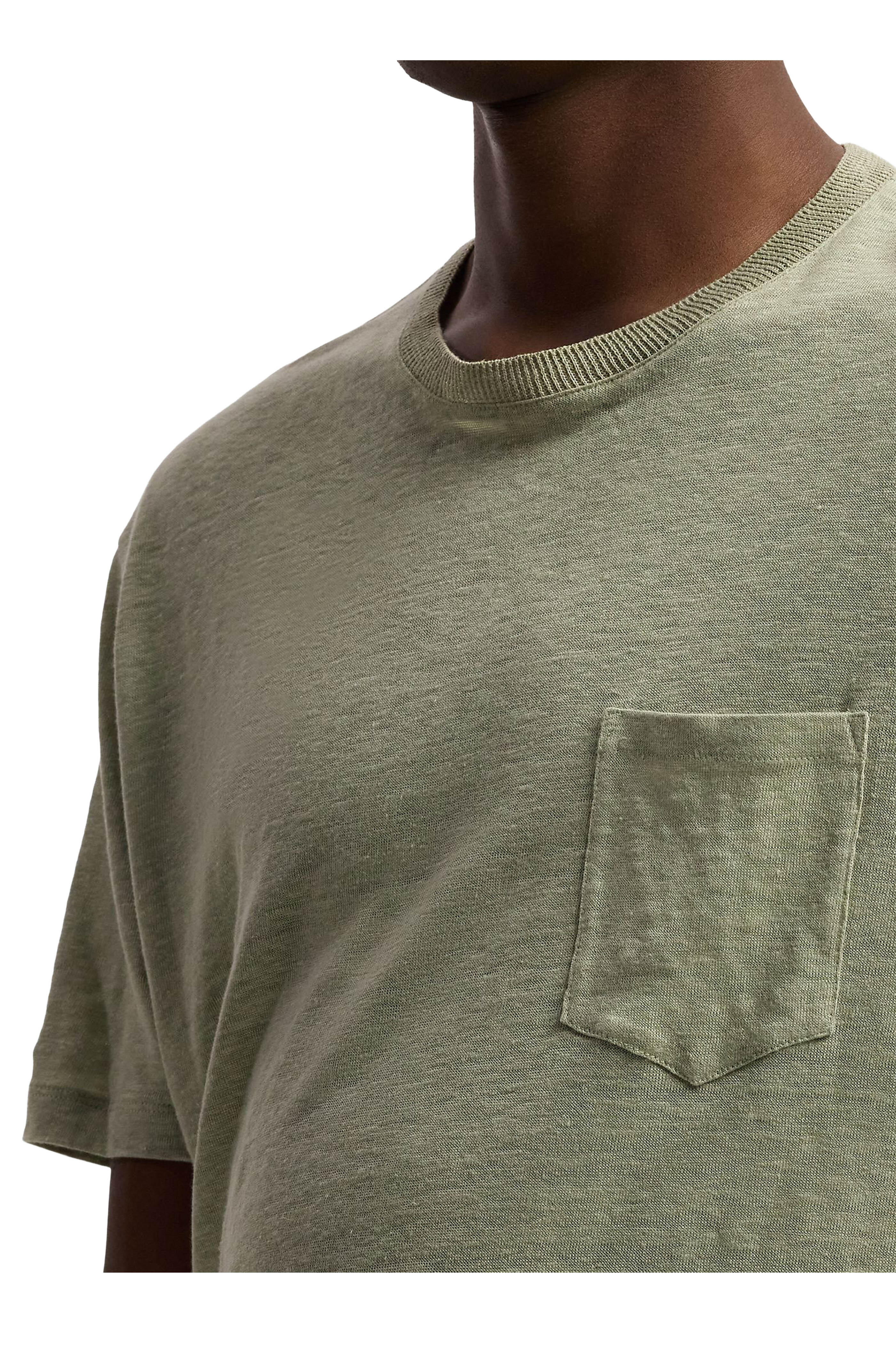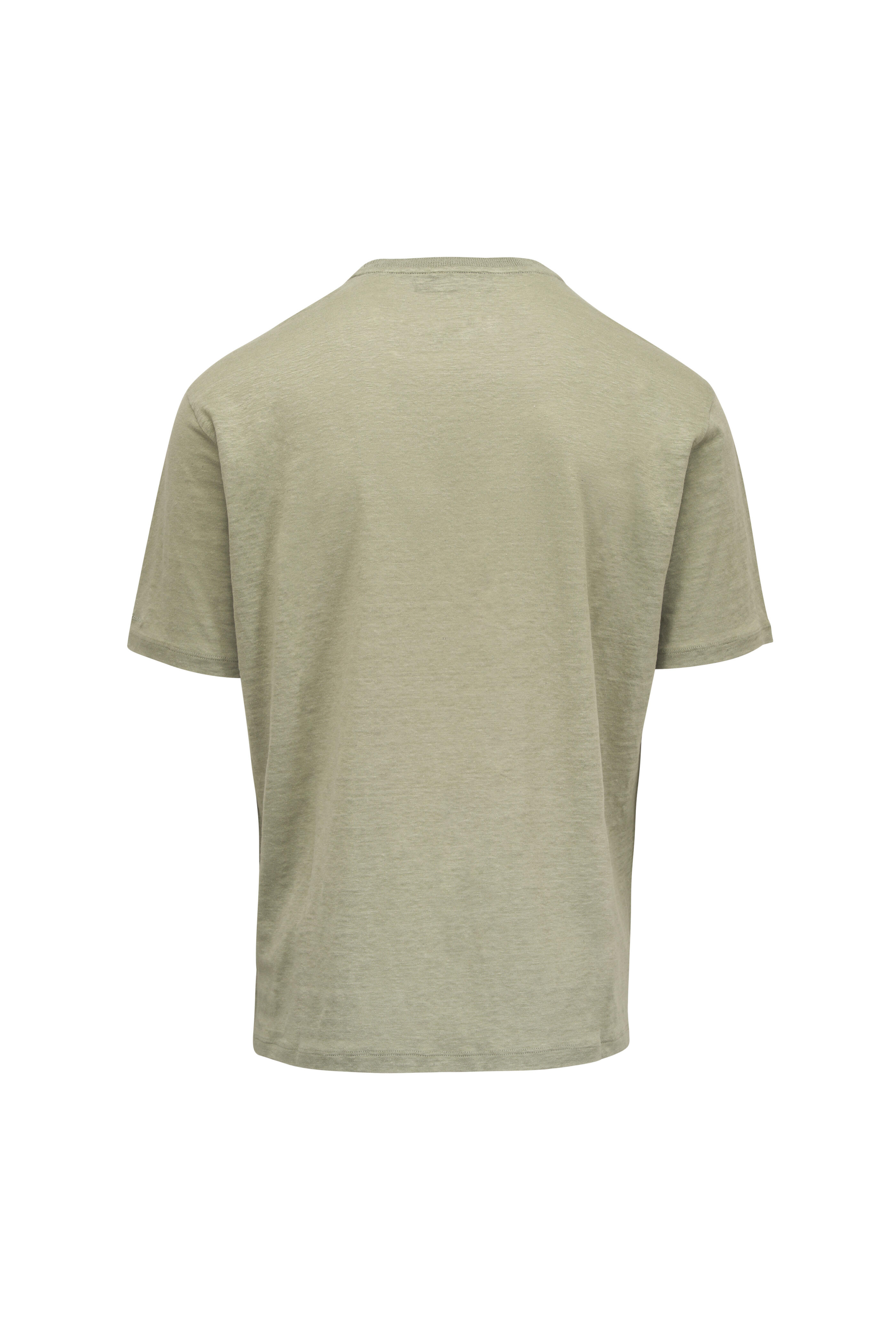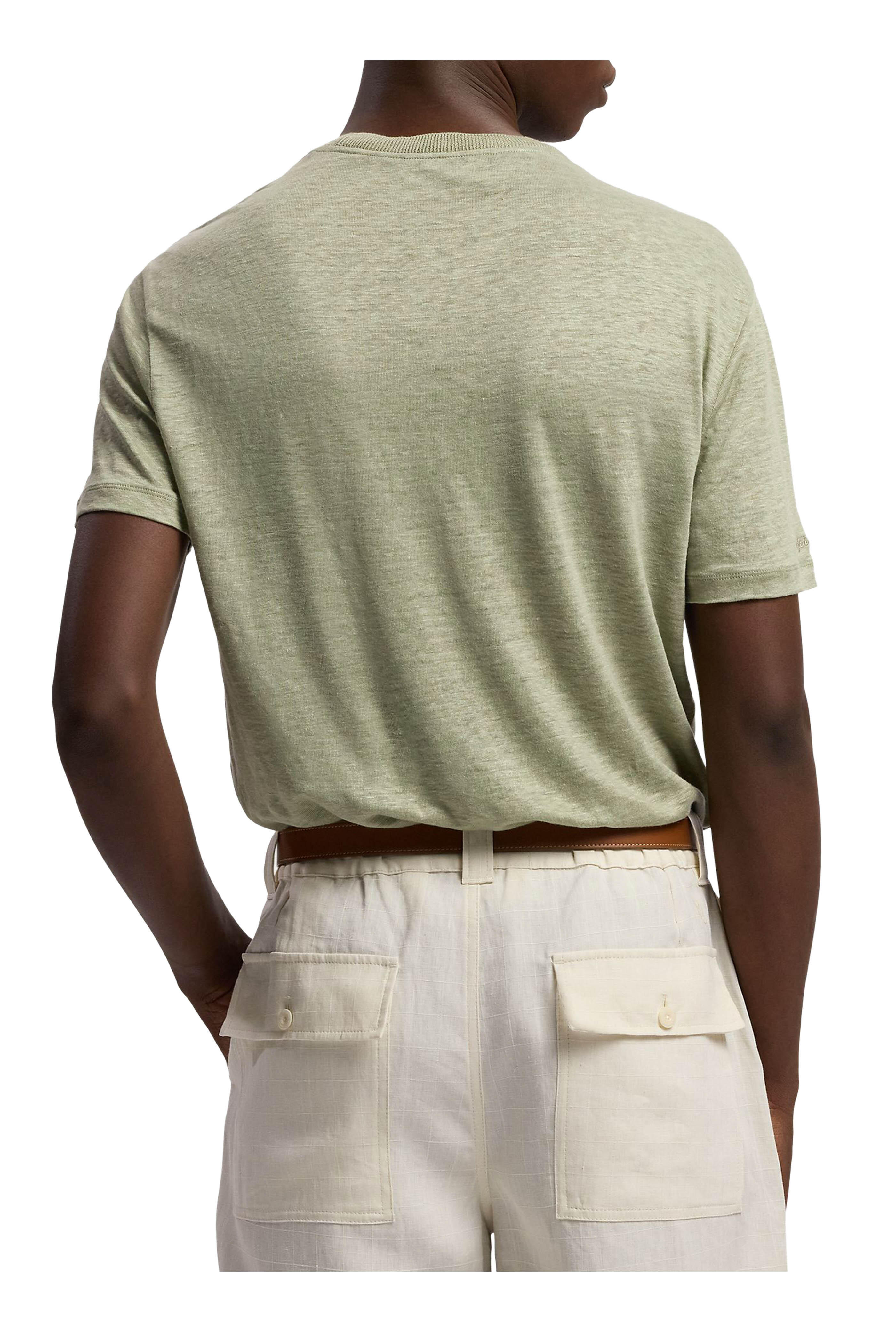 Crewneck. Chest patch pocket. Short sleeves. Made in Italy. 100% linen. Dry clean.