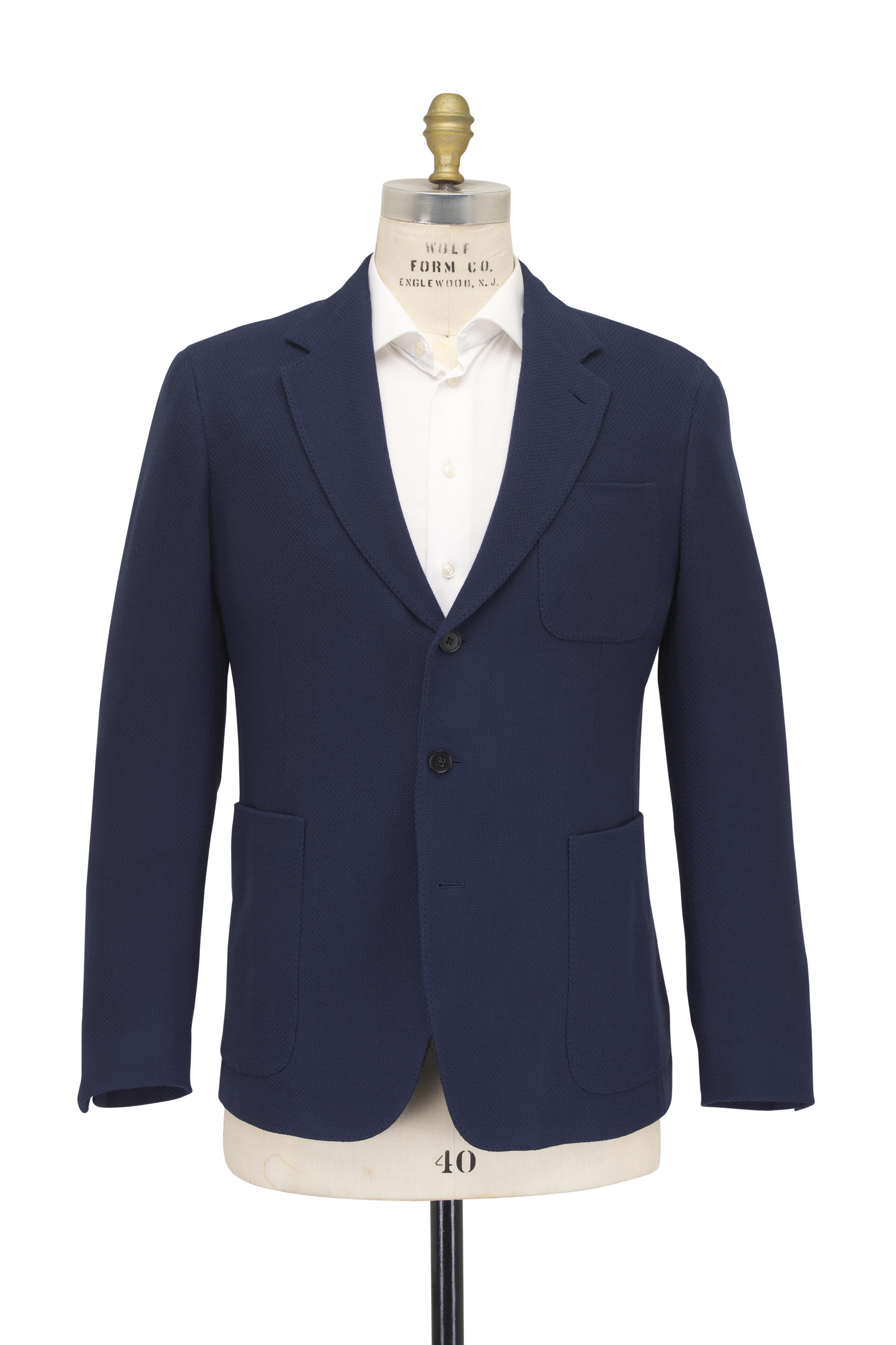 Notched lapels. Three-button front closure. Lower patch pockets; chest patch pocket. Unlined. Made in Italy. 70% wool, 30% viscose. Dry clean.
