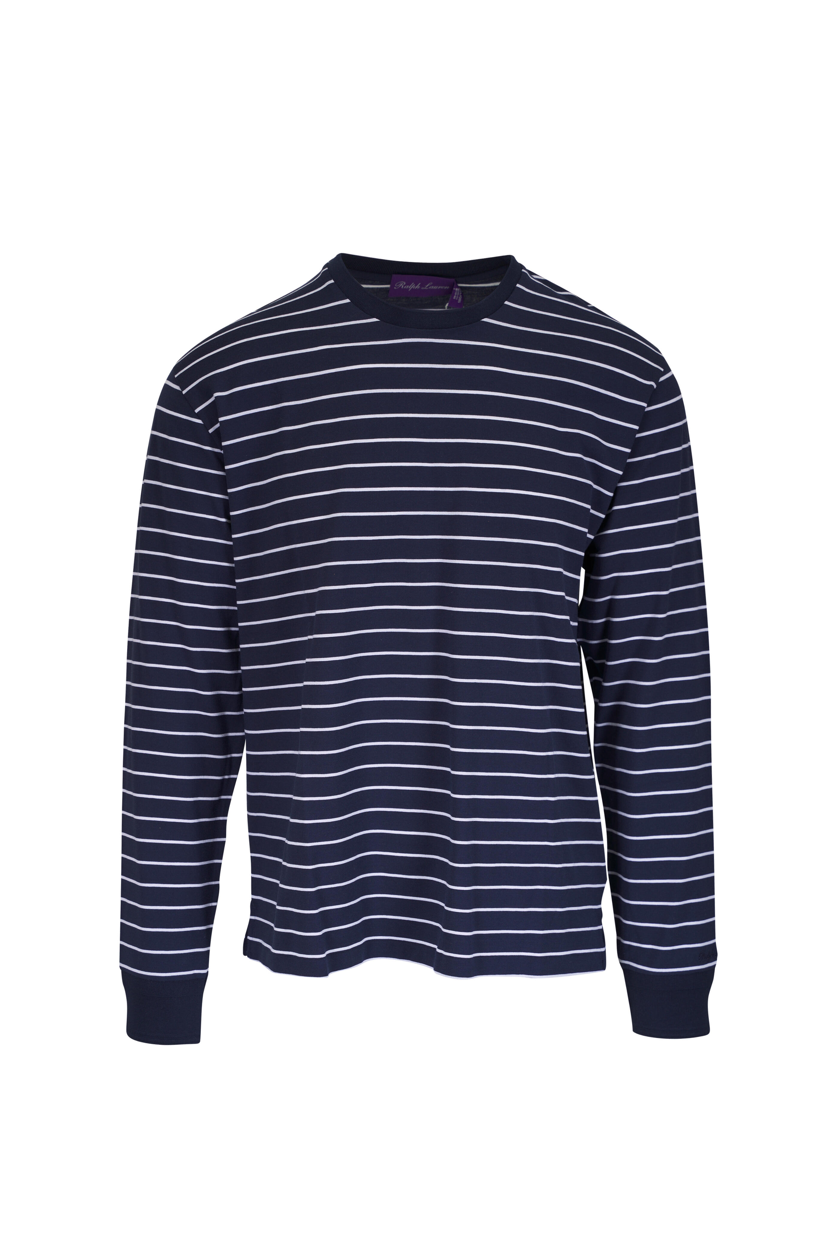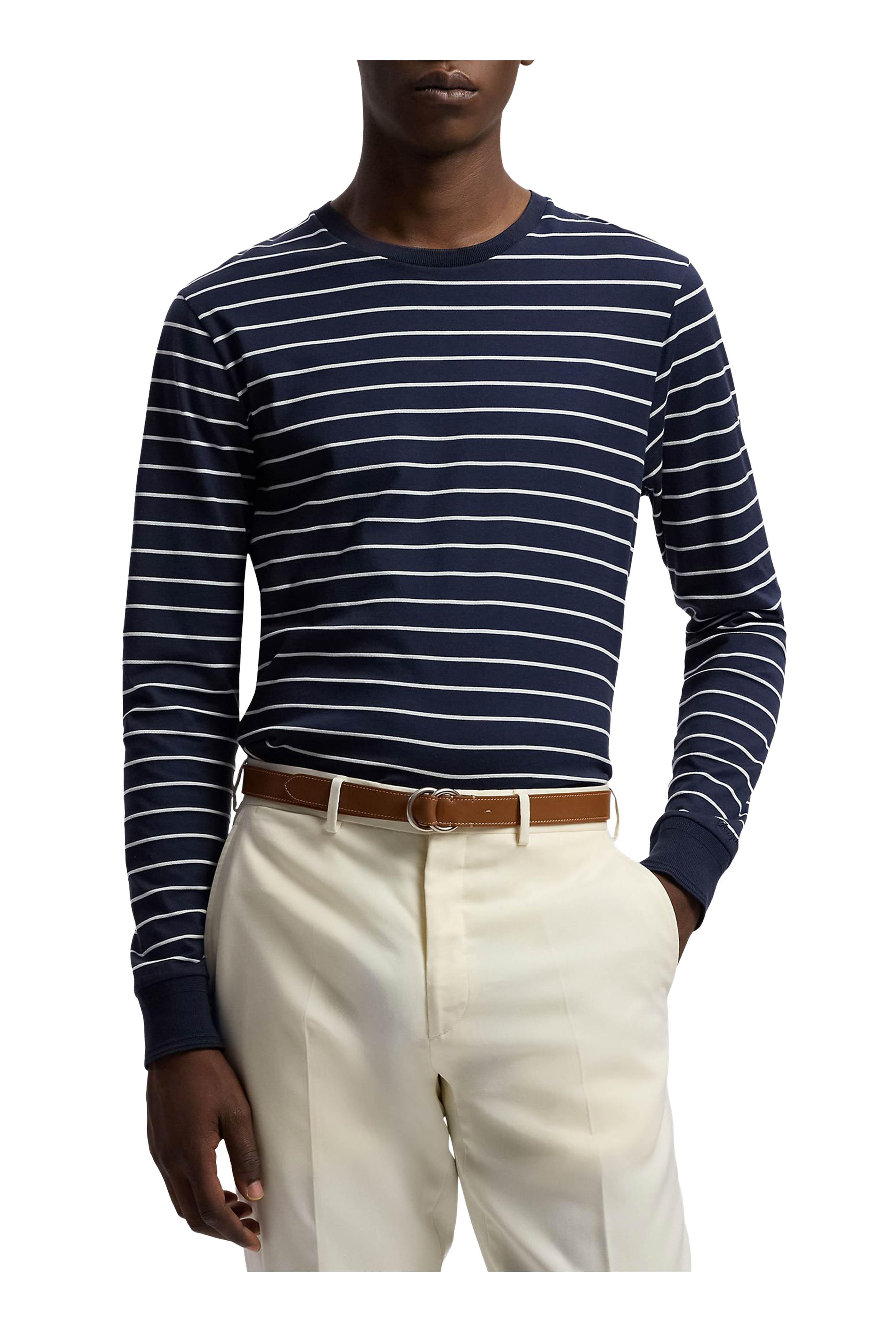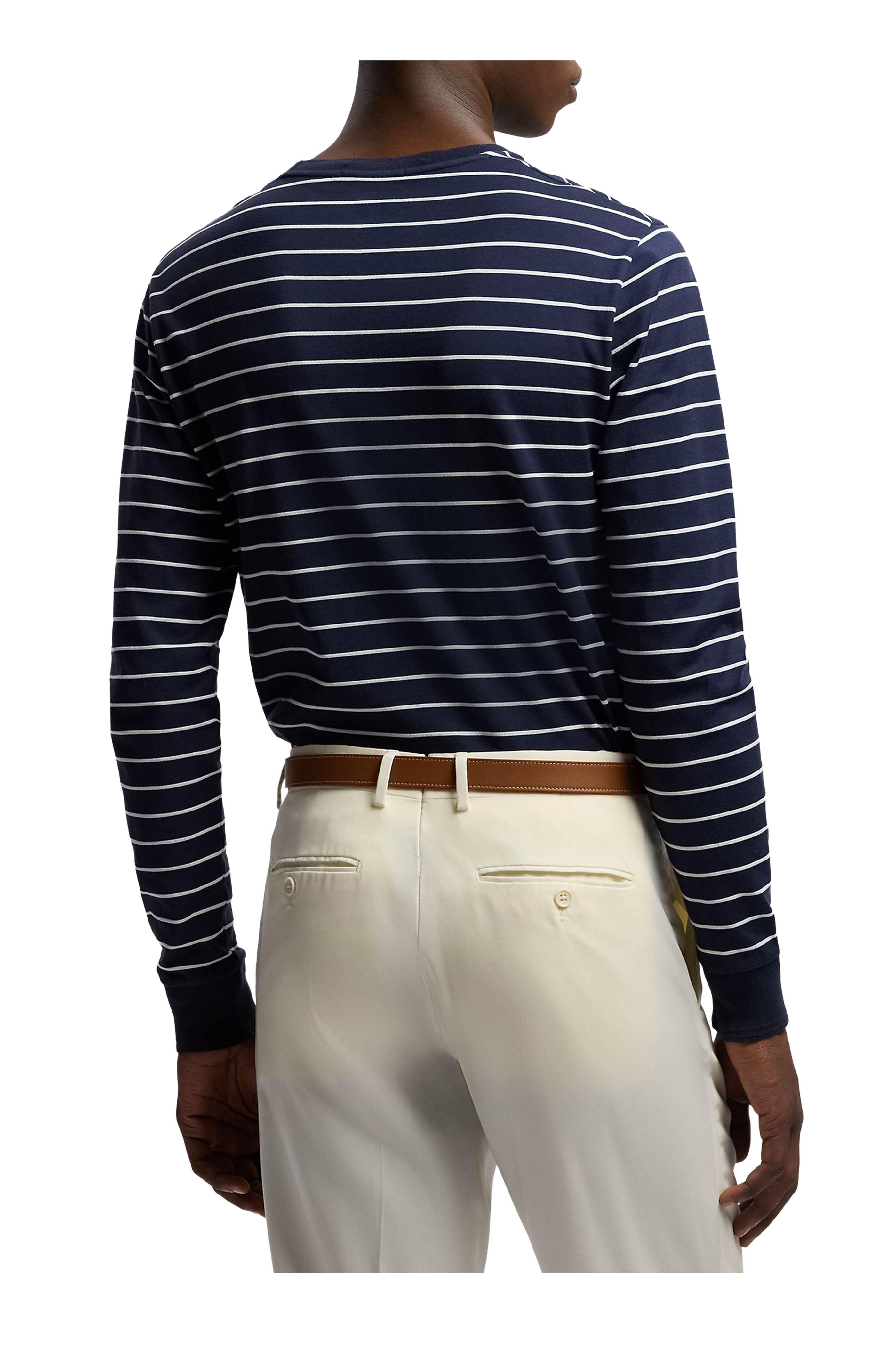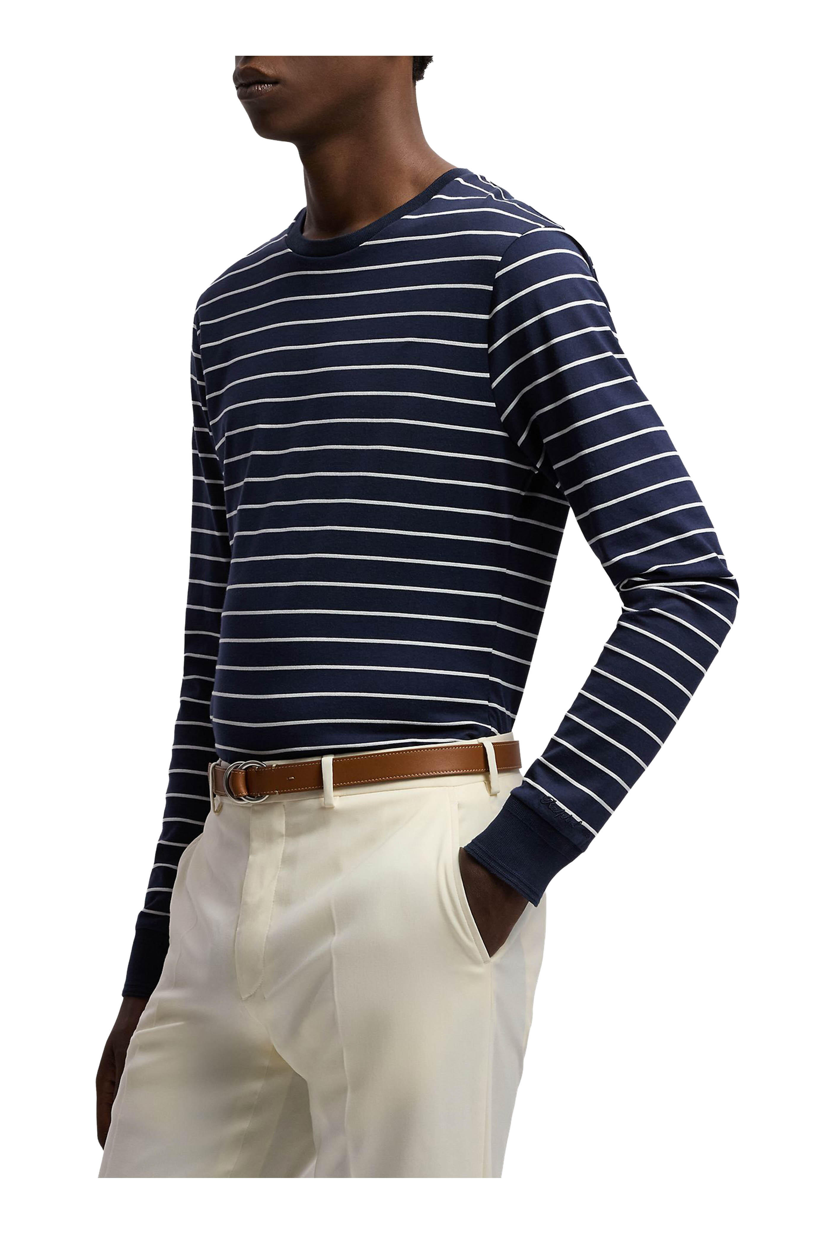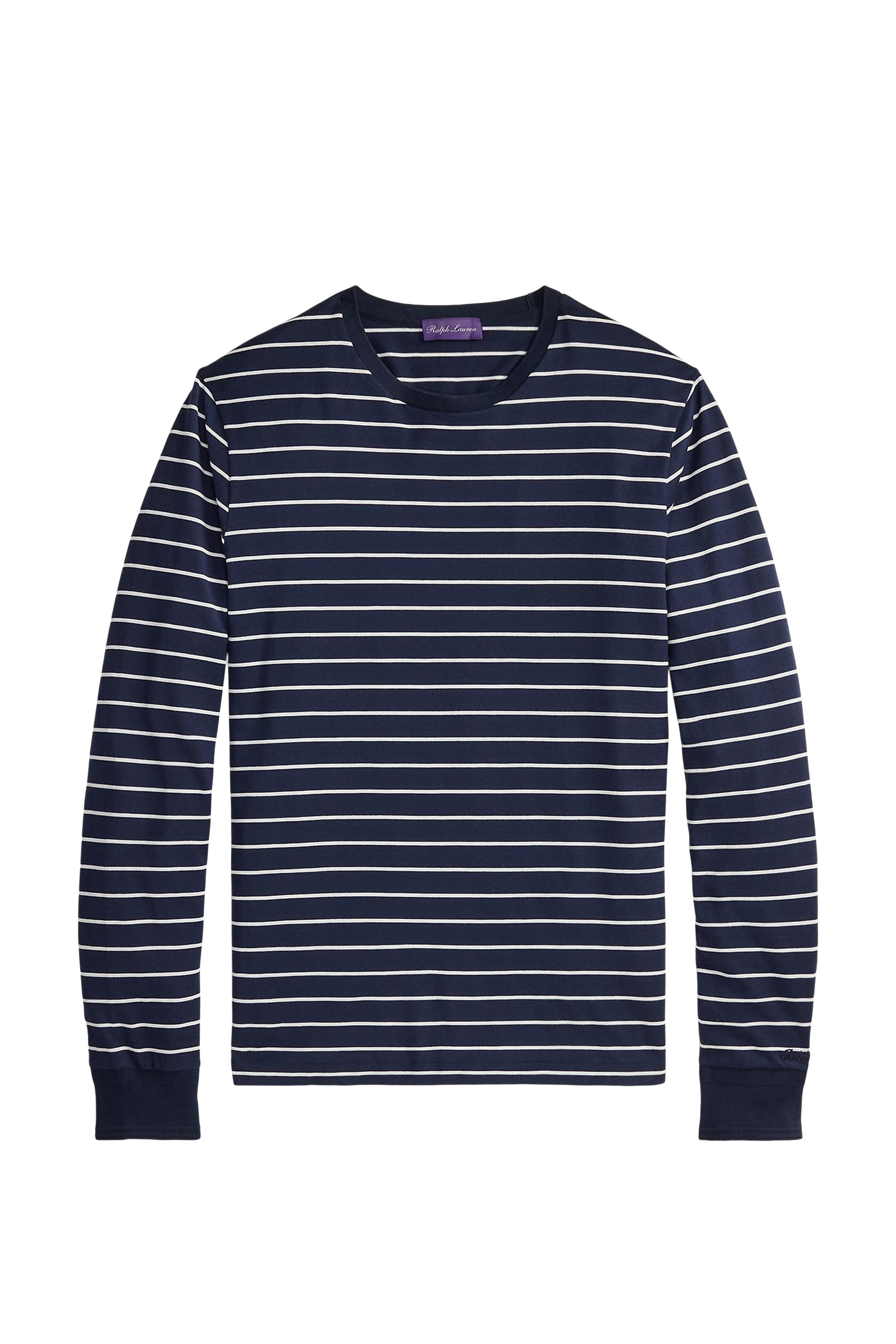 Navy & White Stripe Lisle-Pique Cotton T-Shirt