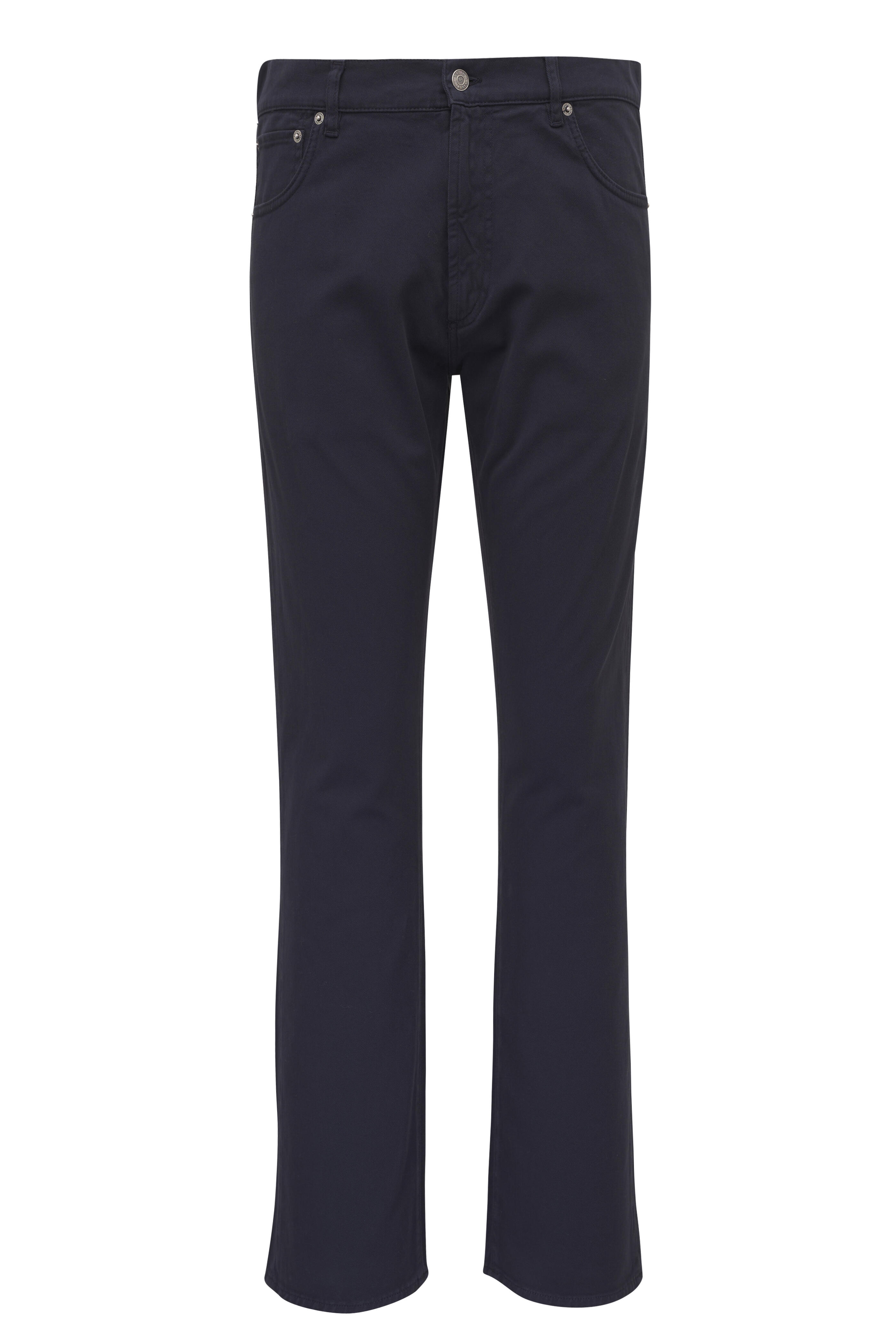 Zip fly; button closure. Belt loops. Five pocket styling. Leather patch. Made in Italy. 31" Inseam (size 36). 99% cotton, 1% elastane. Machine wash.