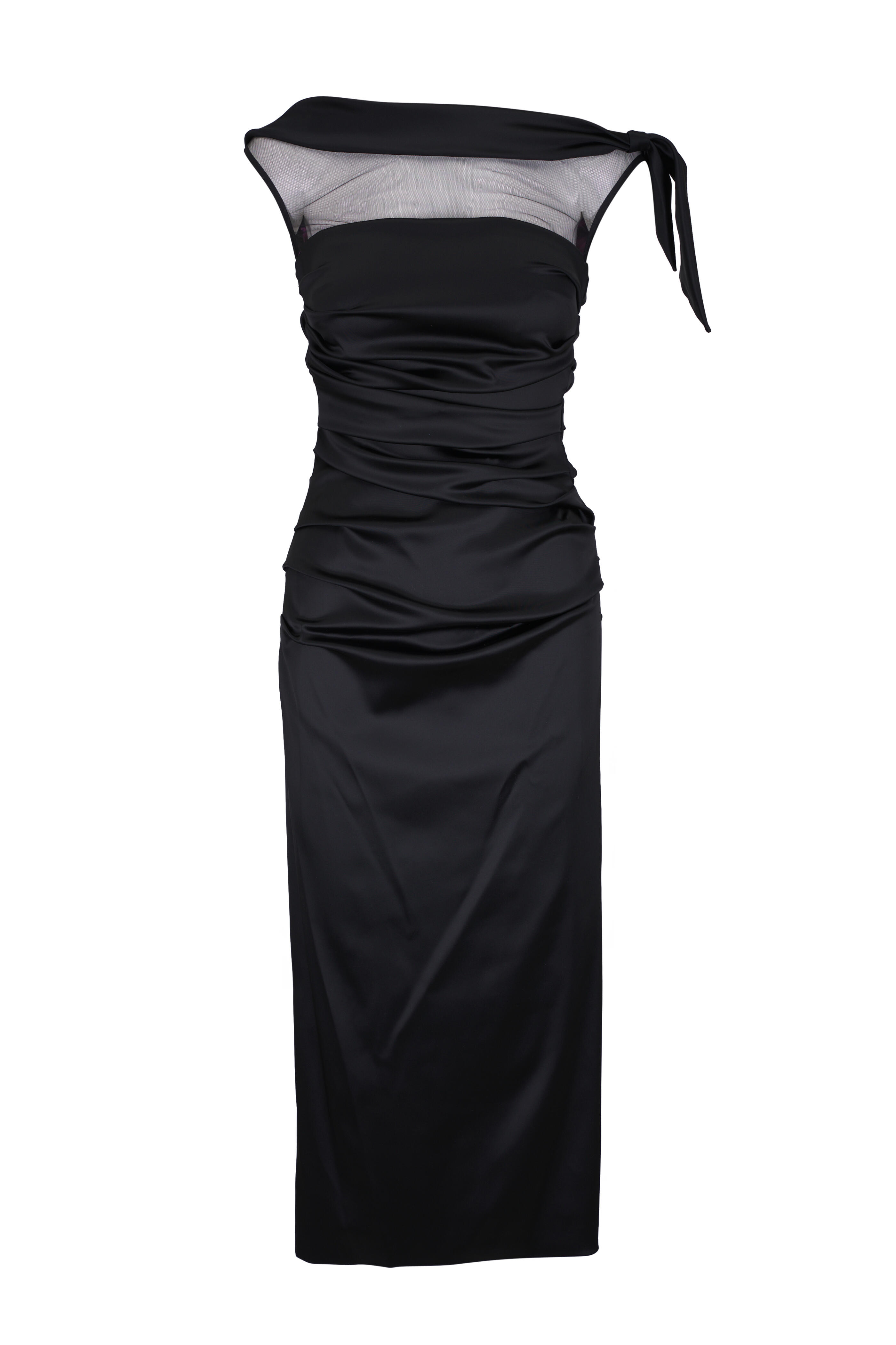 Black Satin Peek-A-Boo Midi Dress