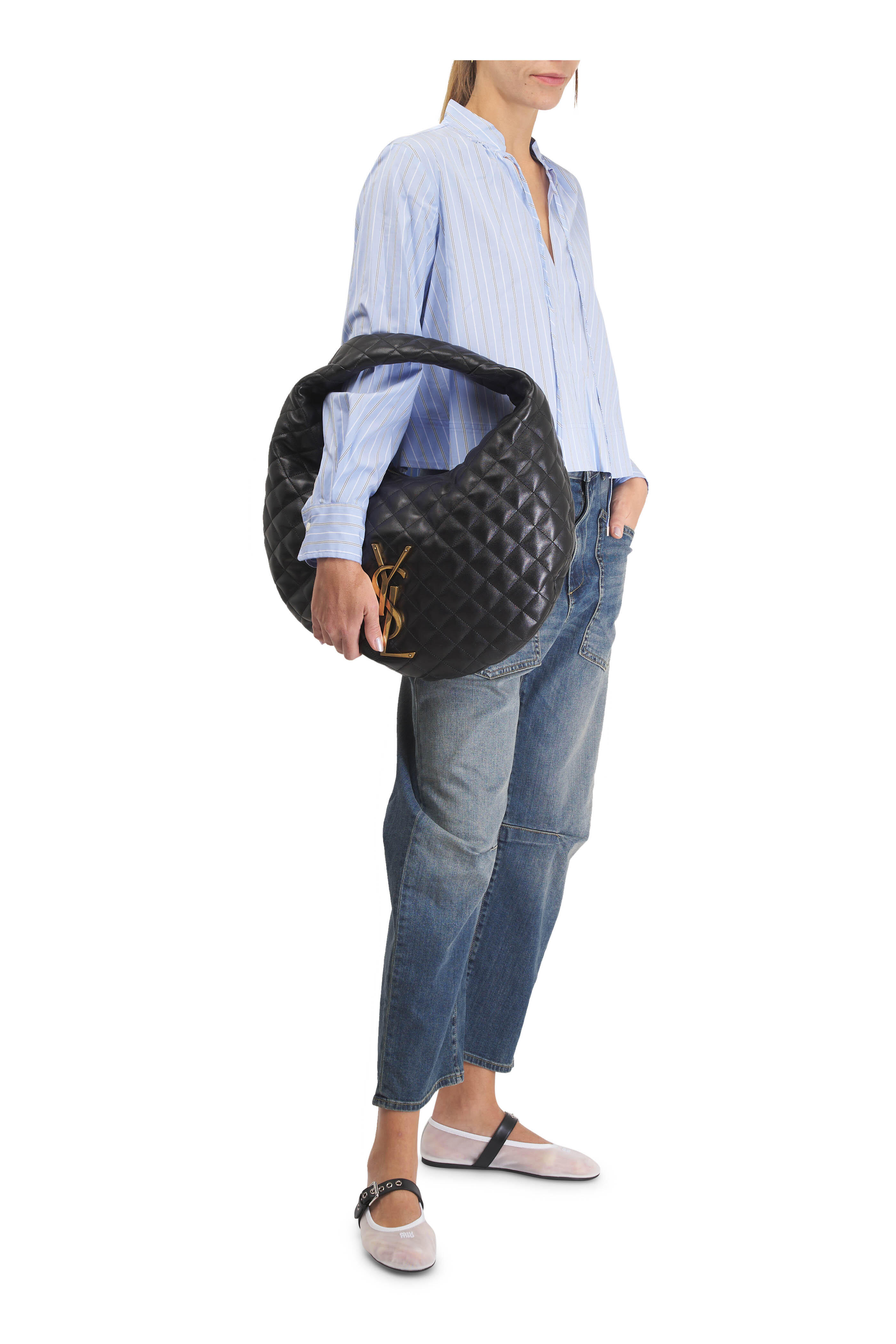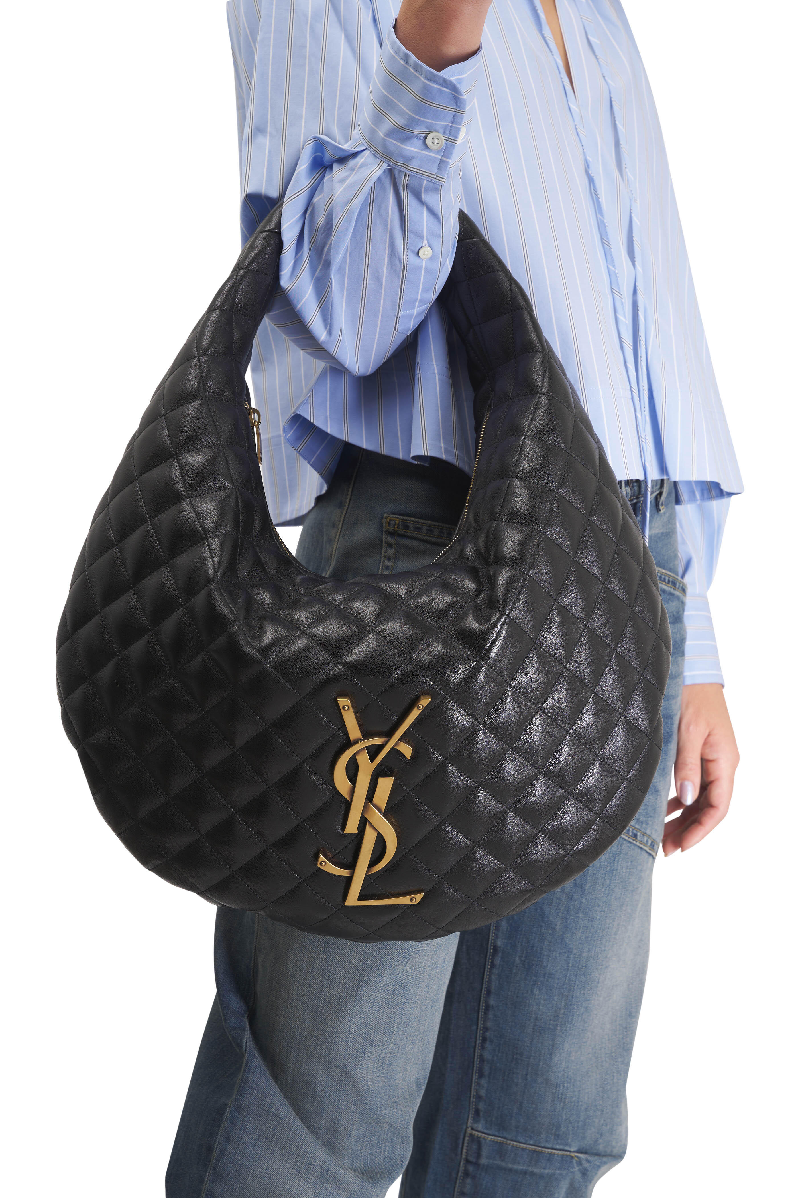 Icare Black Quilted Leather Hobo Bag